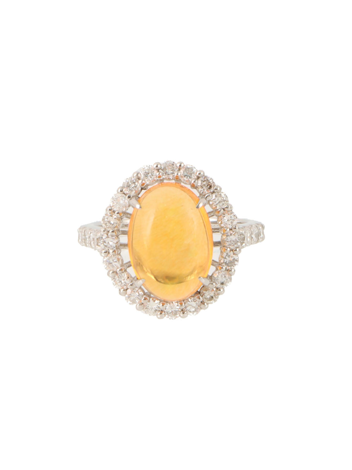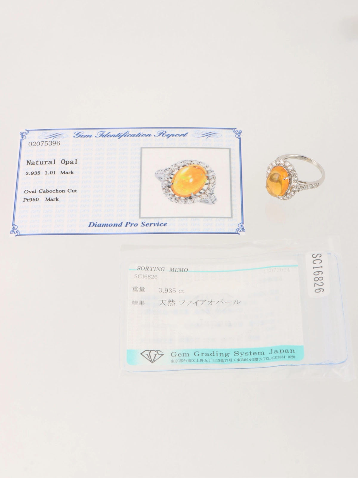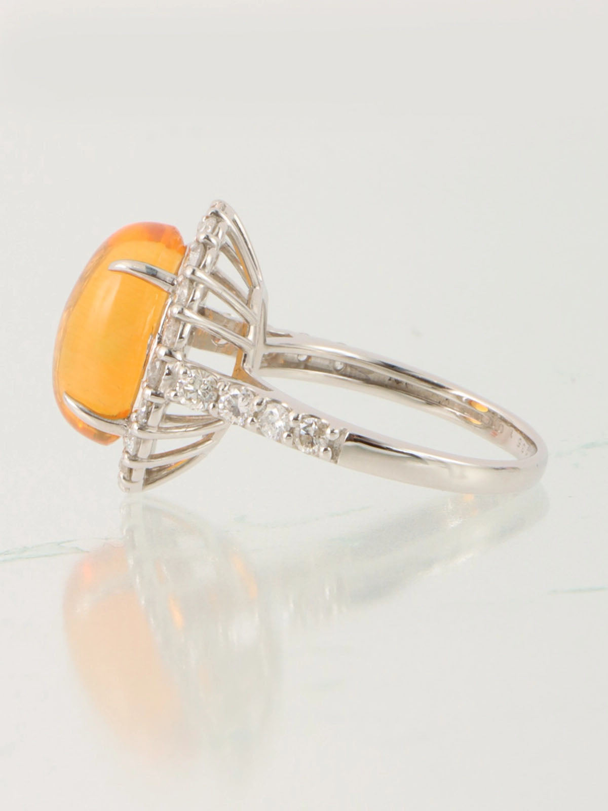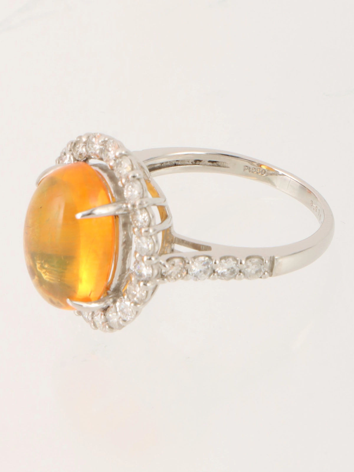 プラチナオパールダイヤモンドオーバルリング オレンジ/シルバー
