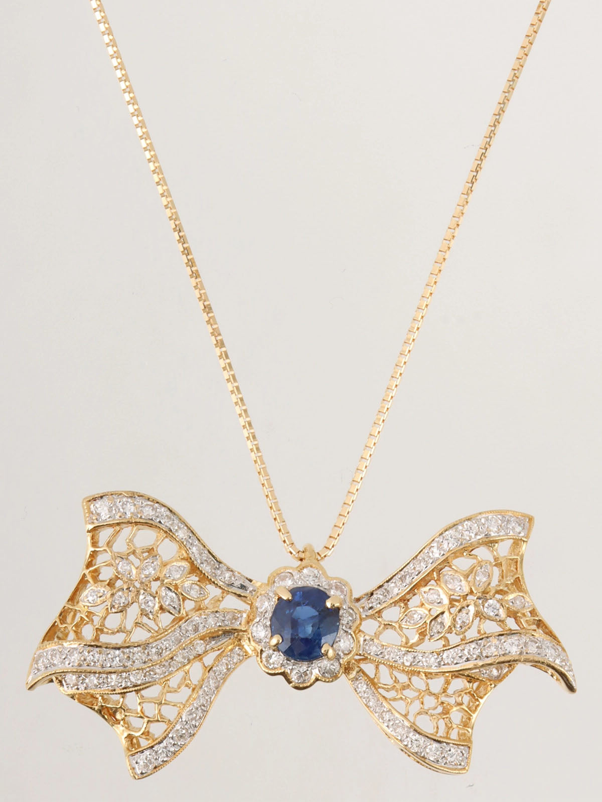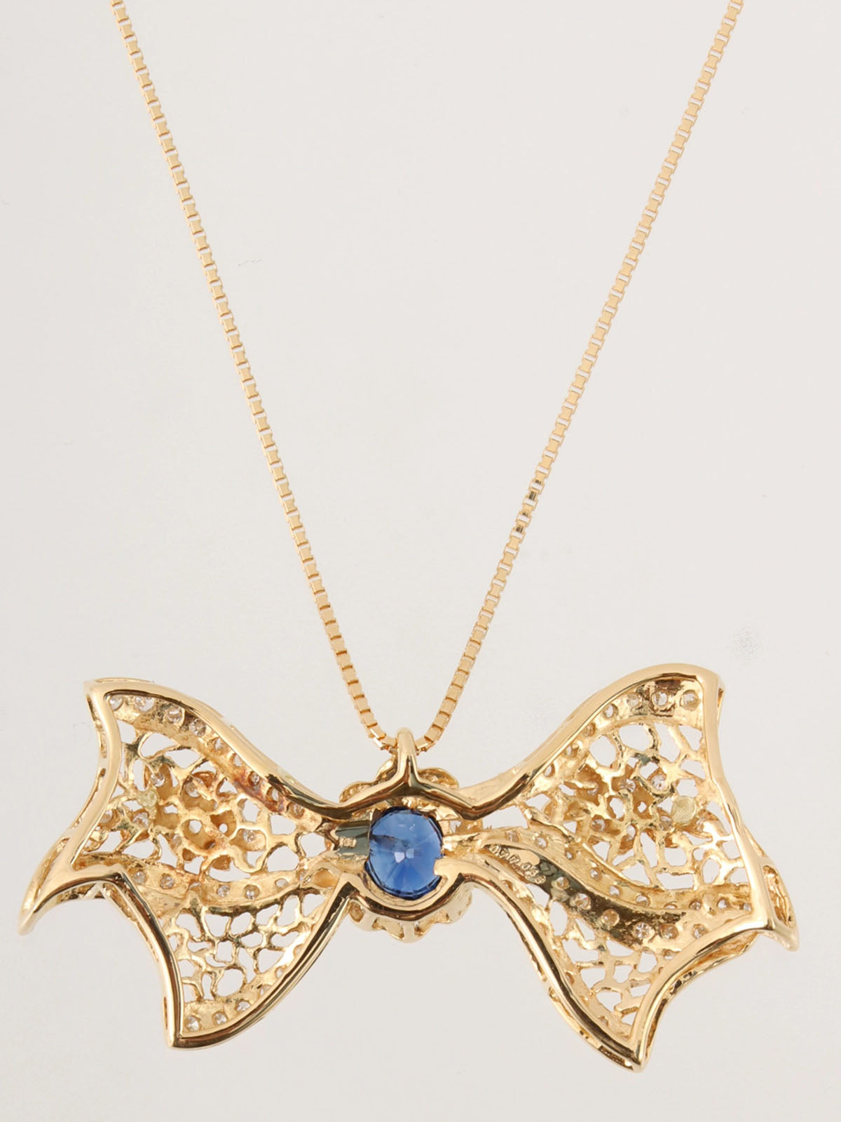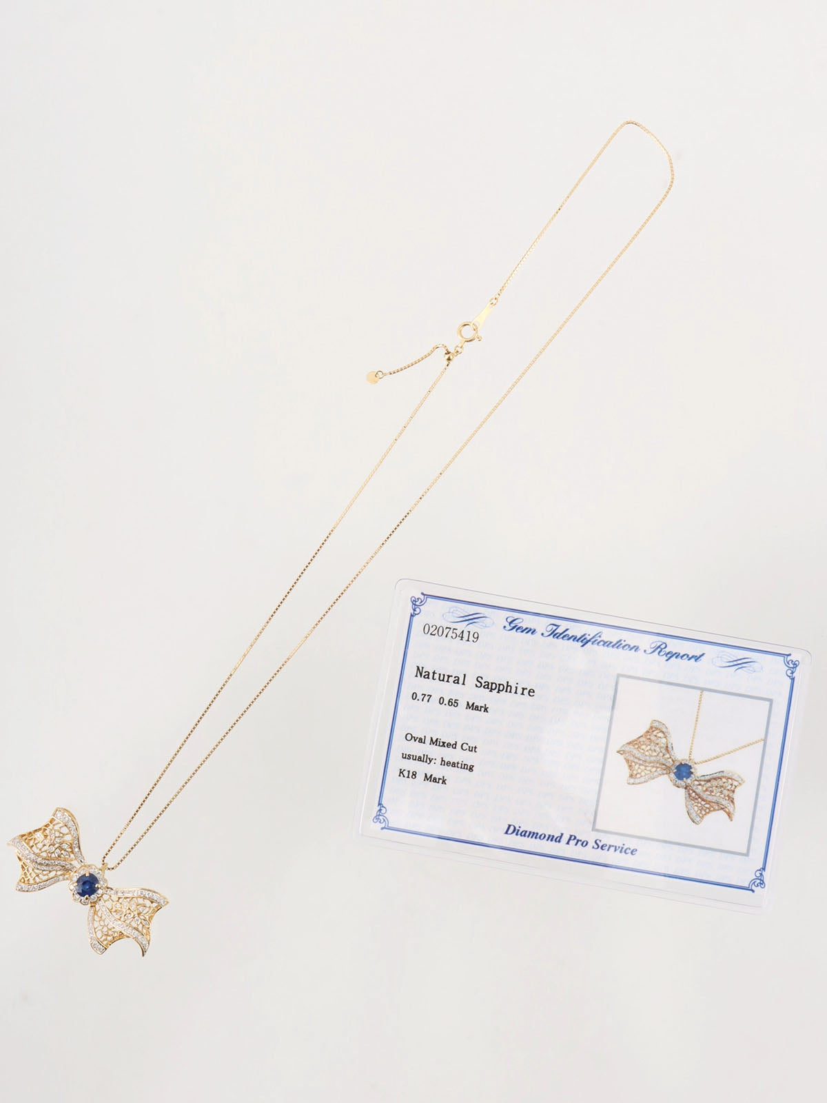 18Kサファイアダイヤモンドリボンモチーフネックレス ブルー/ゴールド