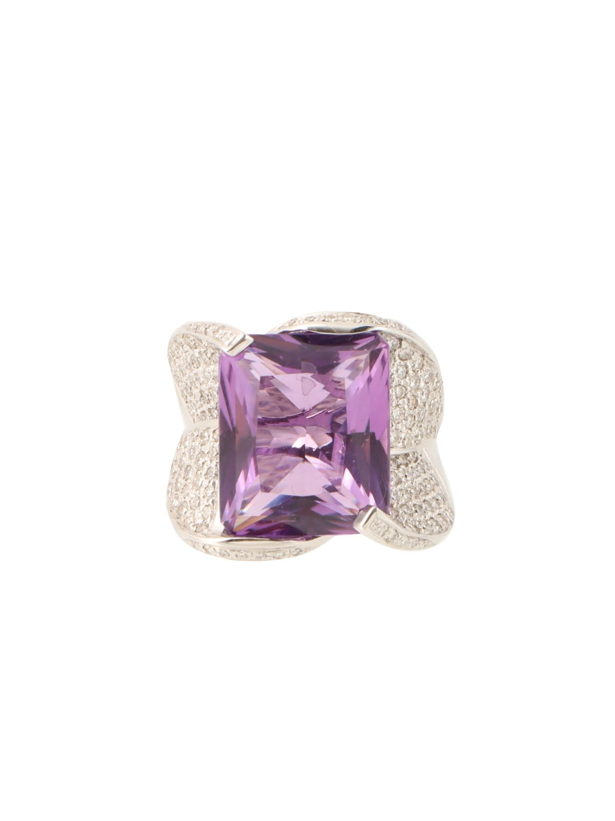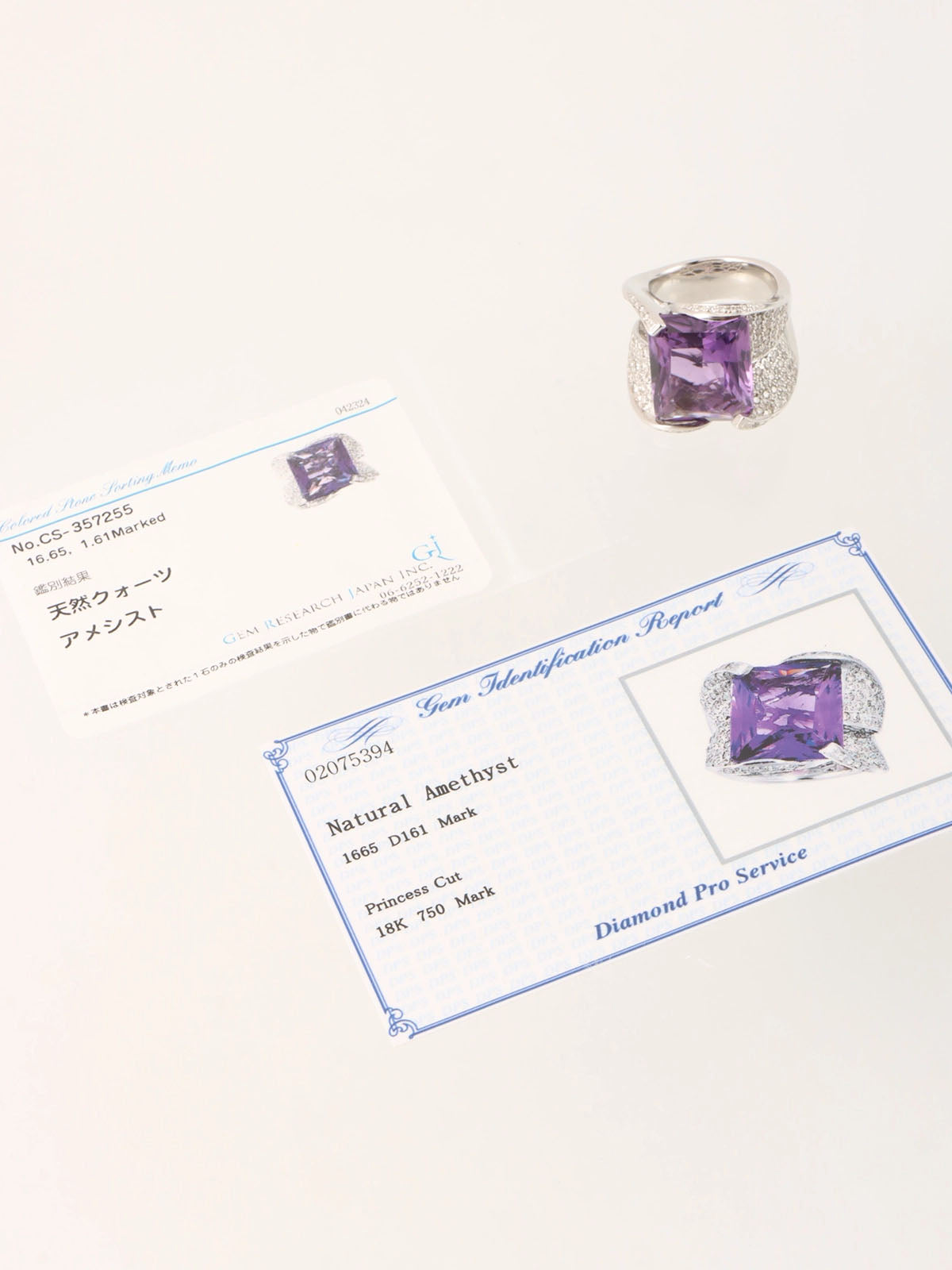 18Kアメジストダイヤモンドデザインリング シルバー/パープル