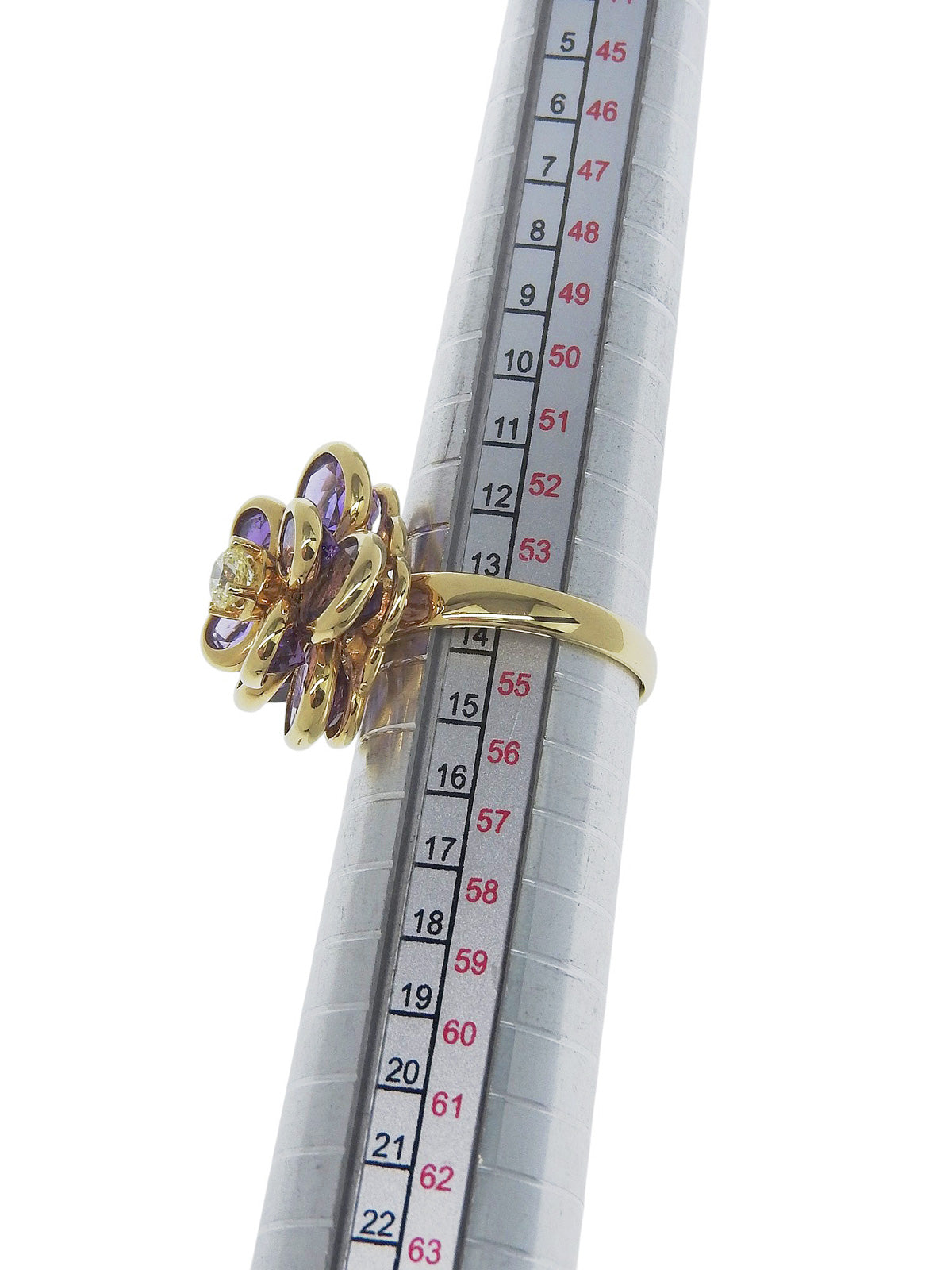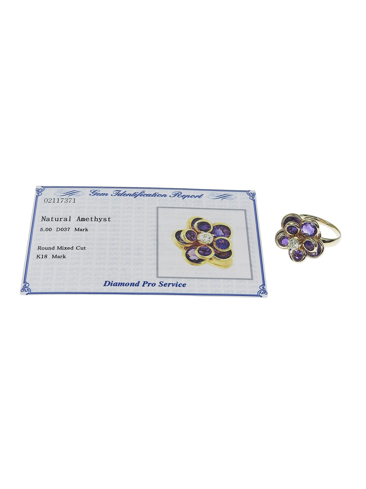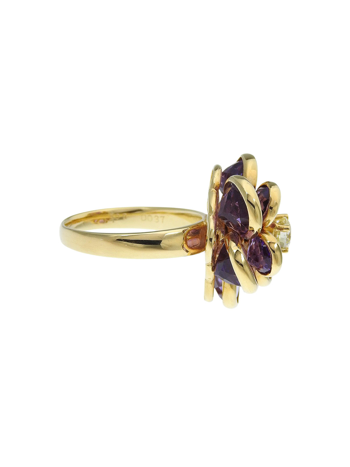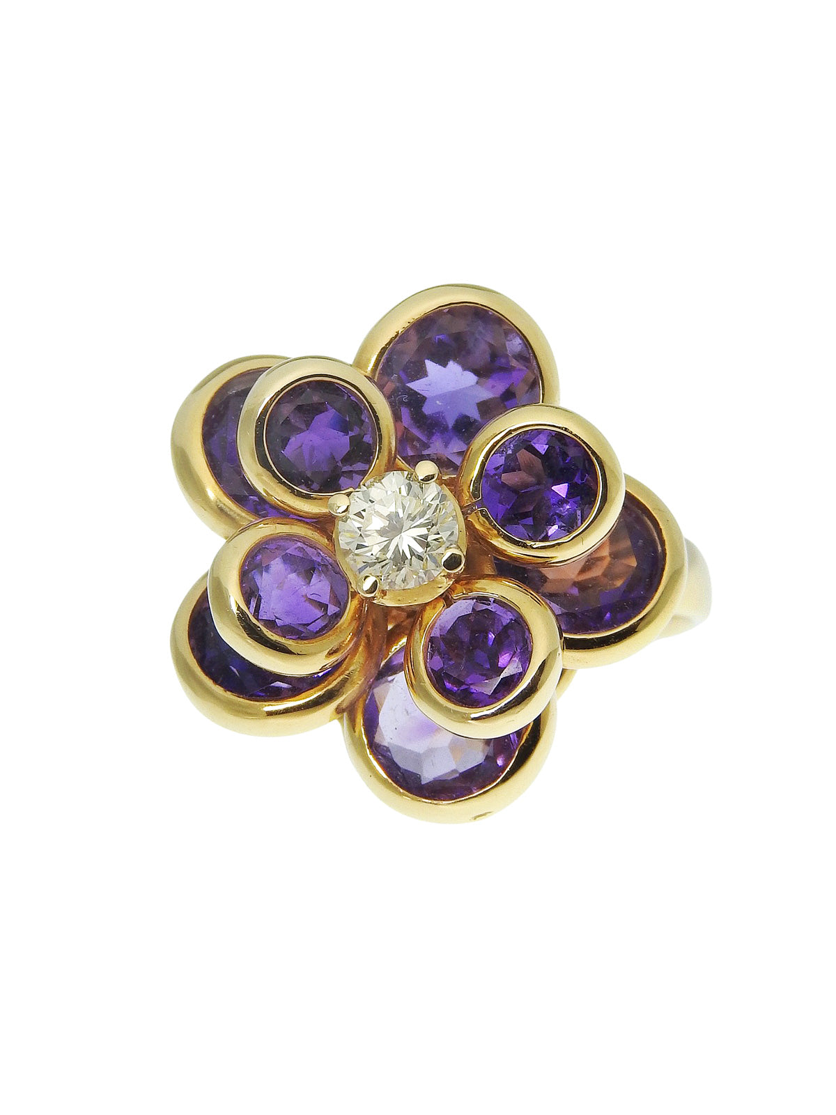 18Kアメジストダイヤモンドフラワーモチーフリング ゴールド/パープル