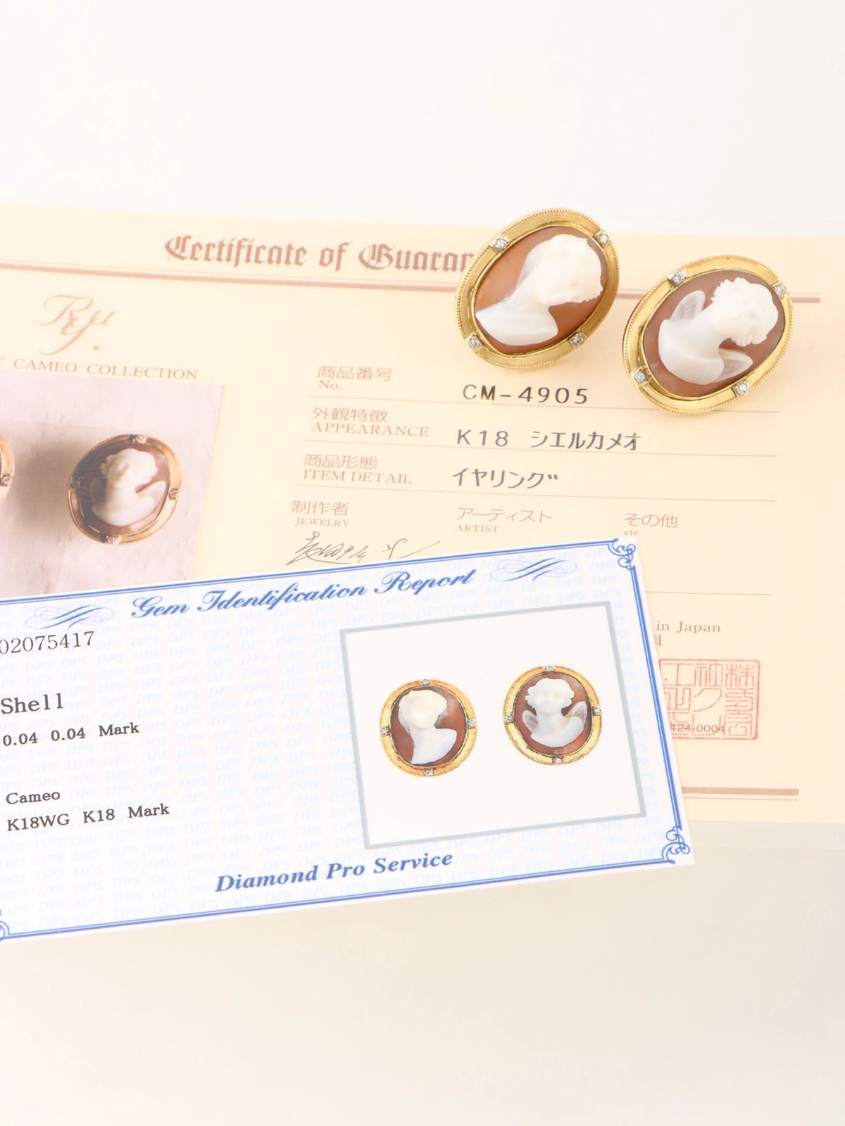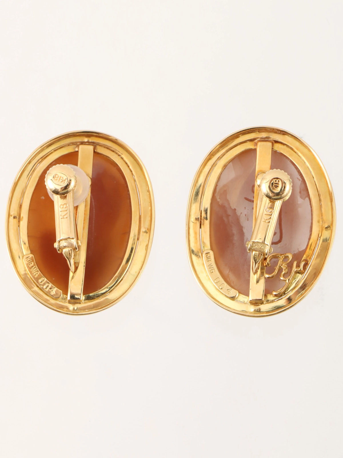 18Kシェルダイヤモンドカメオイヤリング ゴールド/ホワイト/ブラウン