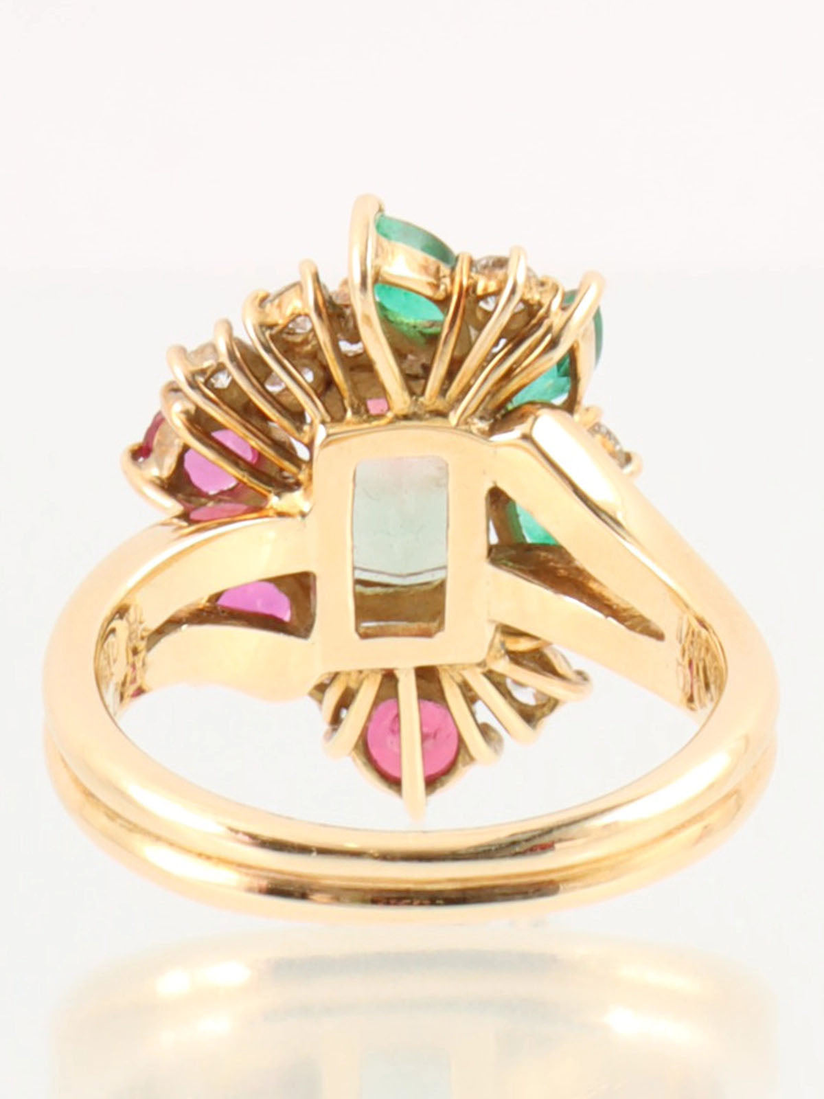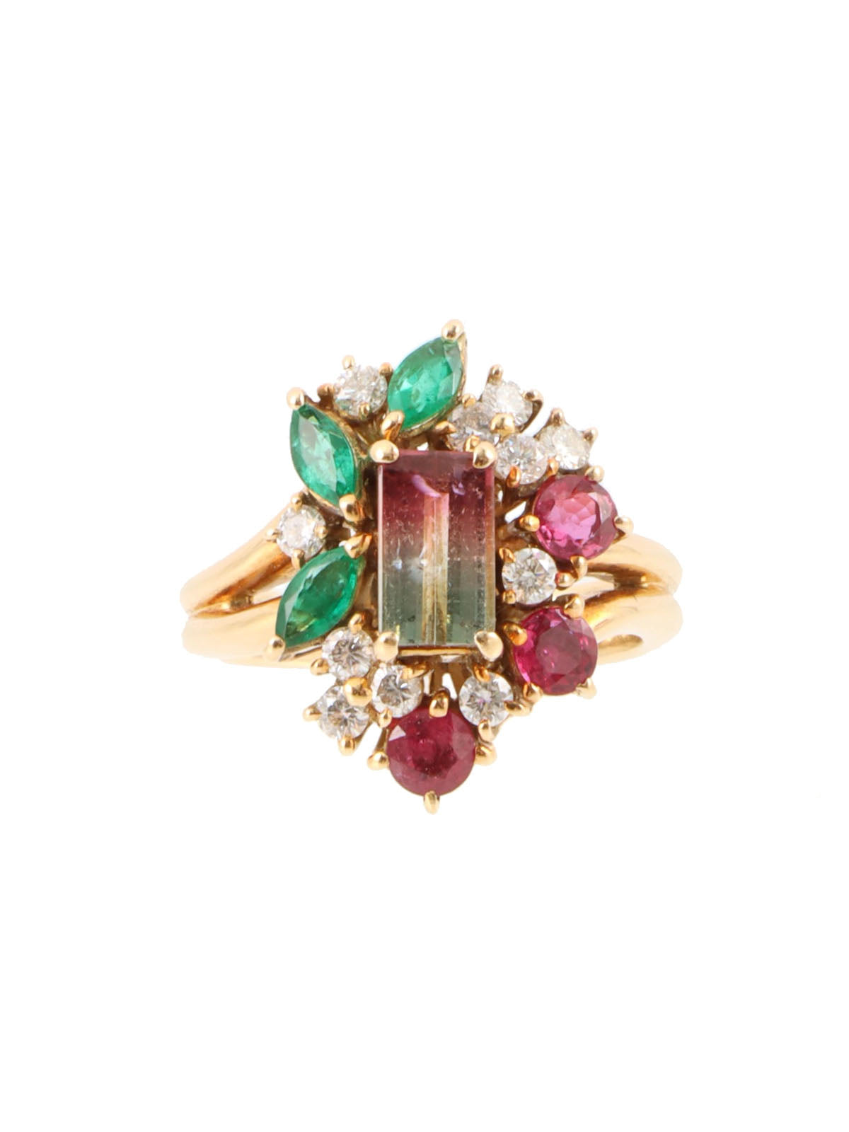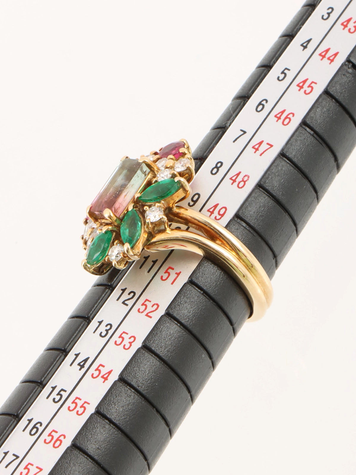 18Kダイヤモンドウォーターメロントルマリンリング グリーン/レッド