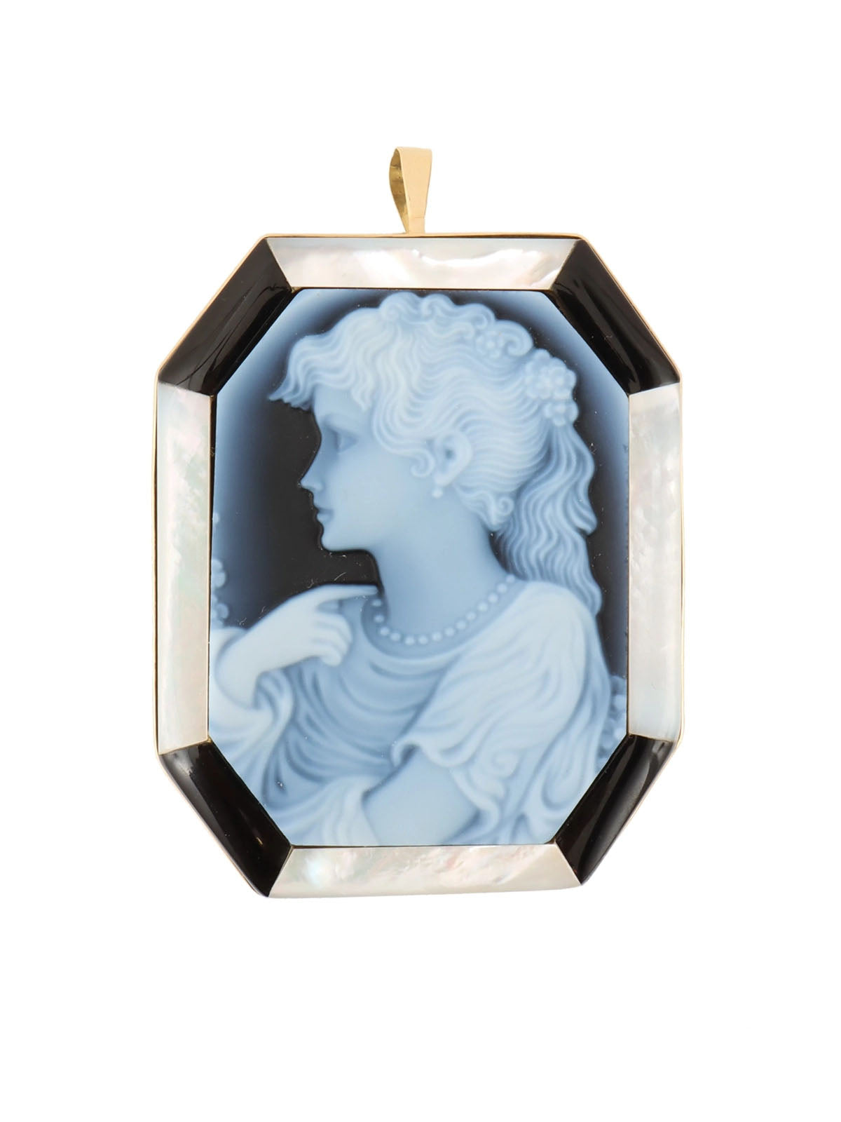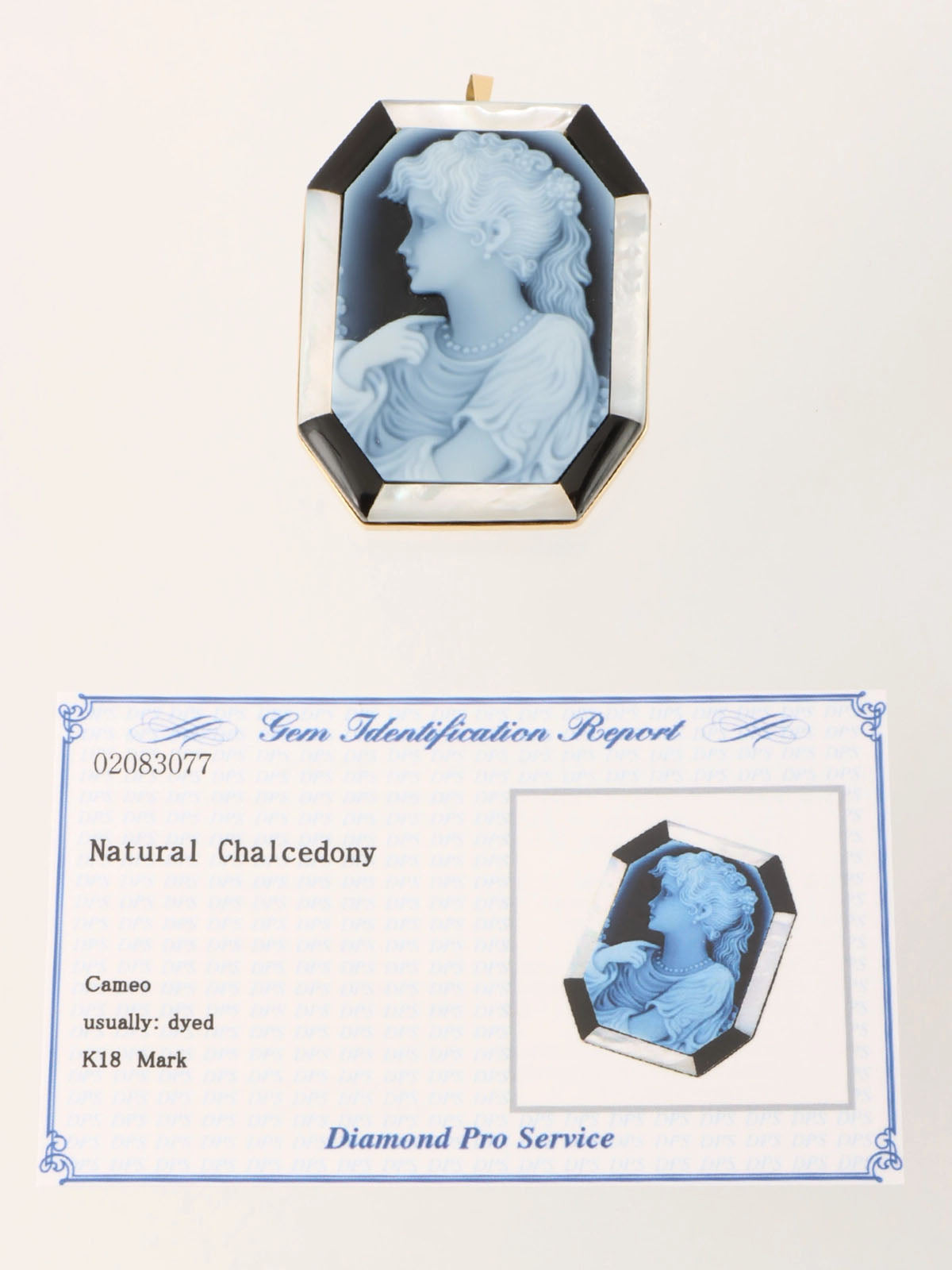 18Kダイヤモンドカメオ2wayブローチ ホワイト/ブラック/ゴールド