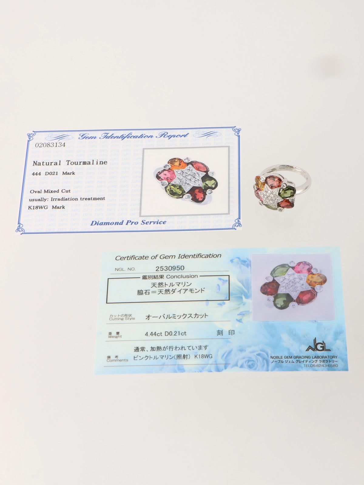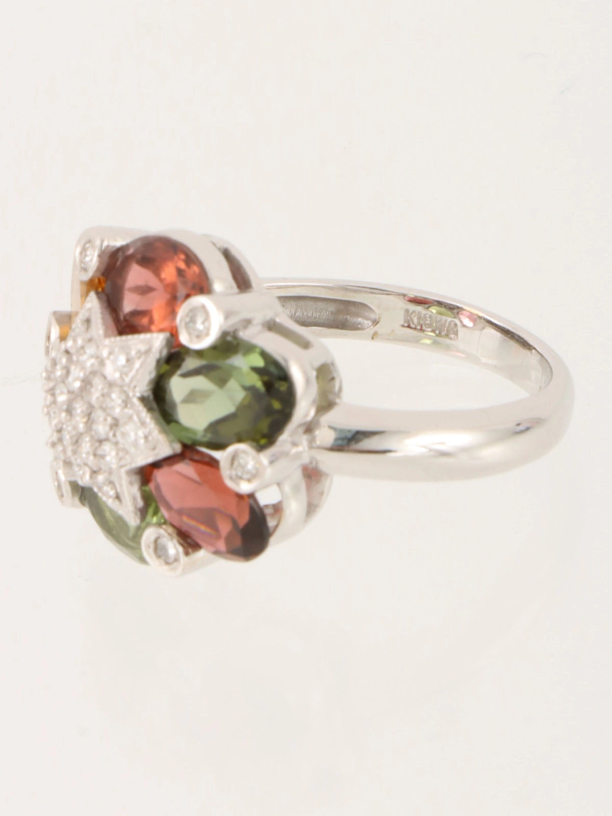 18Kトルマリンダイヤモンドヘキサグラムモチーフリング シルバー/マルチ