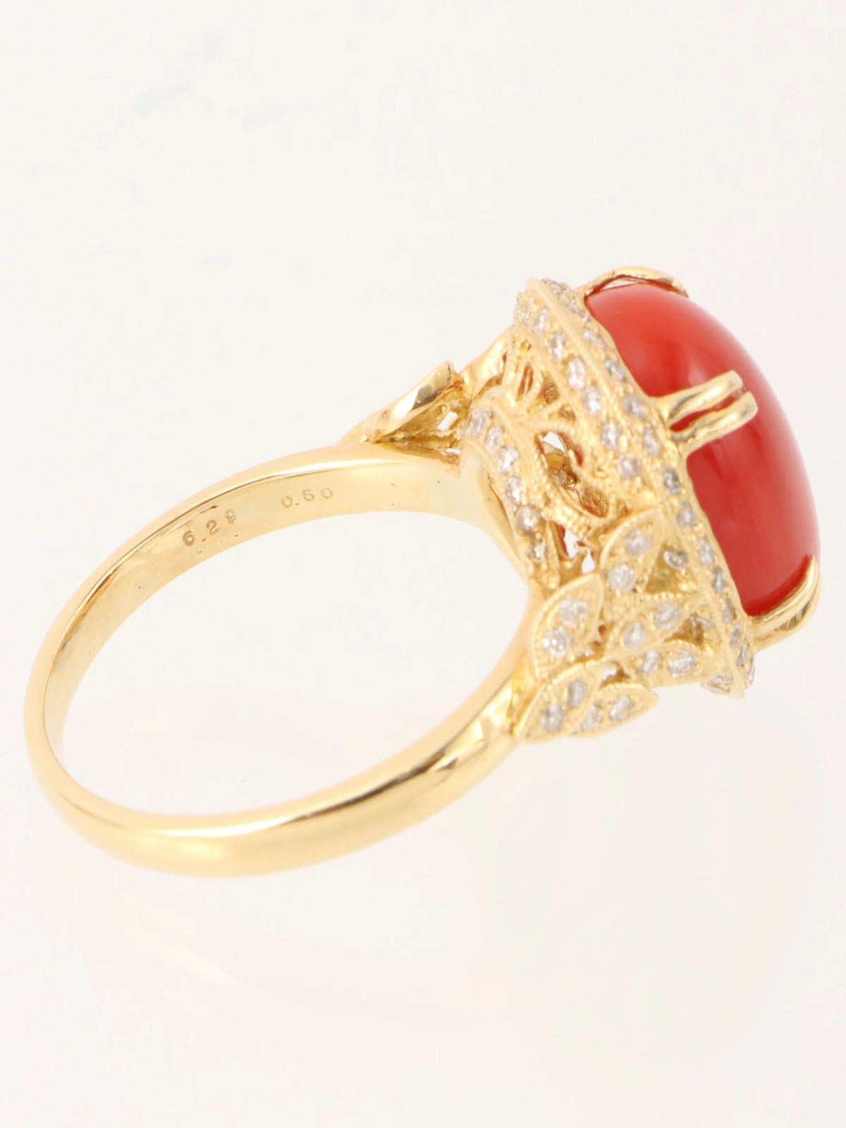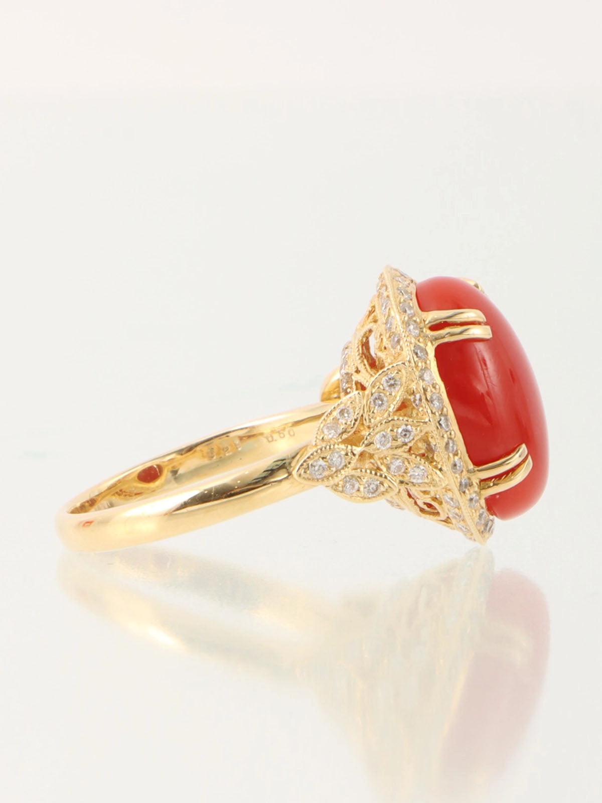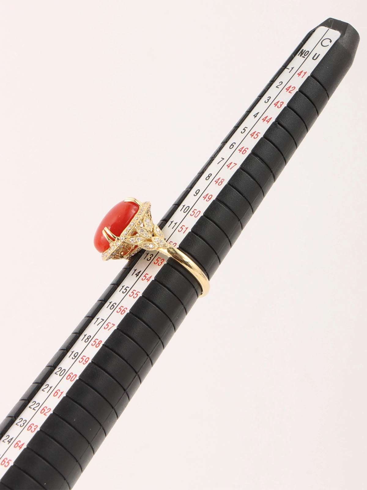 18Kコーラルダイヤモンドオーバルモチーフリング レッド/ゴールド