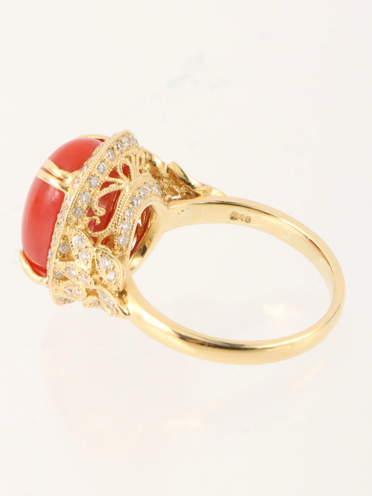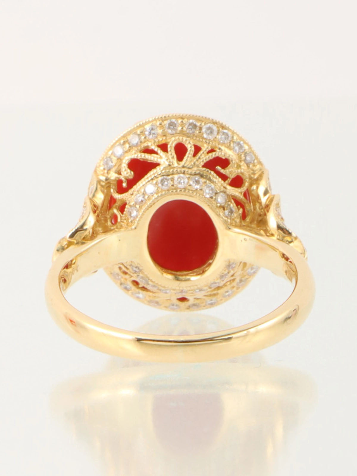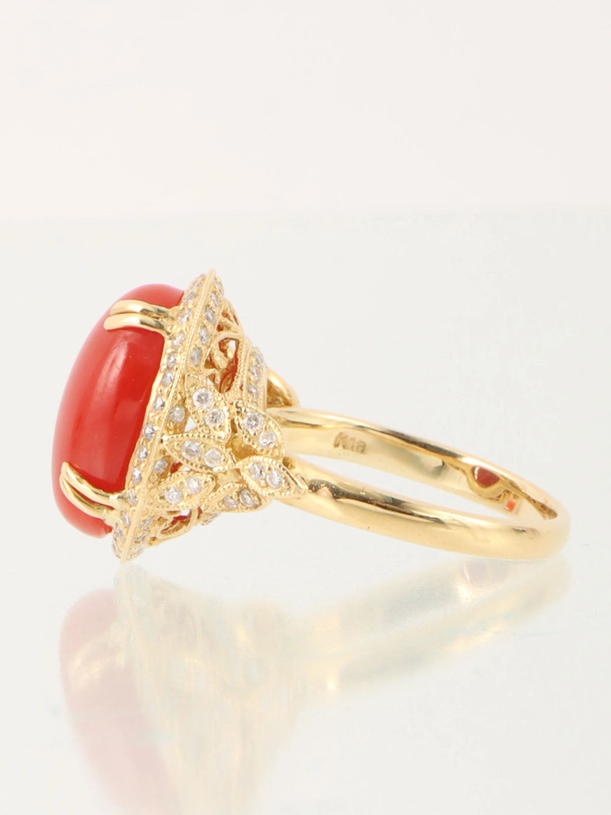18Kコーラルダイヤモンドオーバルモチーフリング レッド/ゴールド