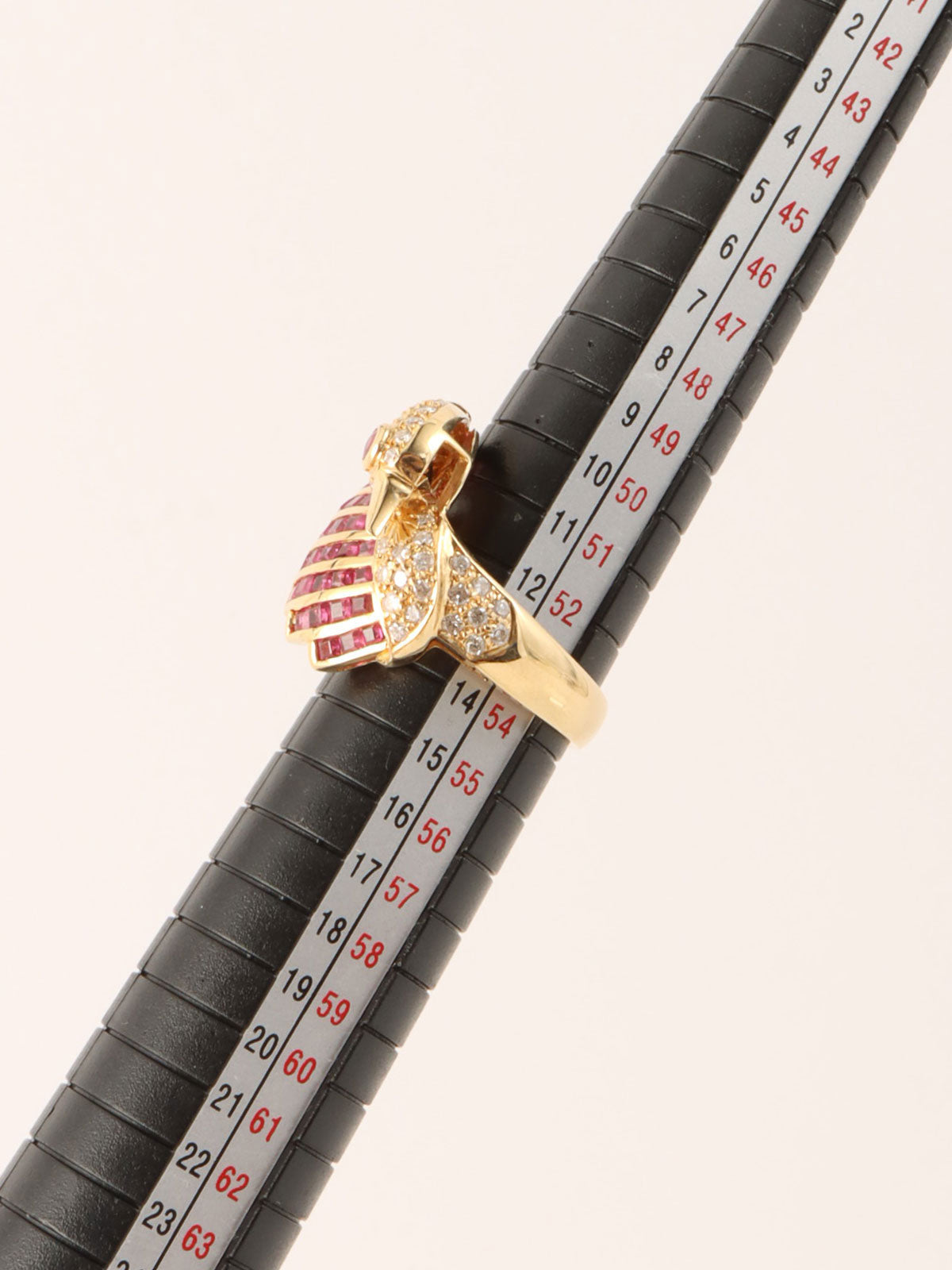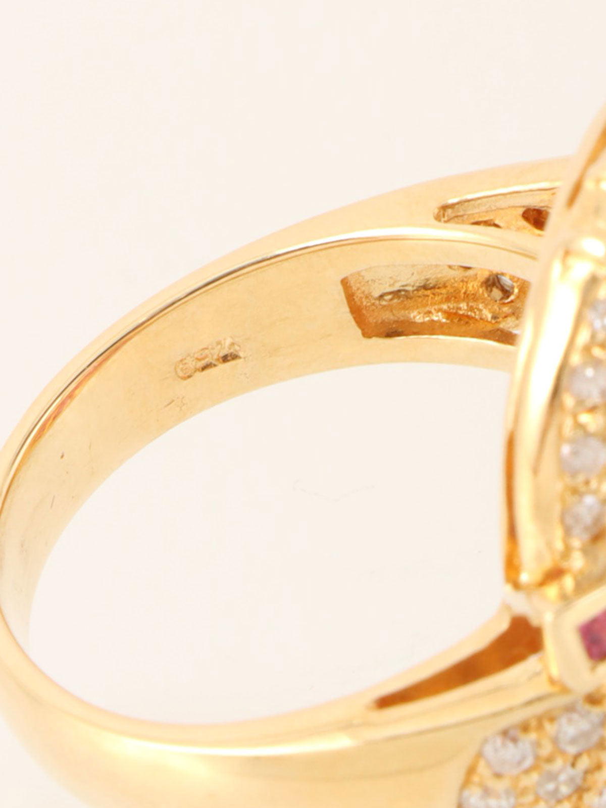 18Kダイヤモンドルビースワンモチーフリング ゴールド/ピンク