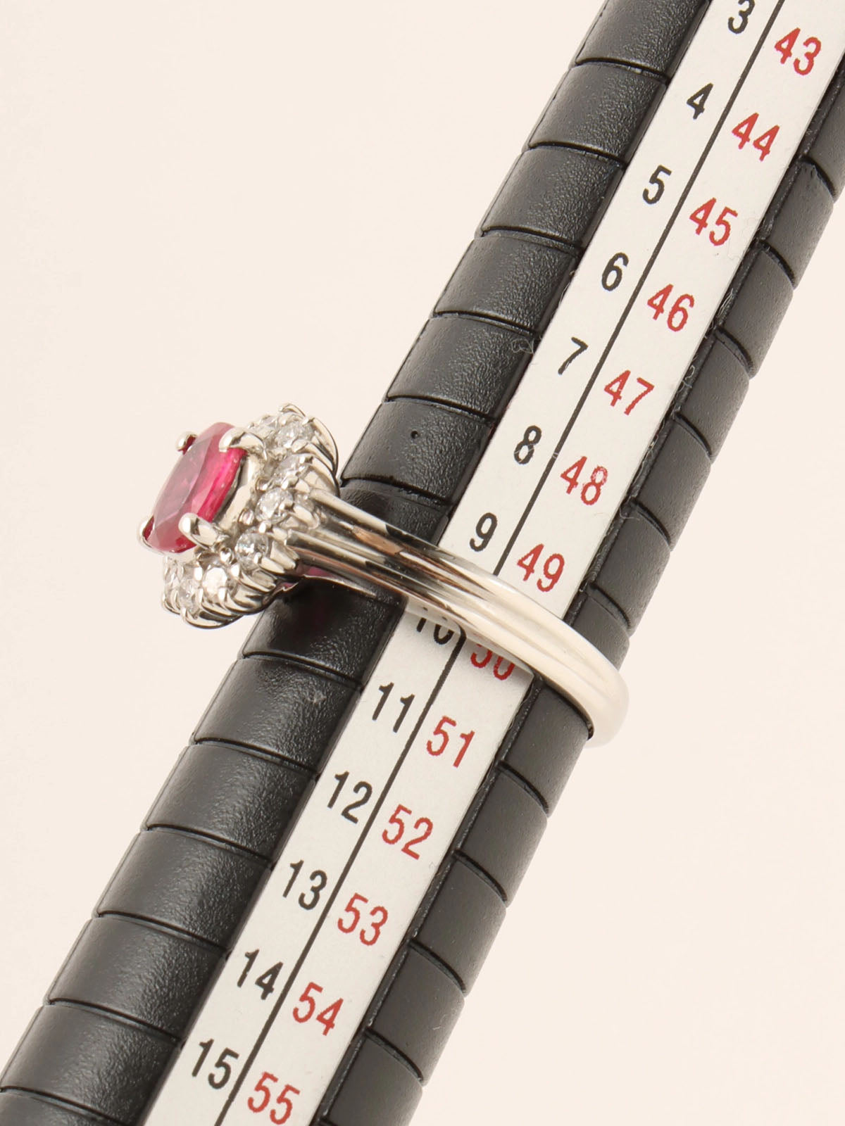 プラチナダイヤモンドルビーデザインリング シルバー/チェリーレッド