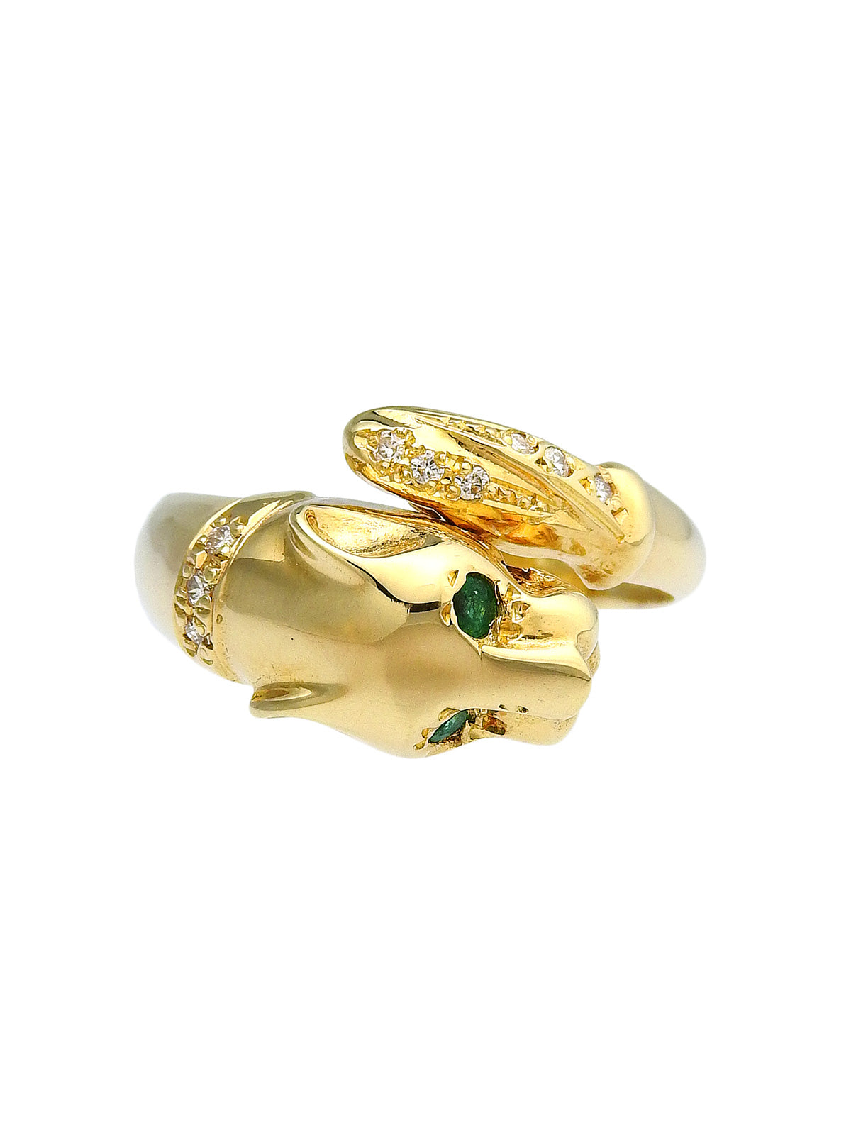 18Kエメラルドダイヤモンドパンサーモチーフリング ゴールド/グリーン