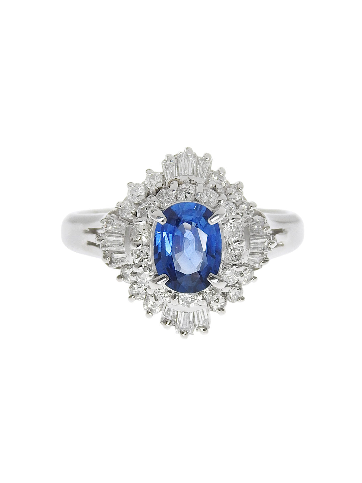 プラチナサファイアダイヤモンドデザインリング シルバー/ブルー