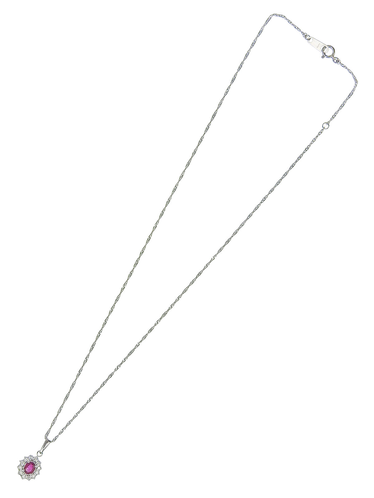 プラチナルビーダイヤモンドオーバルネックレス シルバー/ピンク