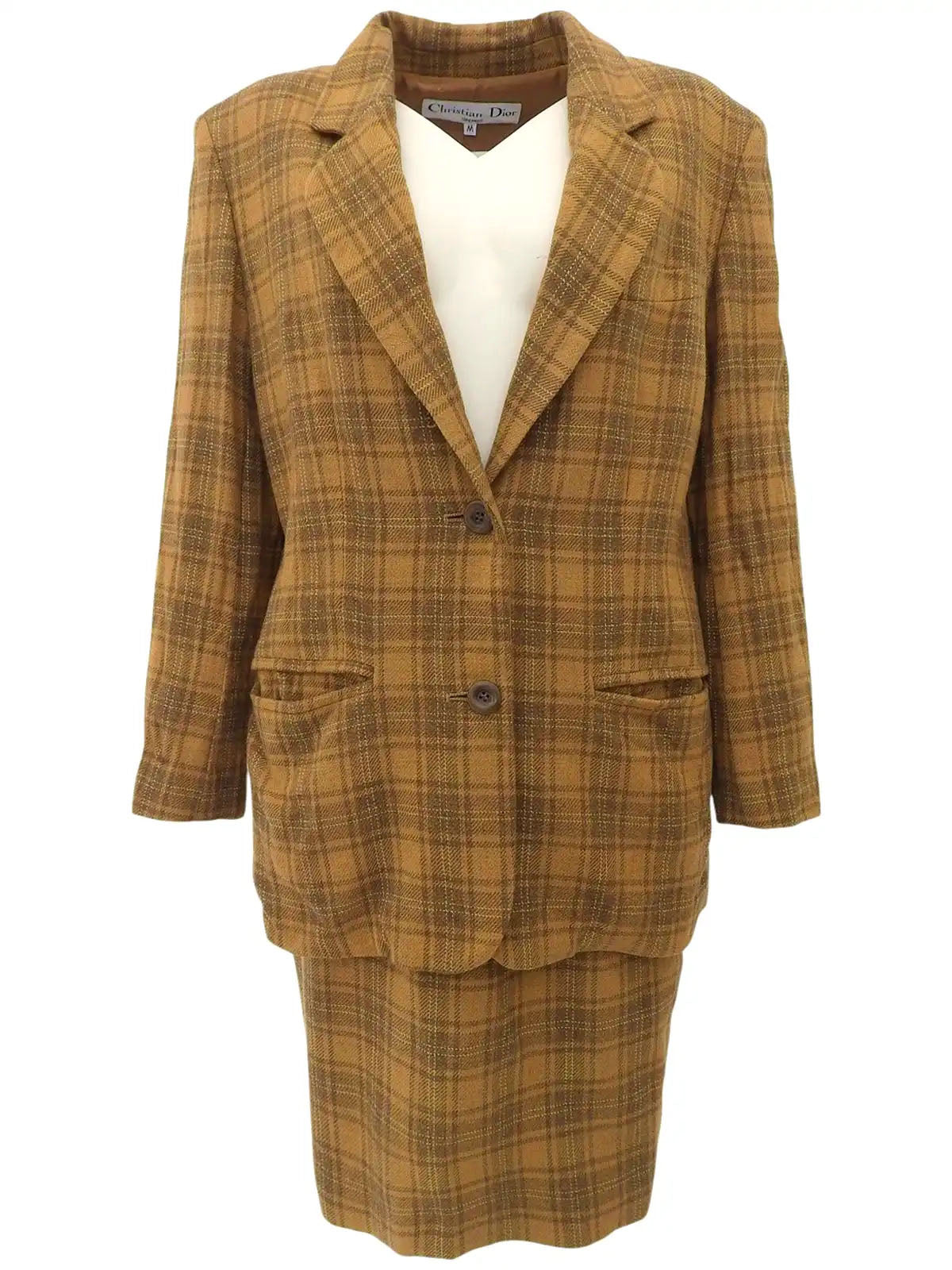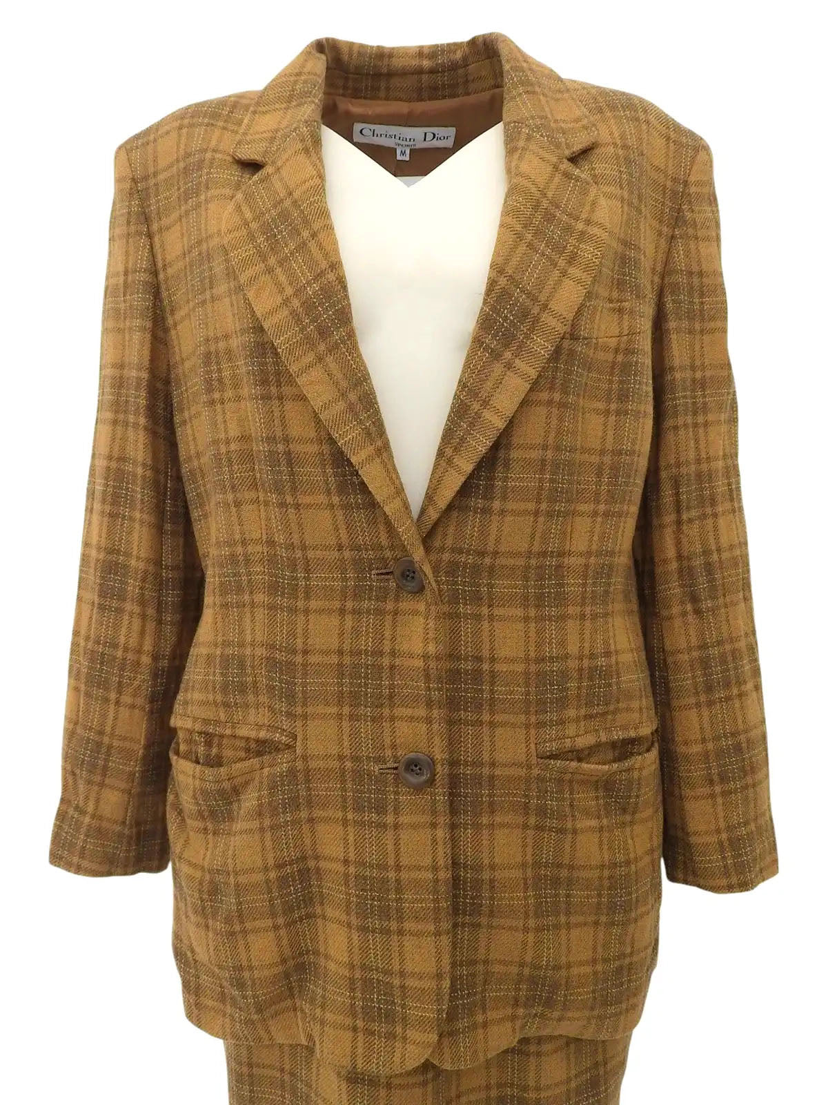 ウールチェックパターンセットアップ キャメル/ブラウン