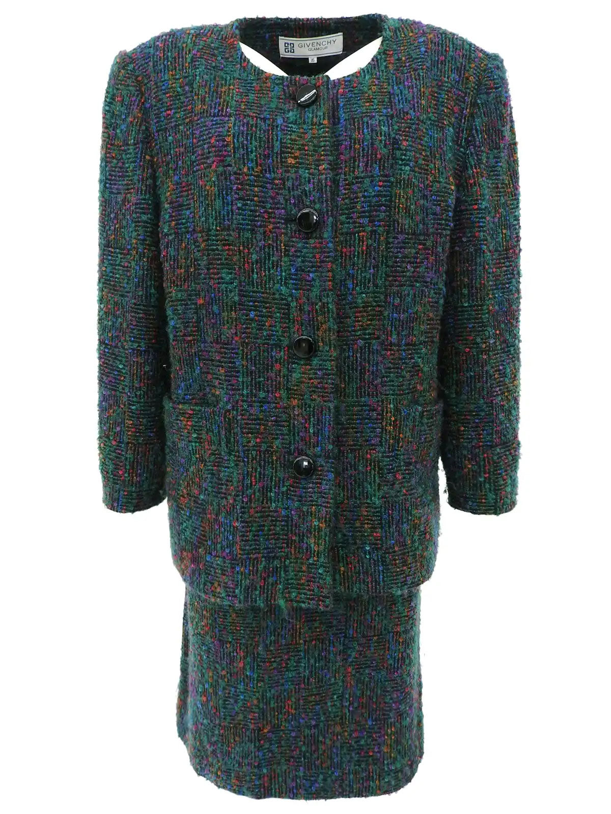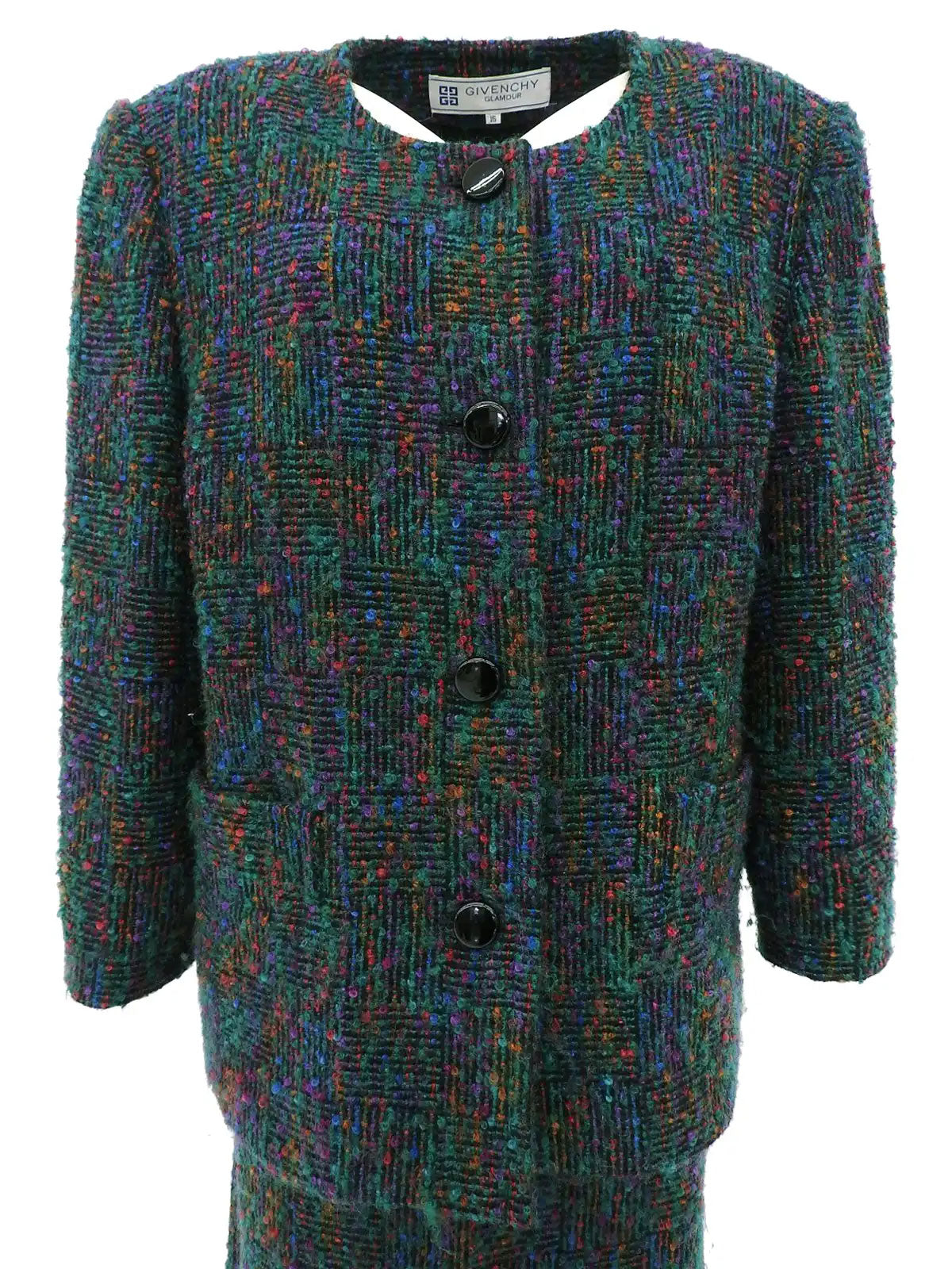 ツイードラウンドボタンセットアップ グリーン/マルチ