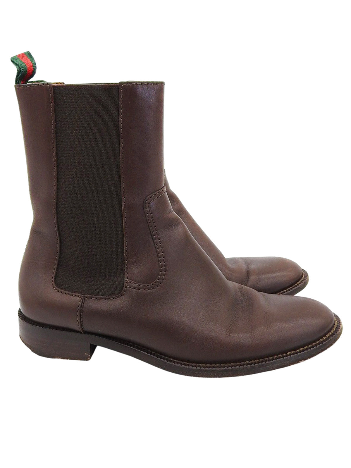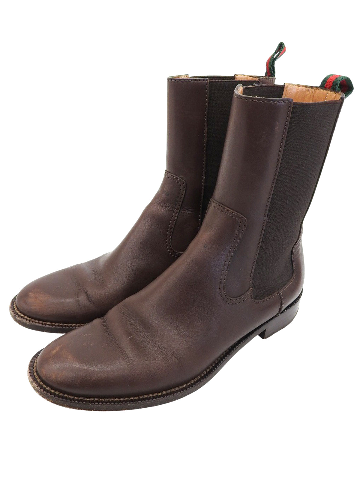 レザーシェリーラインサイドゴアブーツ ダークブラウン