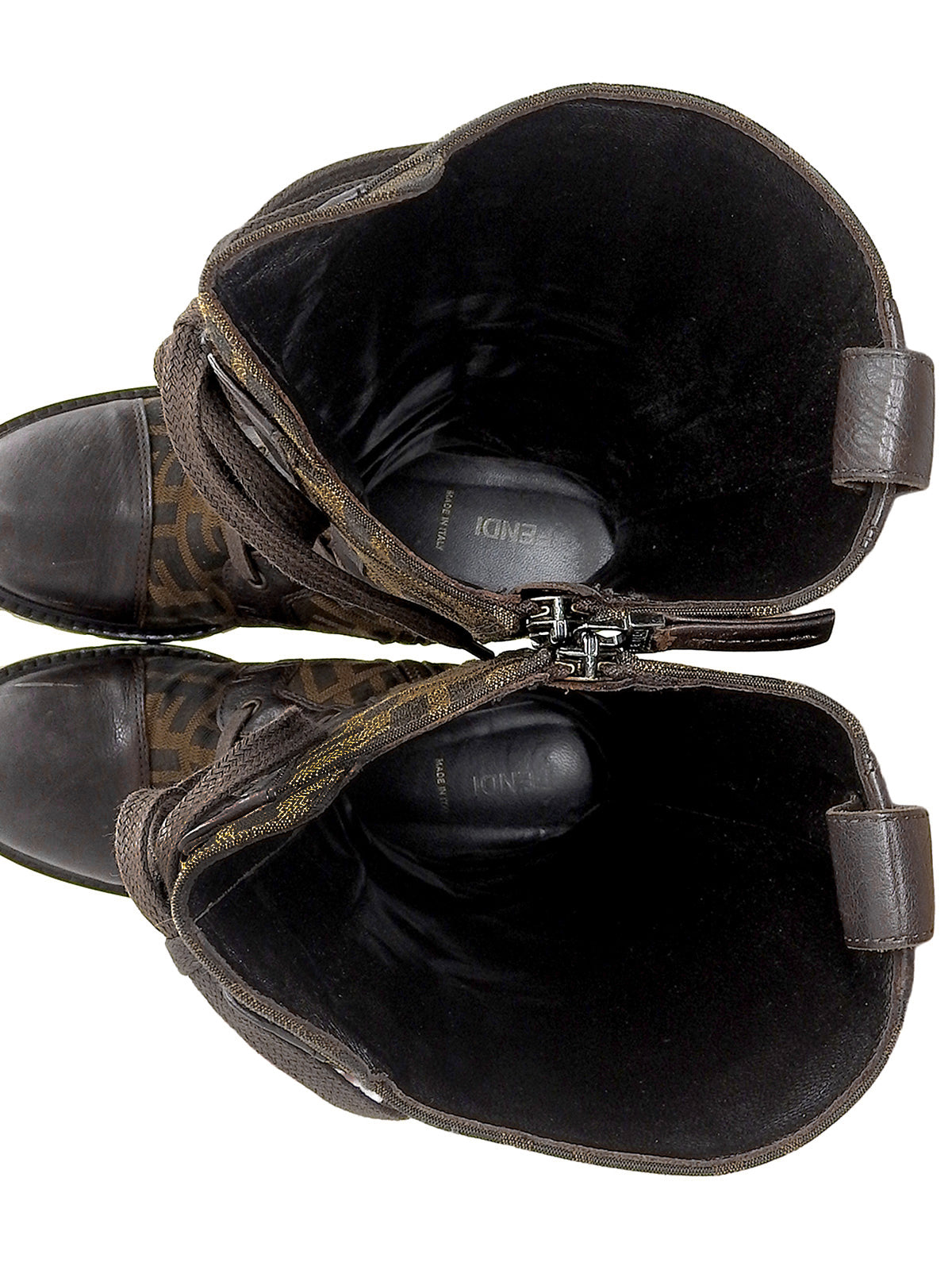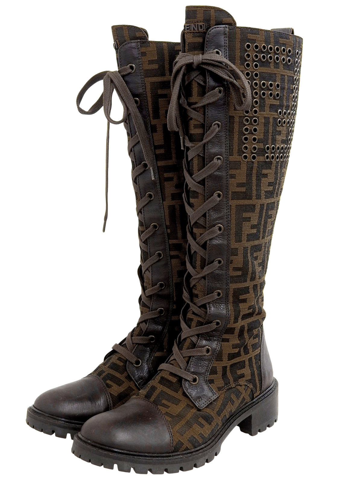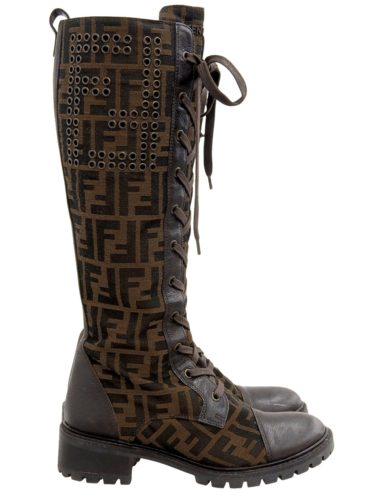 FFズッカパターンレースアップロングブーツ ブラウン