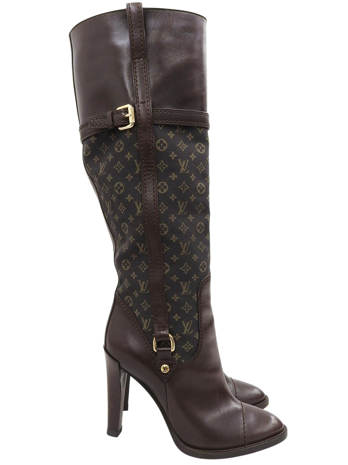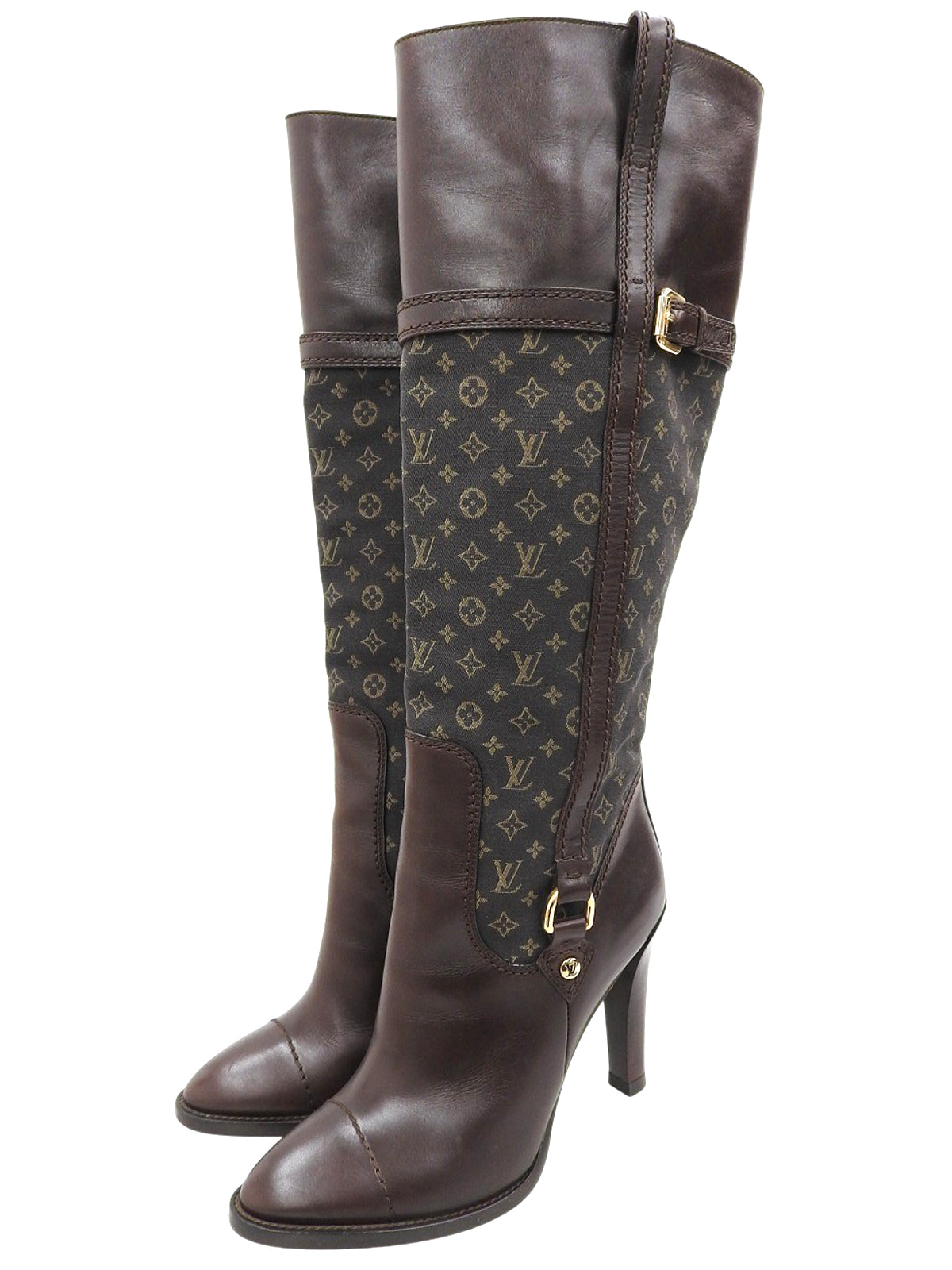 キャンバスレザーコンビモノグラムロングブーツ ブラウン