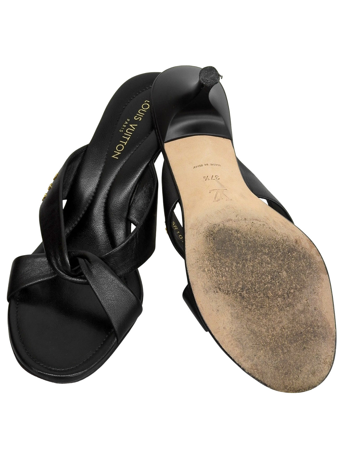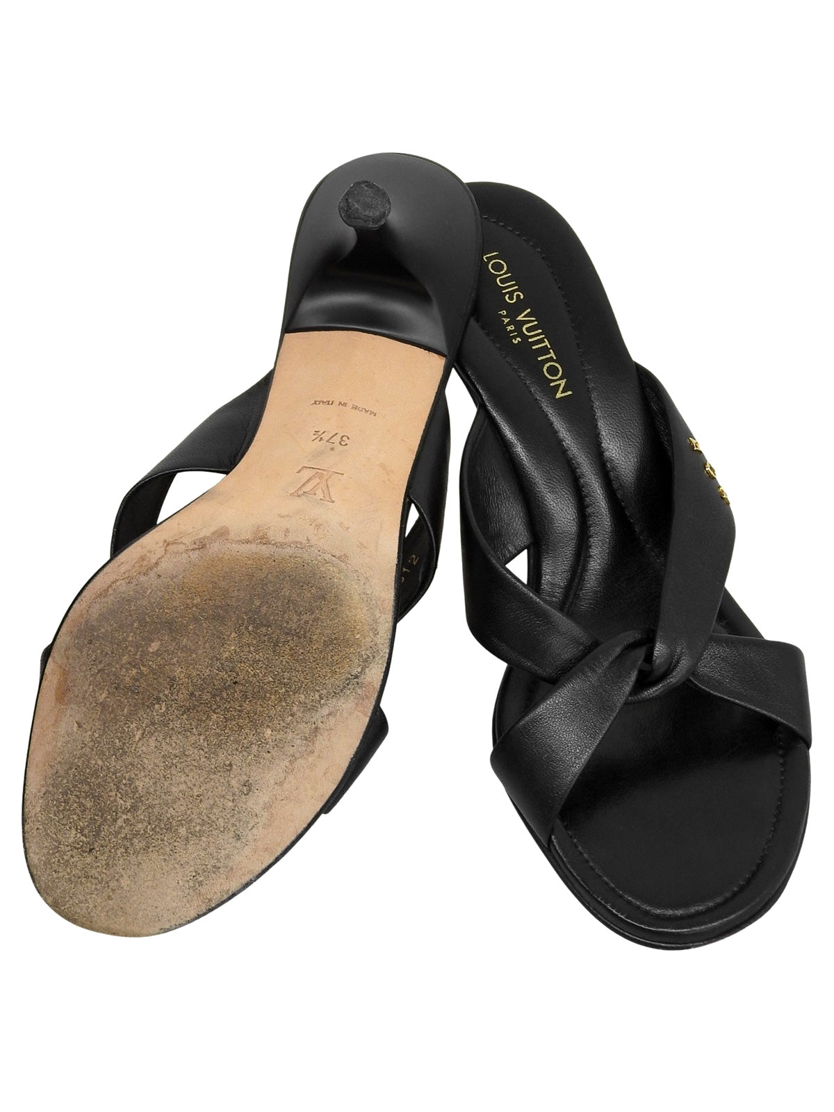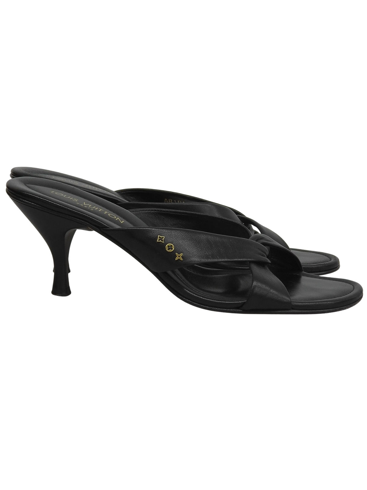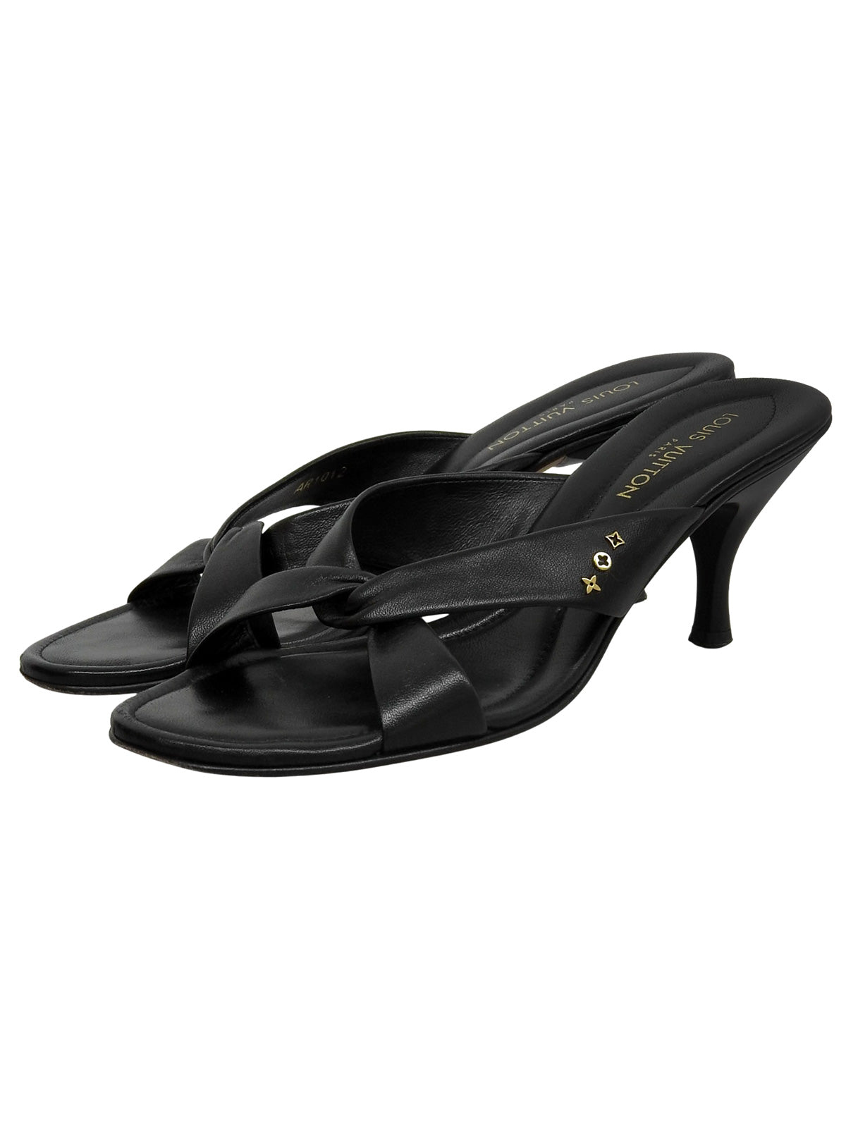 2002年製 レザーモノグラムプレートサンダル ブラック