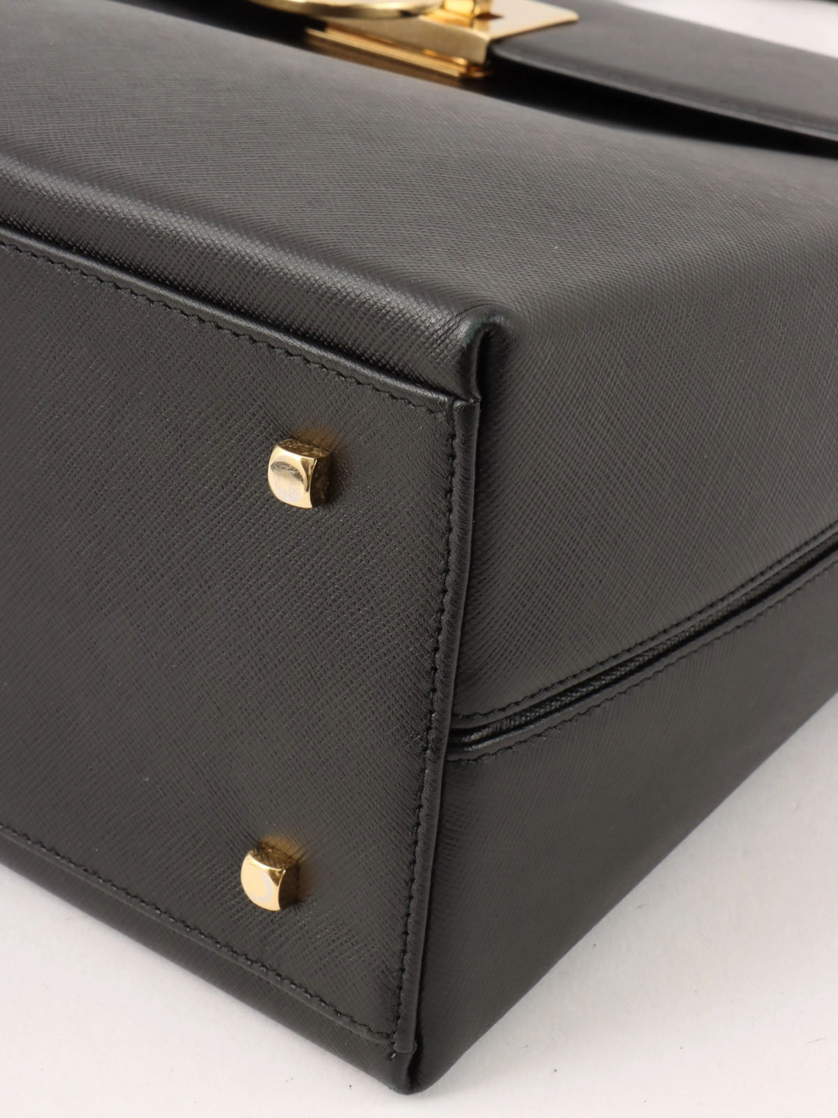 サフィアーノガンチーニプレート2wayバッグ ブラック
