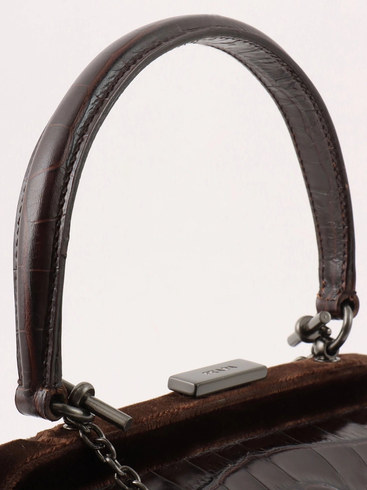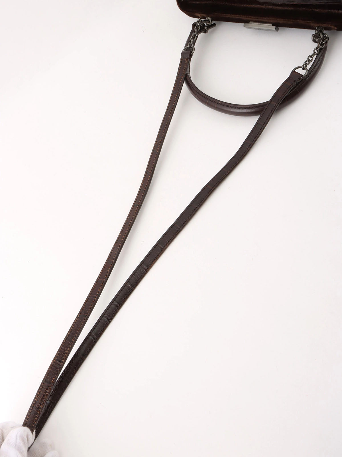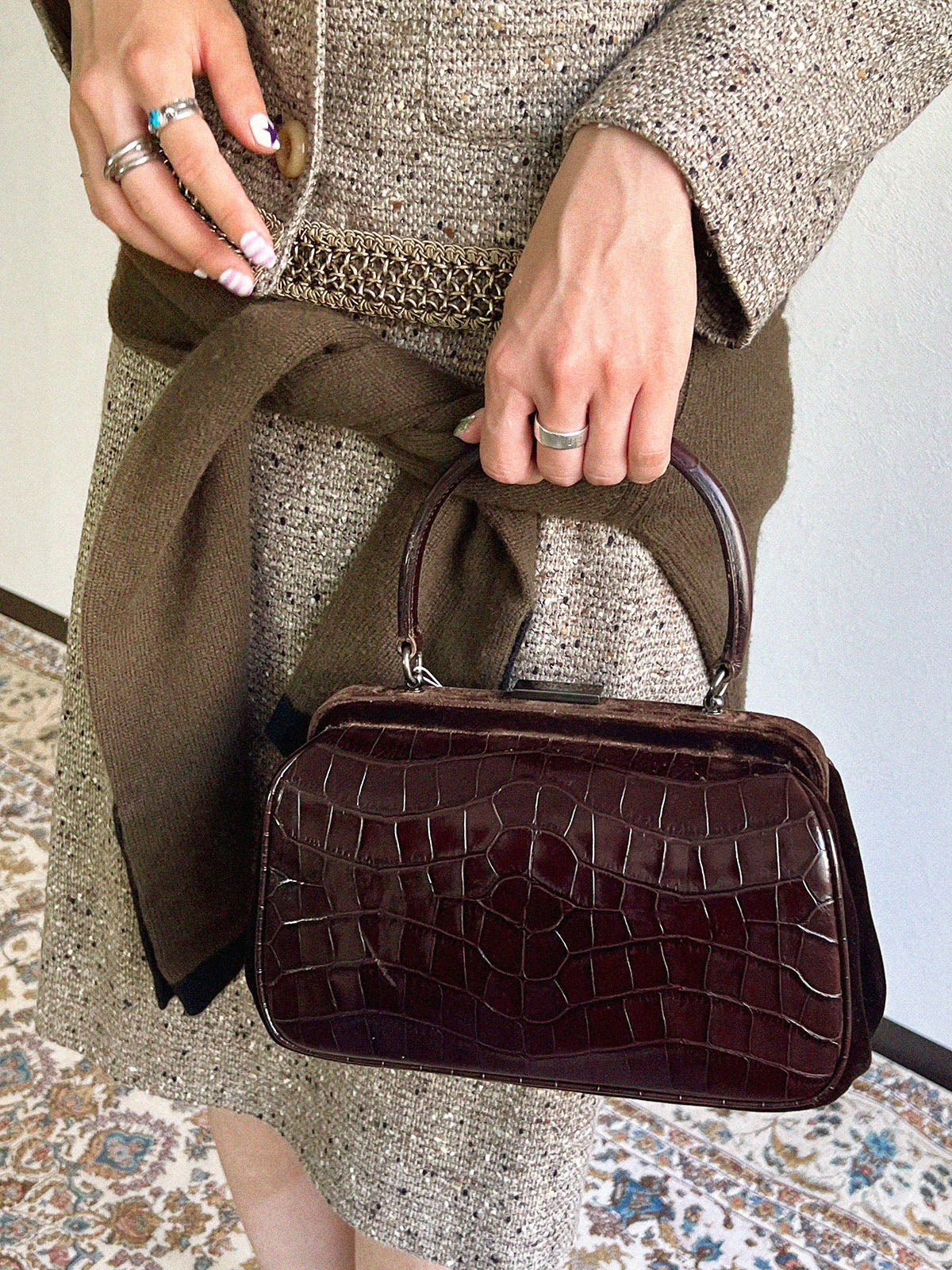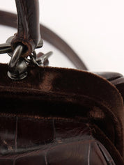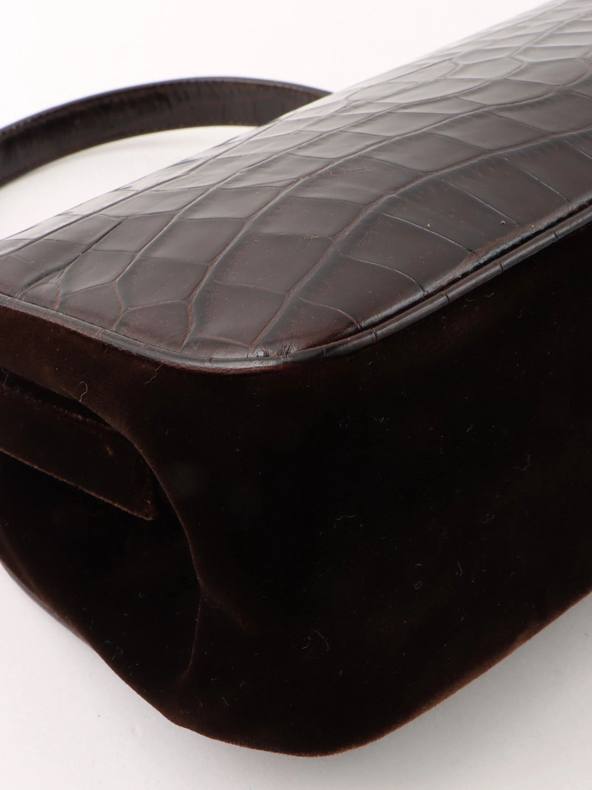 クロコダイルベロアコンビ2wayバッグ ダークブラウン