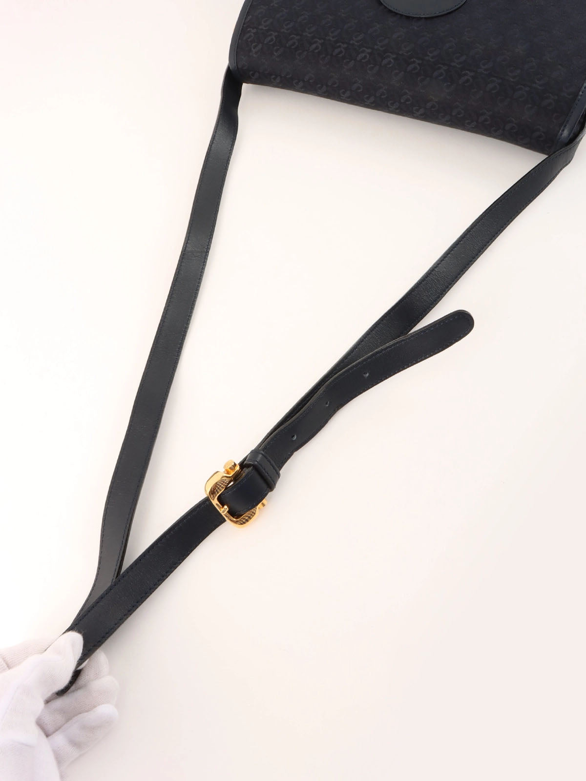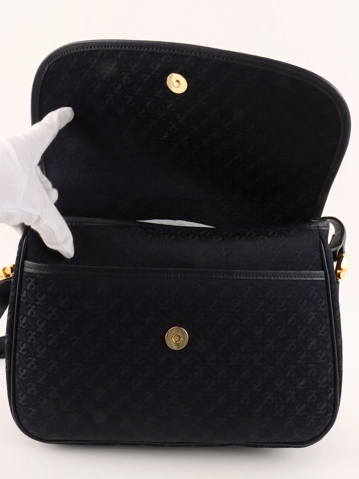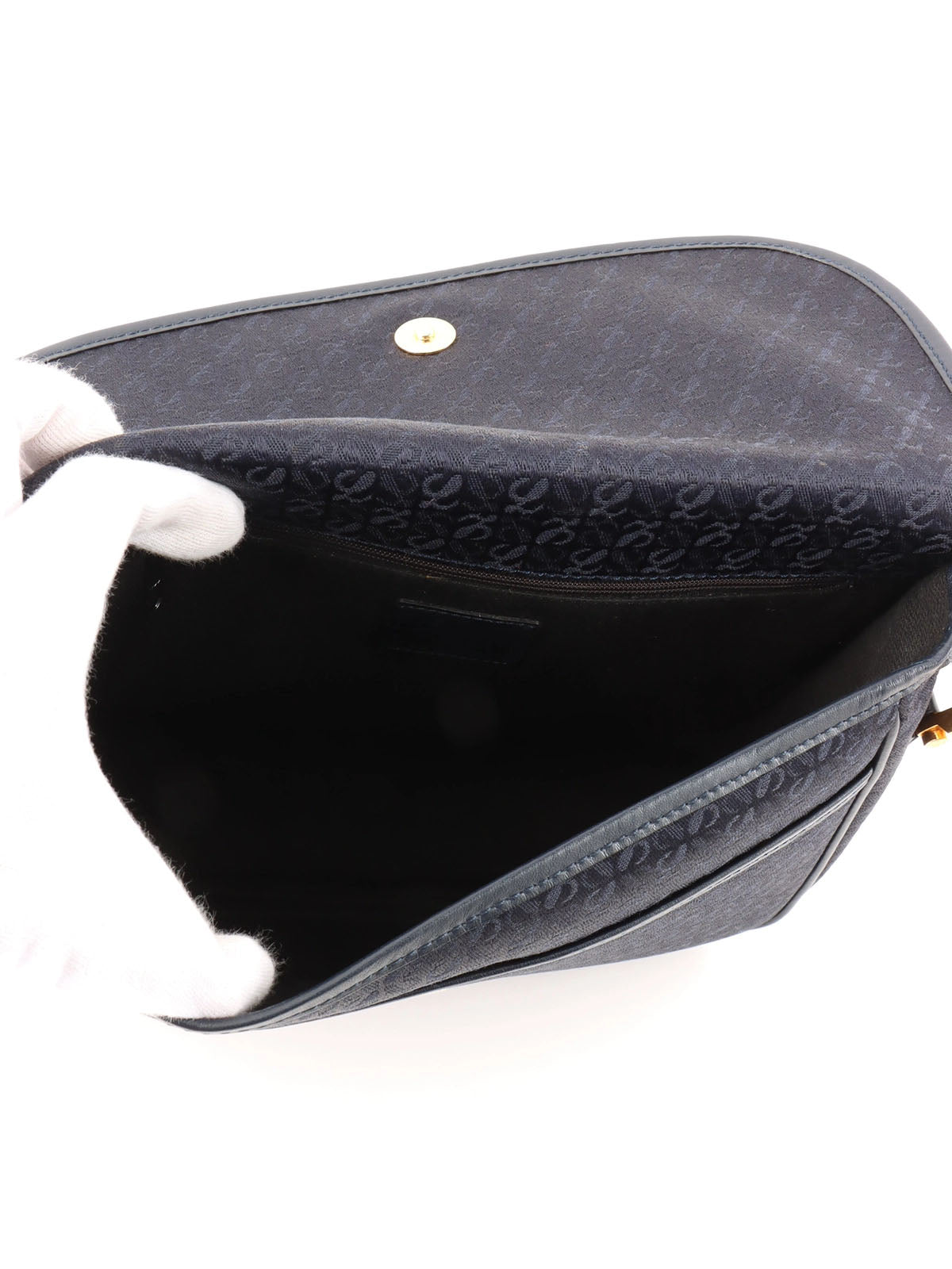 キャンバスアナグラムパターンショルダーバッグ ネイビー