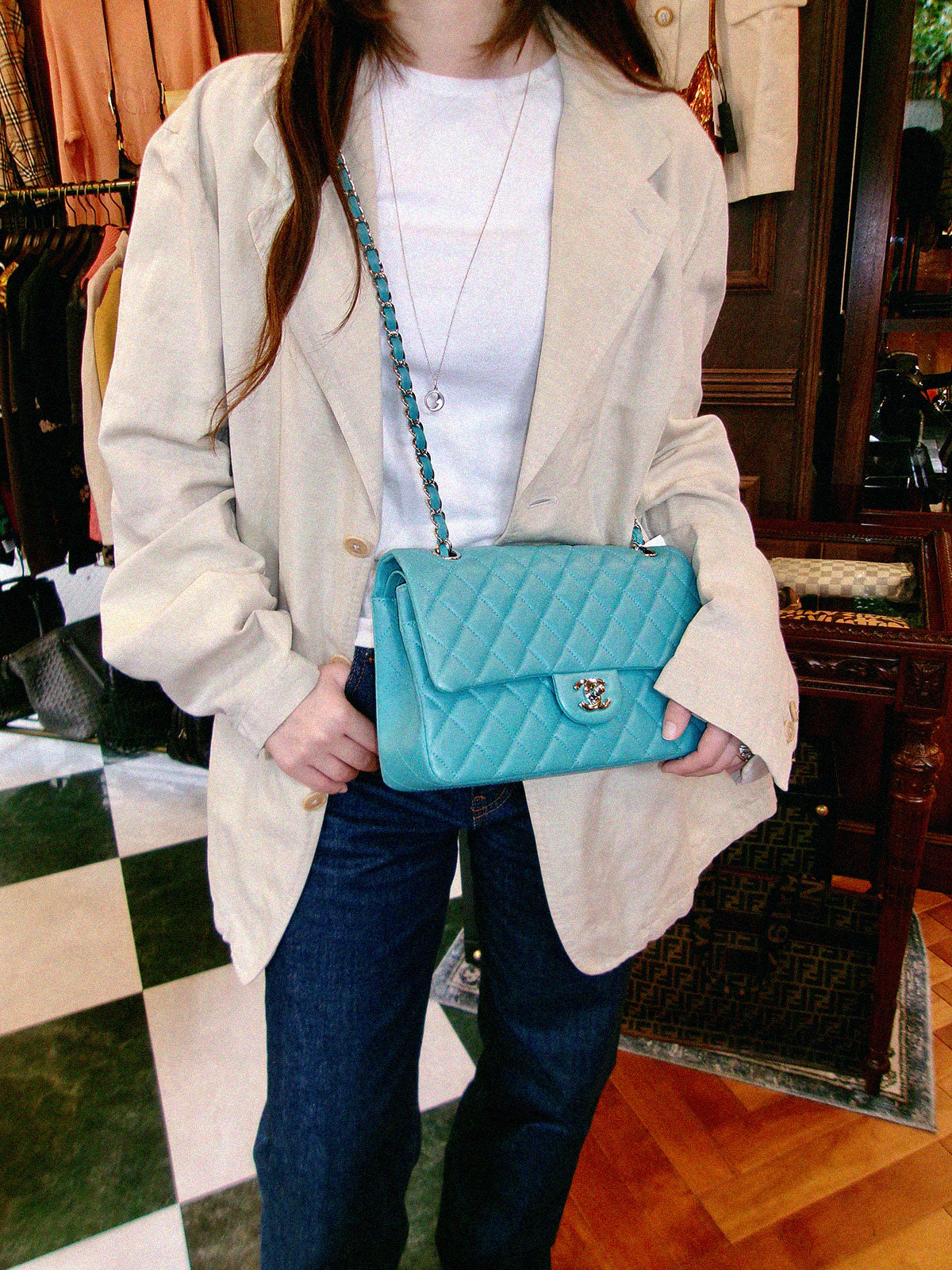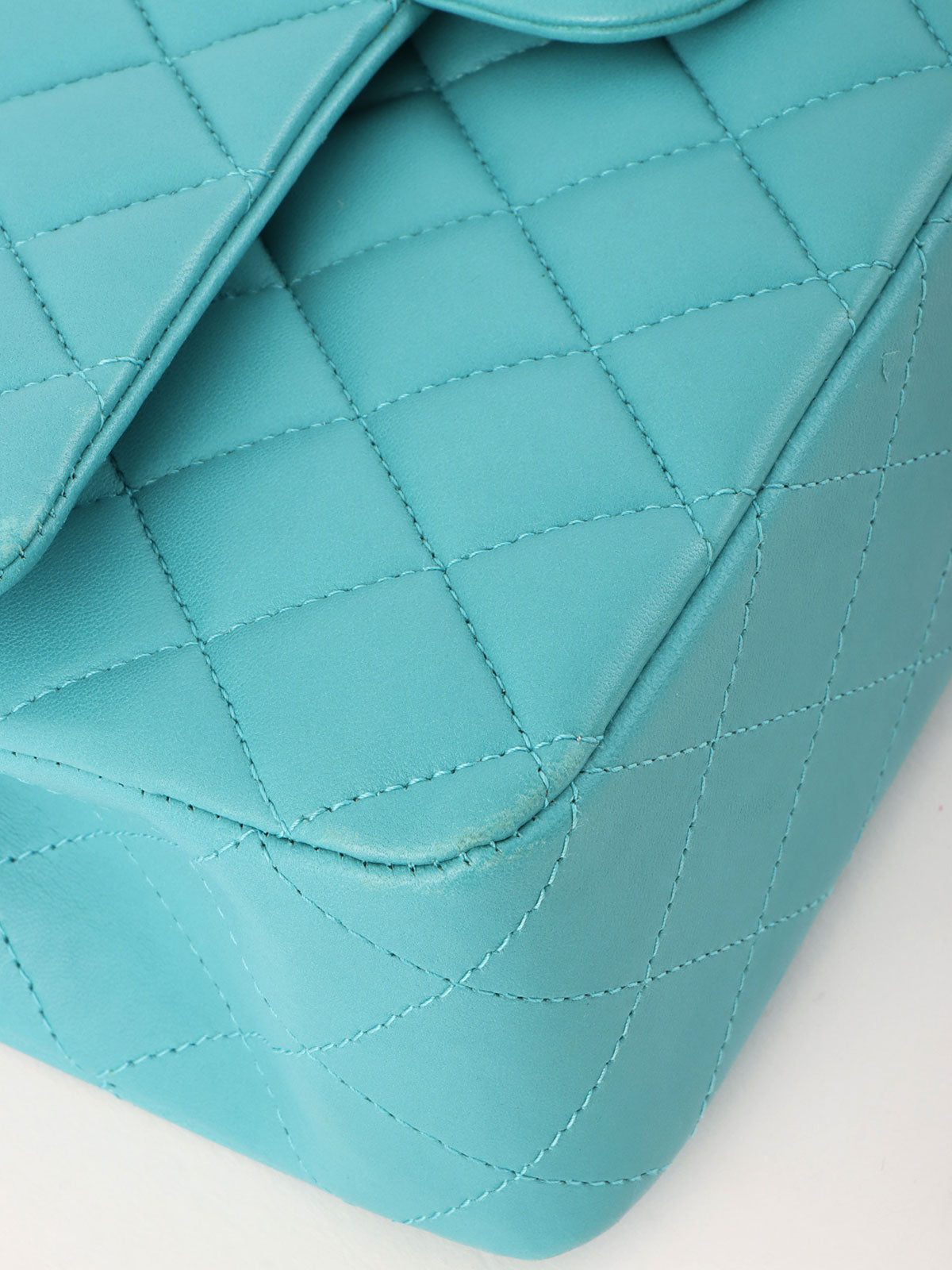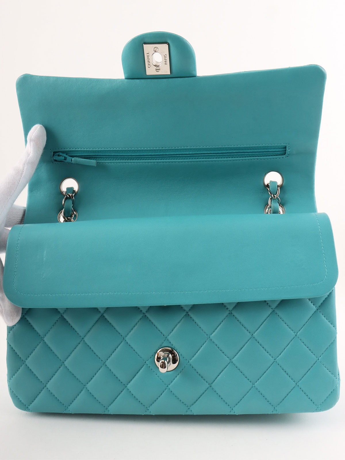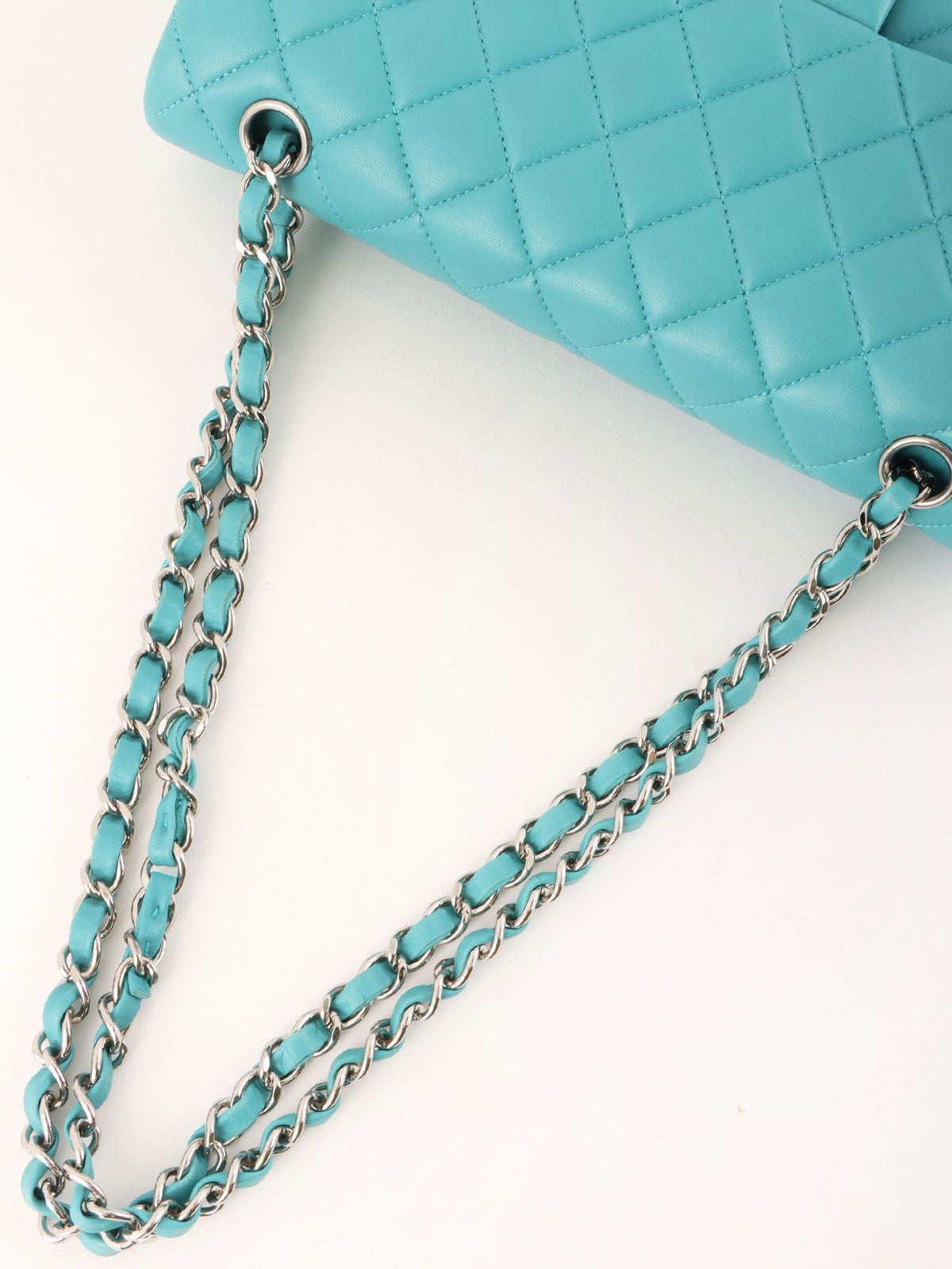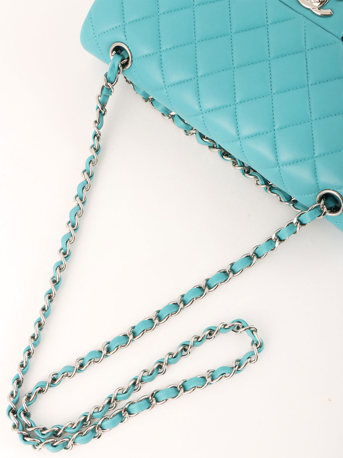 2014年頃製 クラシックフラップチェーンバッグ25cm ターコイズブルー