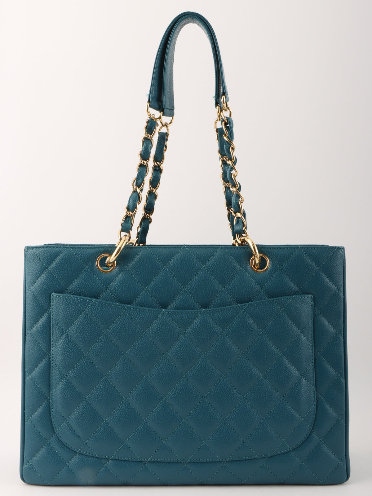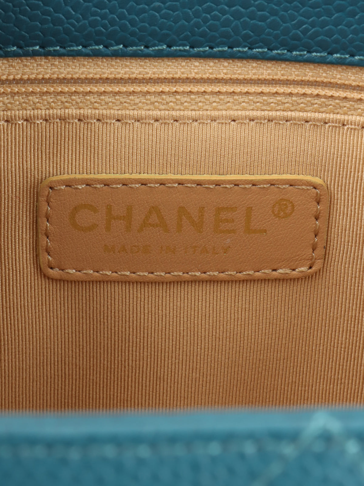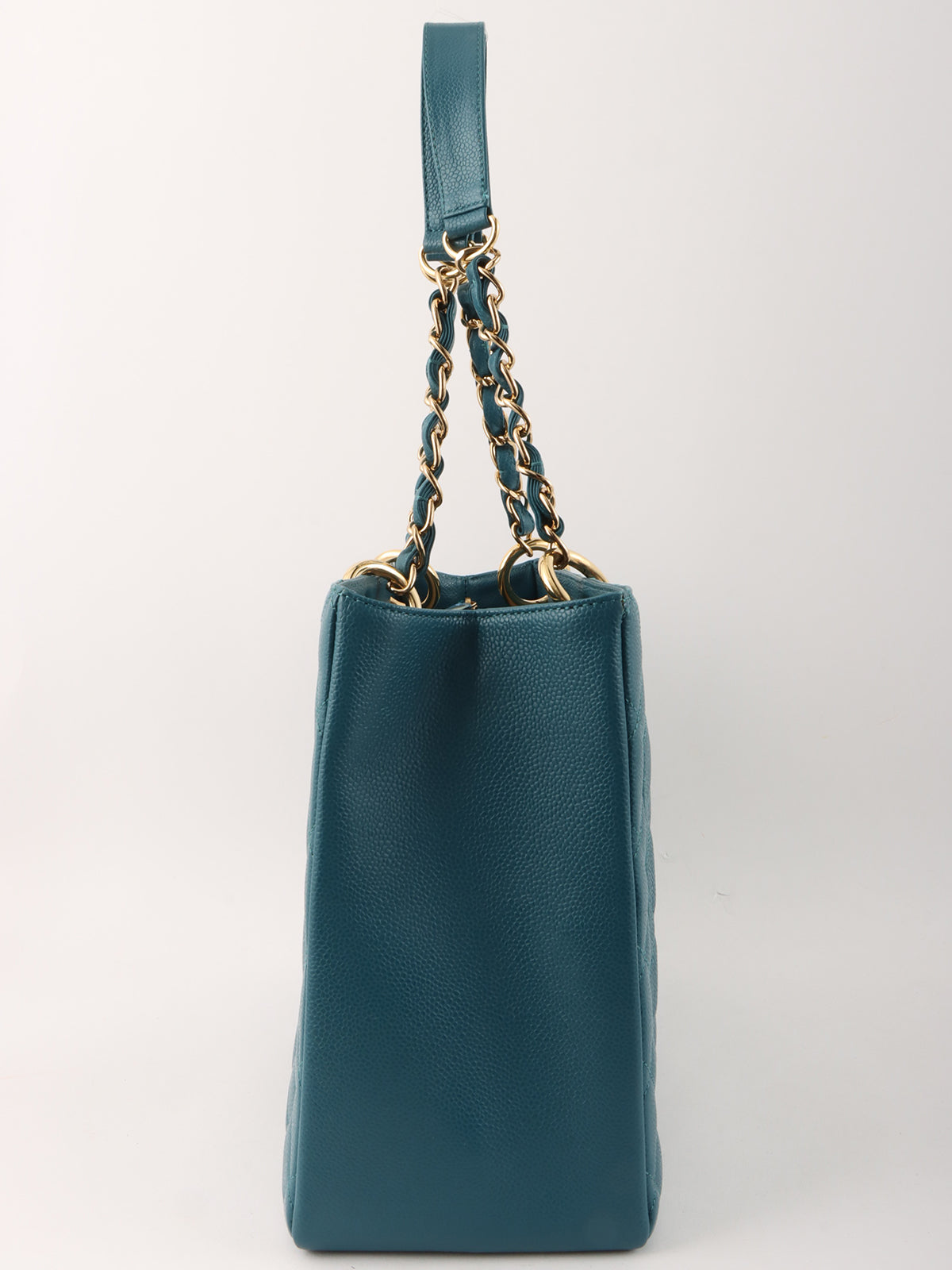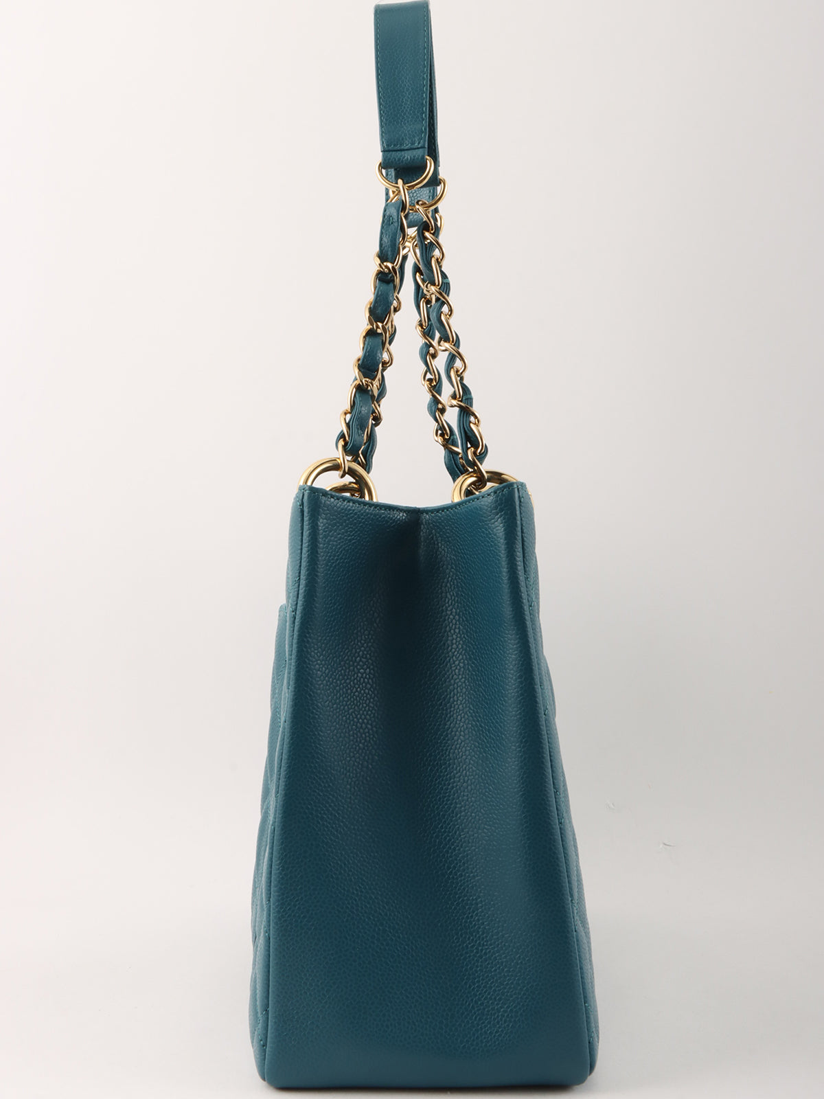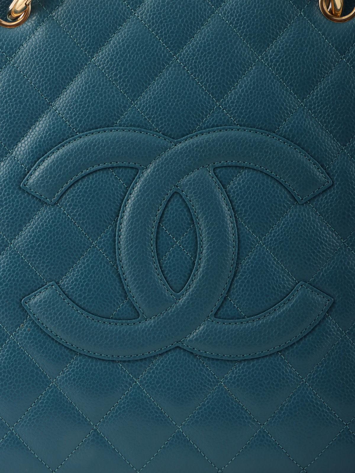 2004年頃製 キャビアスキンCCマークステッチチェーントートバッグ インディゴブルー