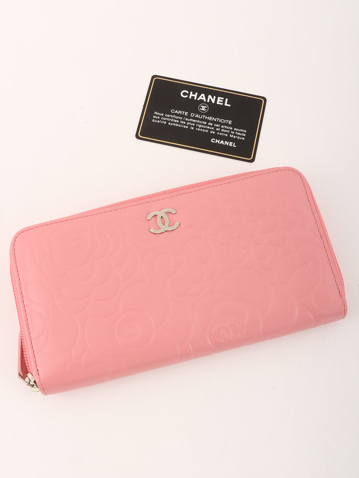 2011年頃製 カメリアエンボスCCマークプレートロングウォレット ピンク
