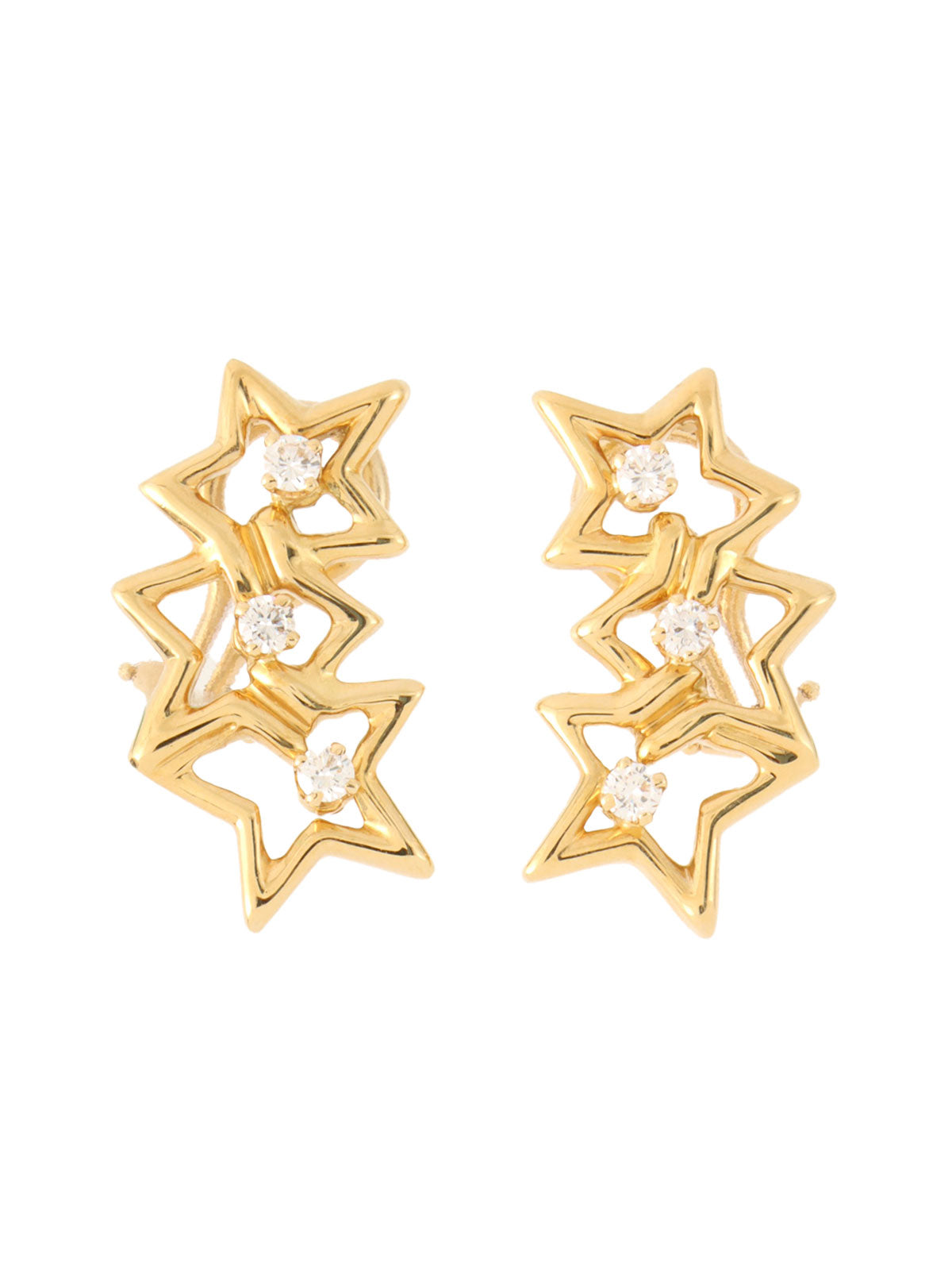 18Kダイヤモンドトリプルスターイヤリング ゴールド