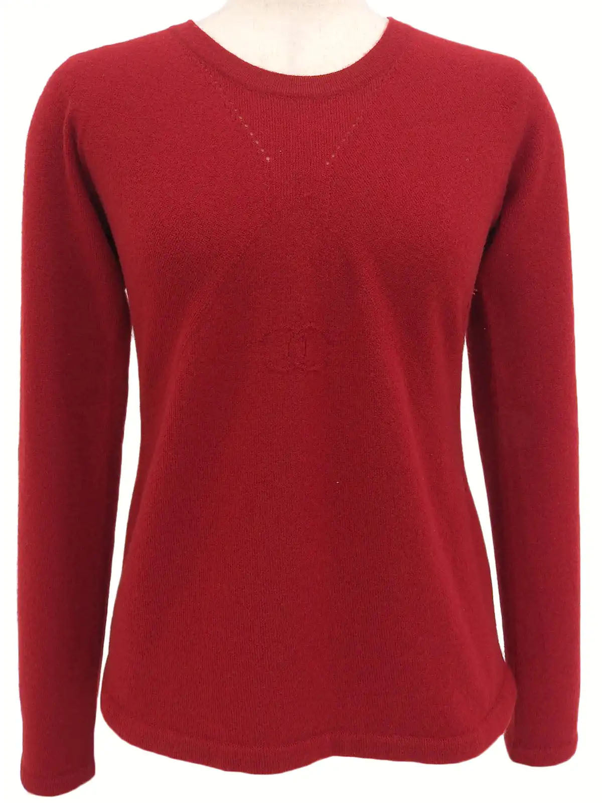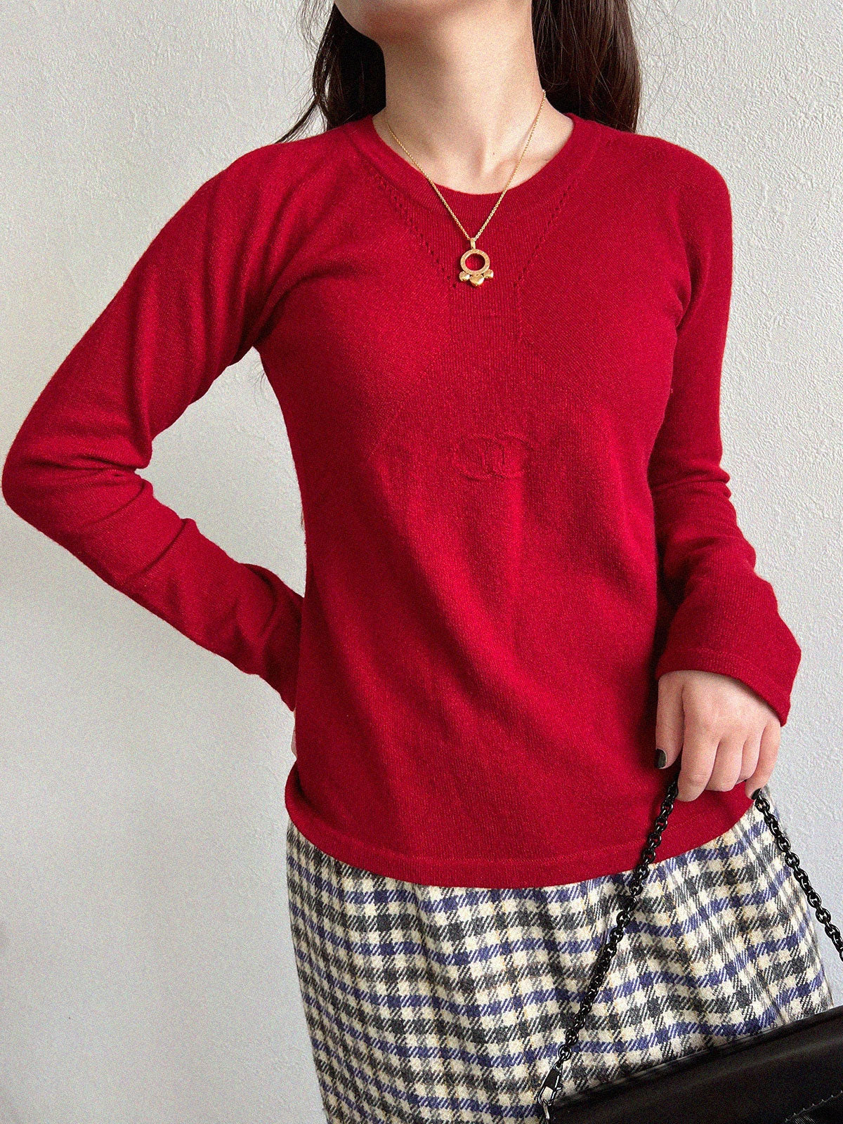 2002年製 カシミアCCマークロングスリーブニットトップス レッド