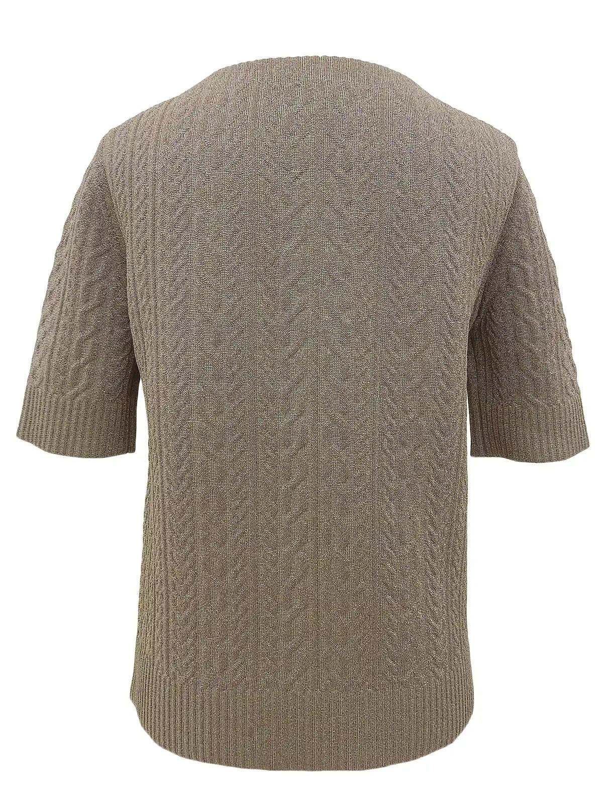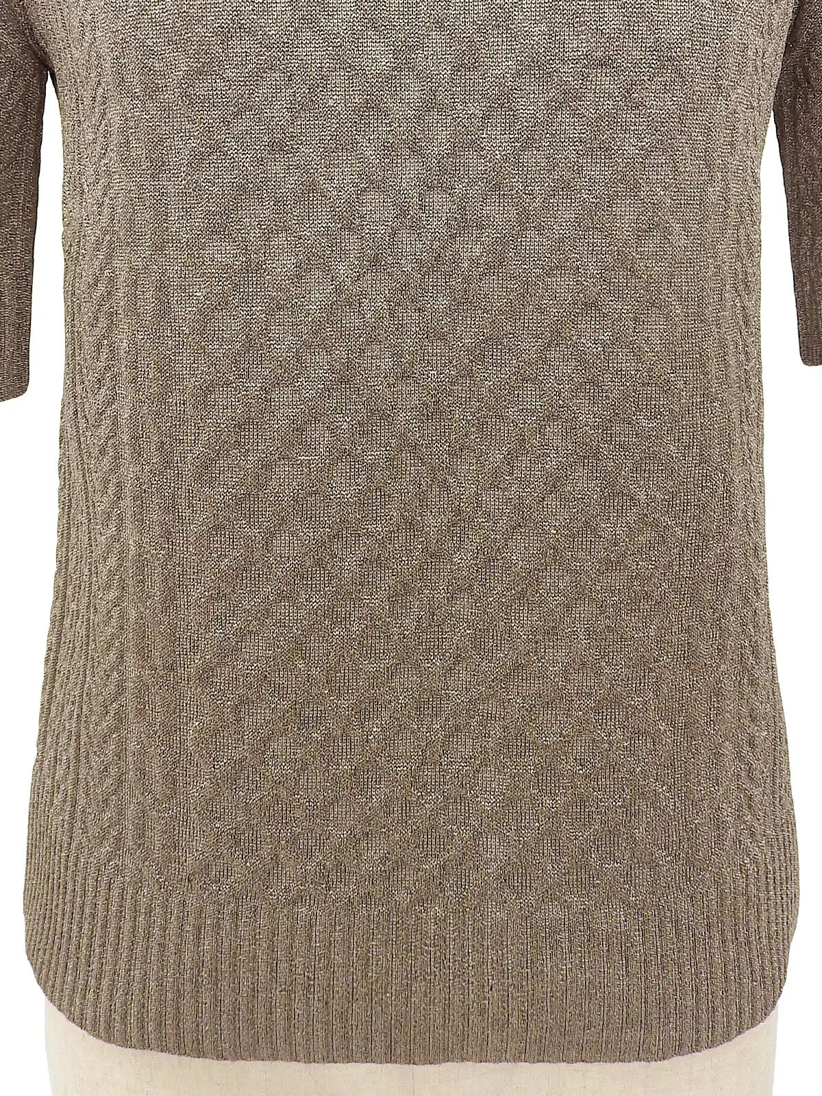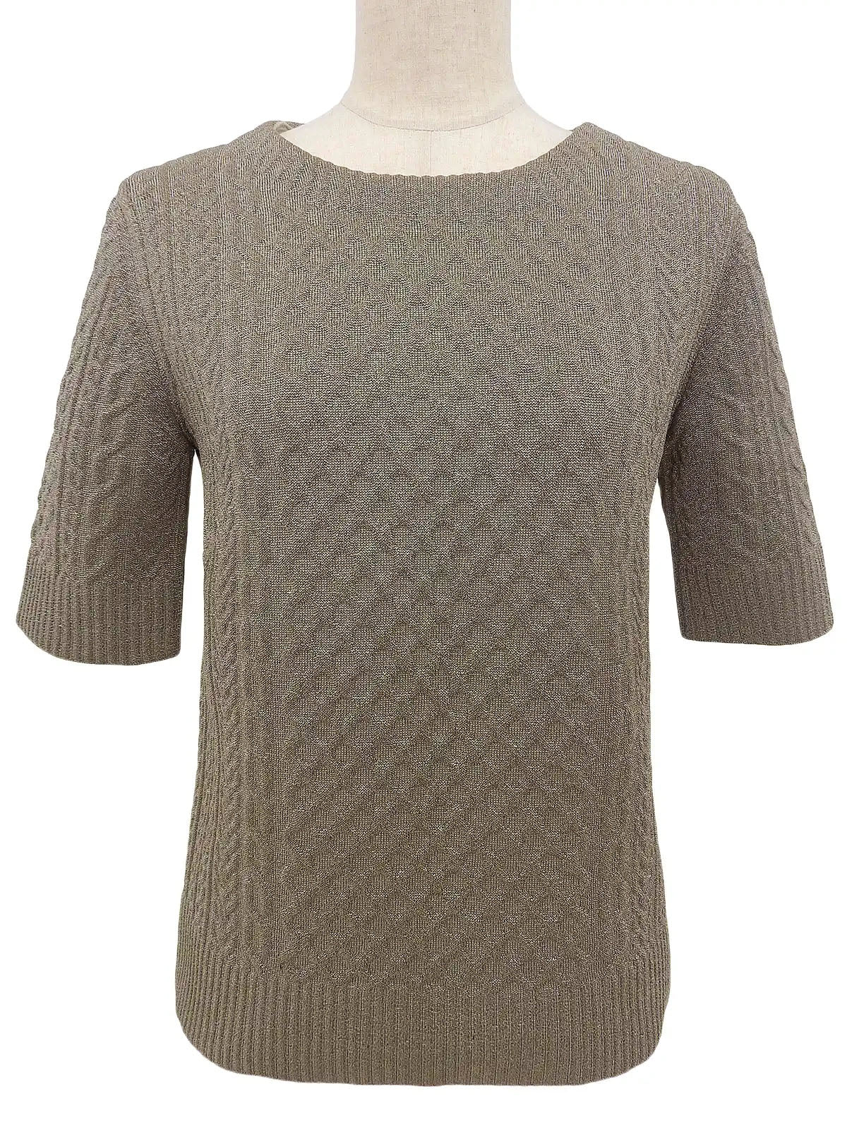 ラメキルティングデザインハーフスリーブニットトップス ベージュ