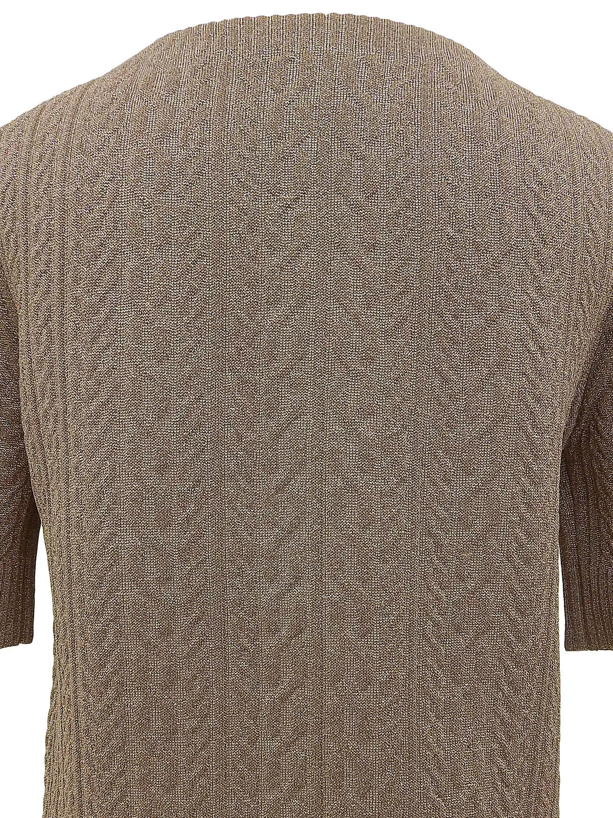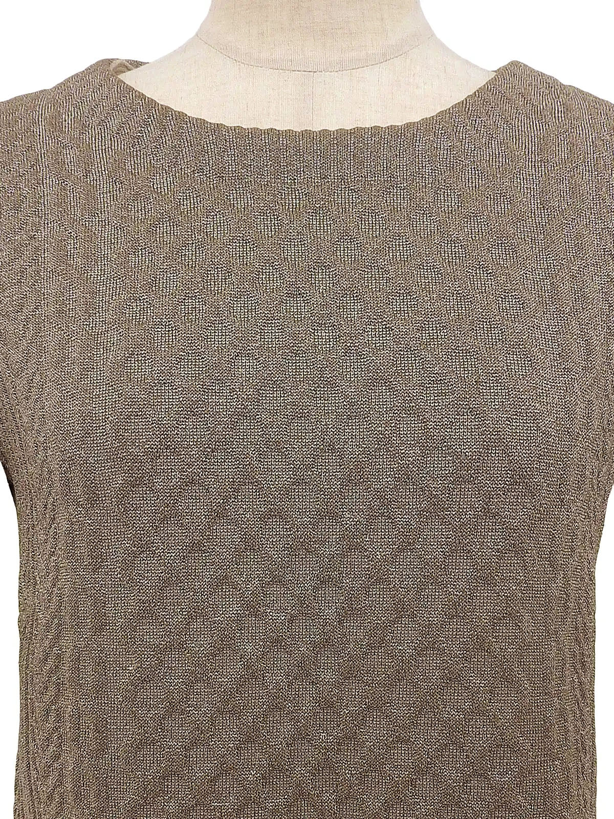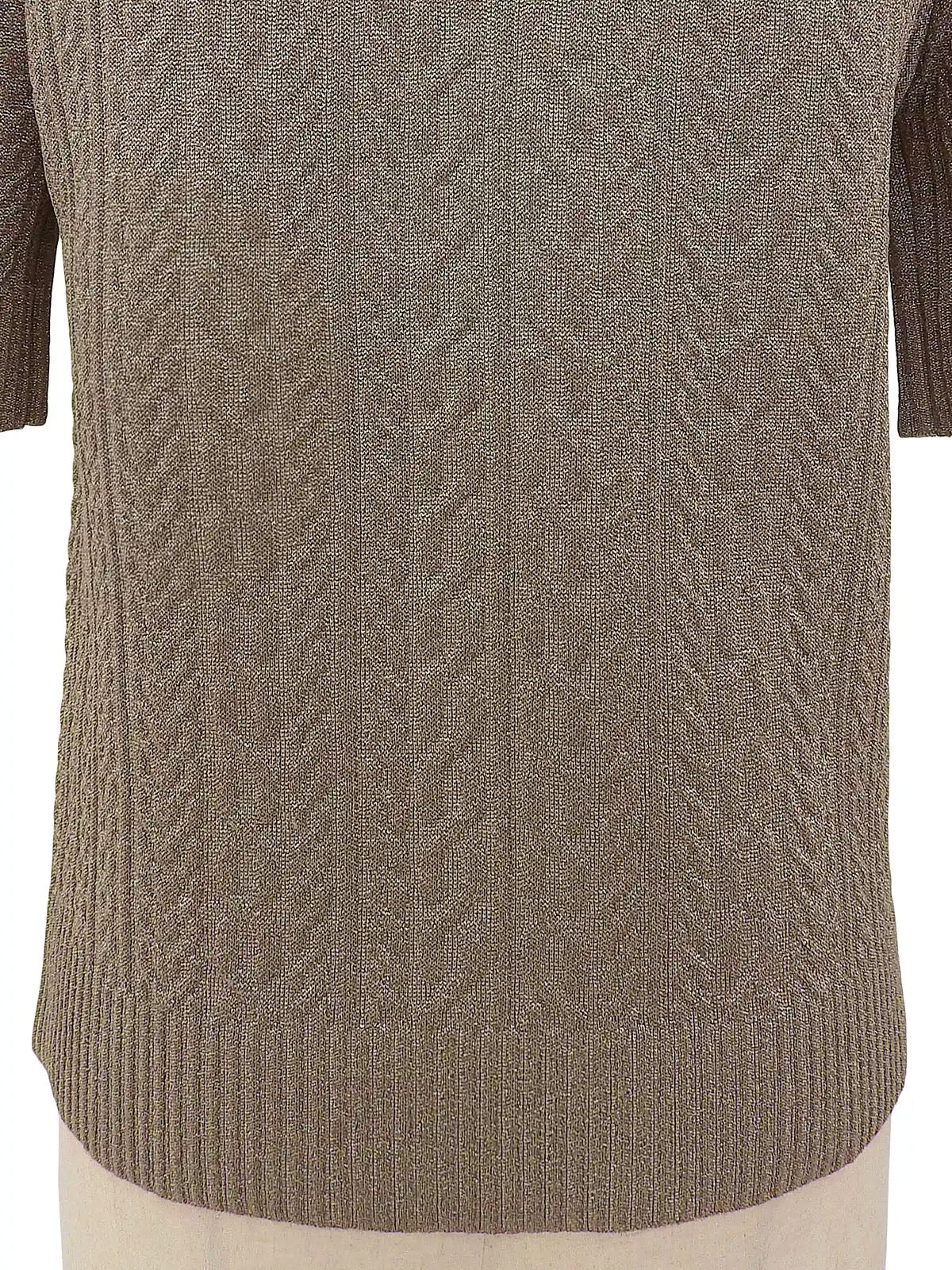 ラメキルティングデザインハーフスリーブニットトップス ベージュ