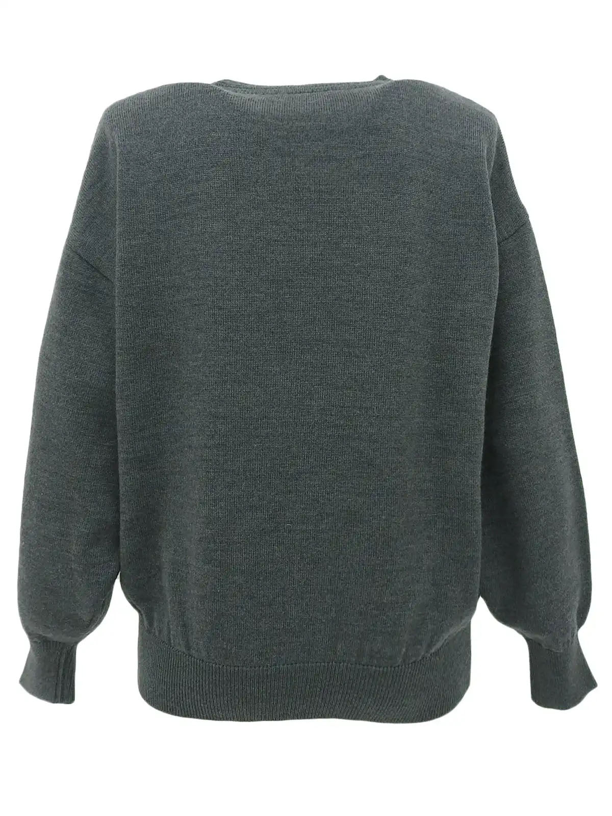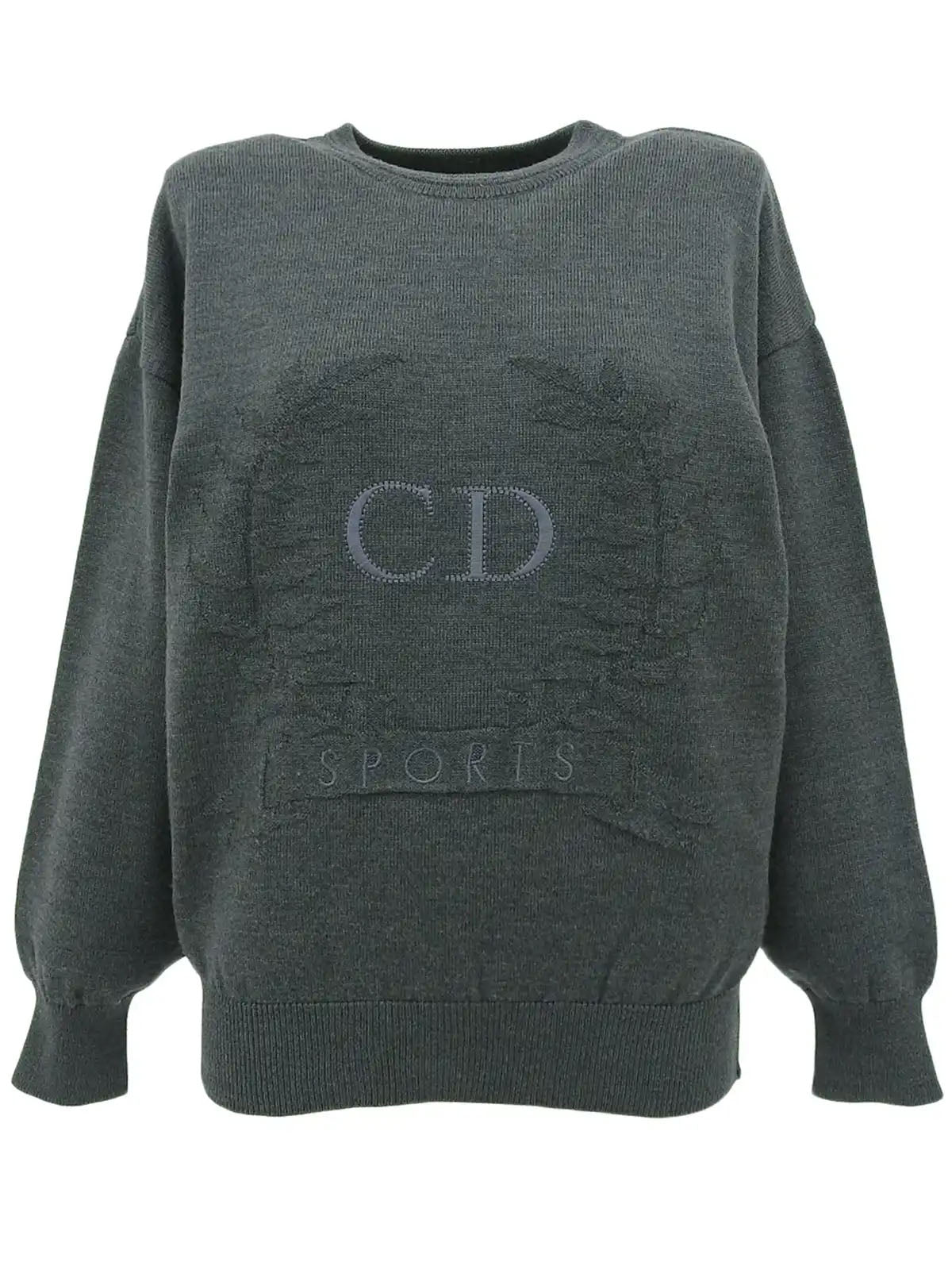 ロゴ刺繍ロングスリーブニットトップス グレー