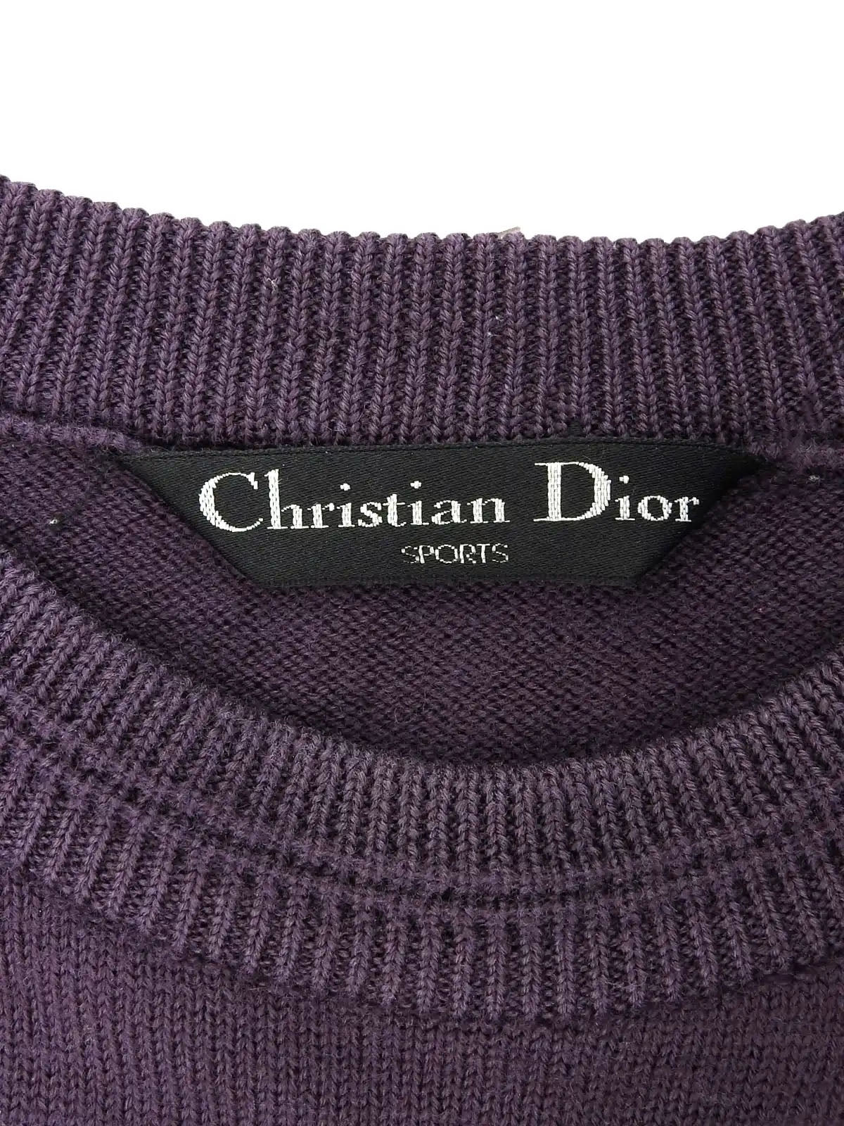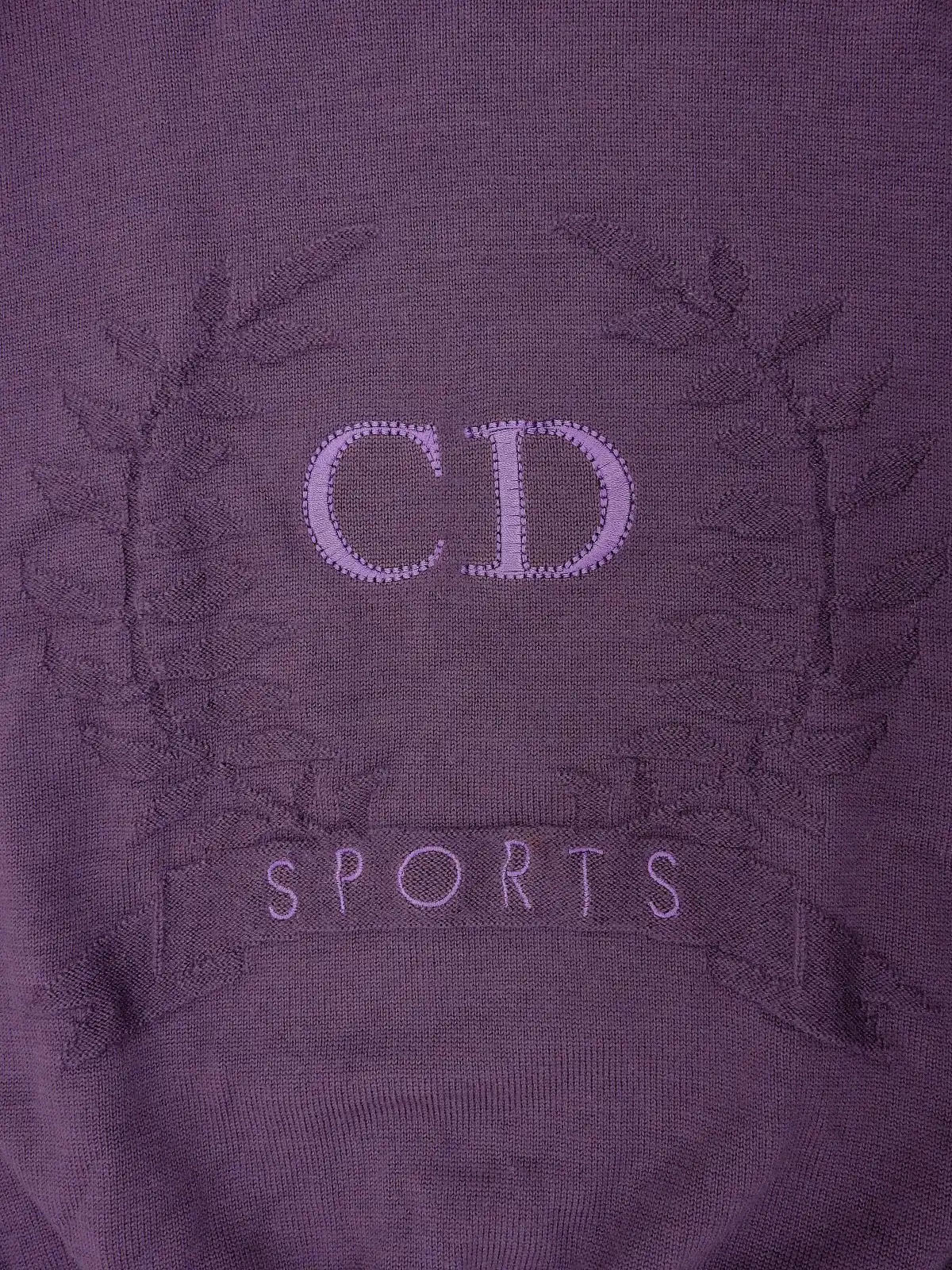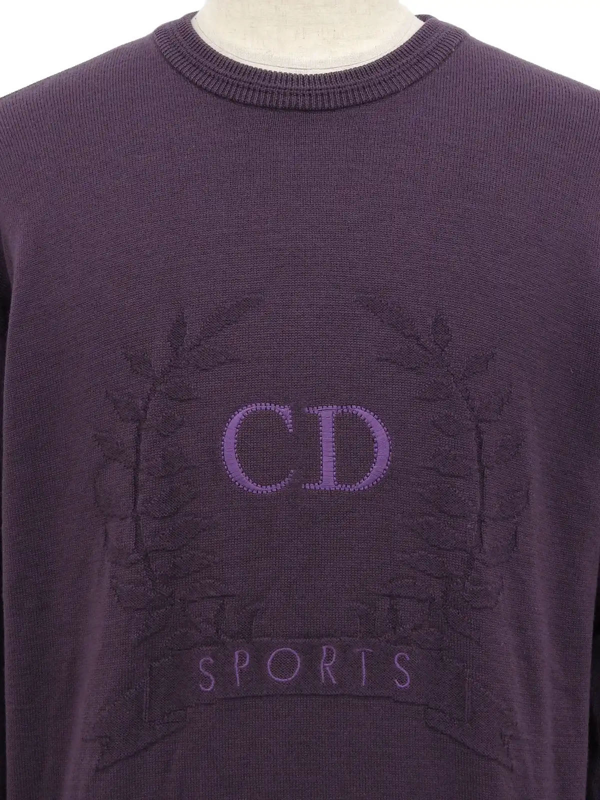 ロゴ刺繍ロングスリーブニットトップス パープル