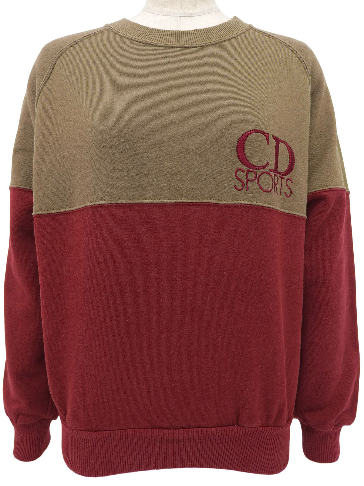 バイカラーロゴ刺繍長袖スウェット ブラウン/ボルドー