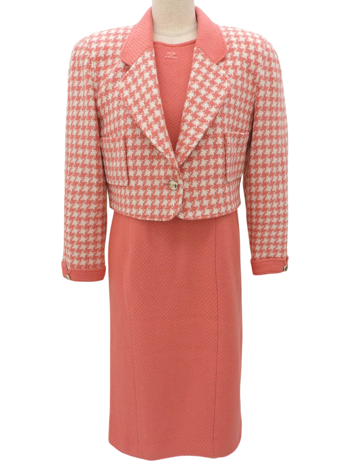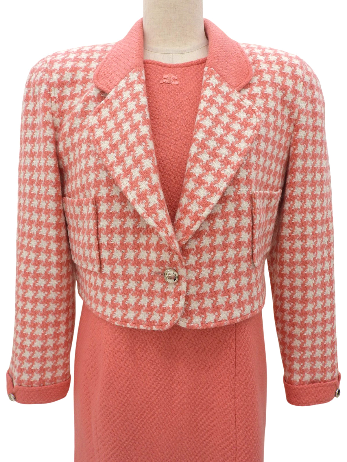 ウールワンピースセットアップ サーモンピンク/ホワイト
