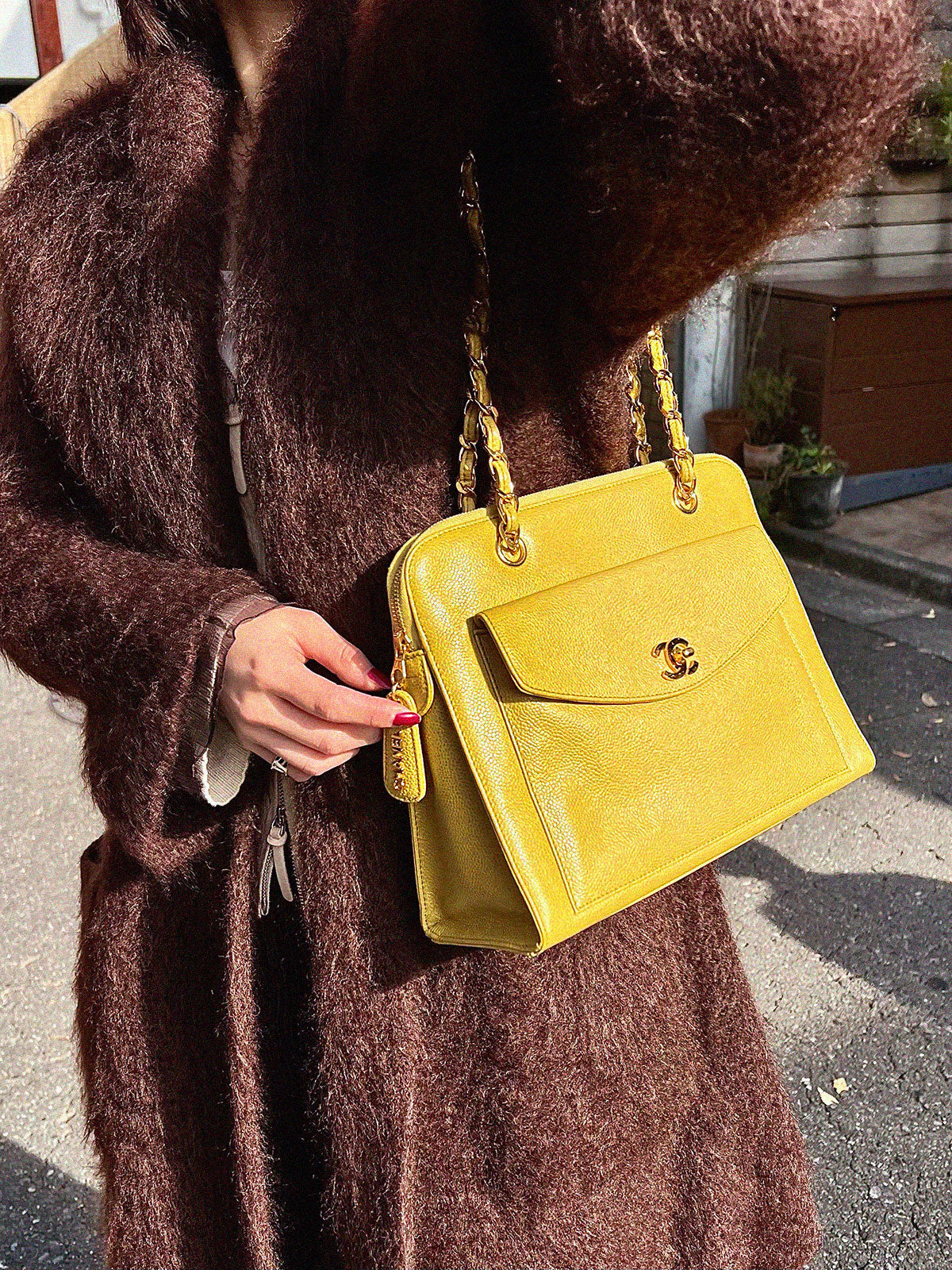 1998年頃製 キャビアスキンCCターンロックチェーントートバッグ ライムグリーン