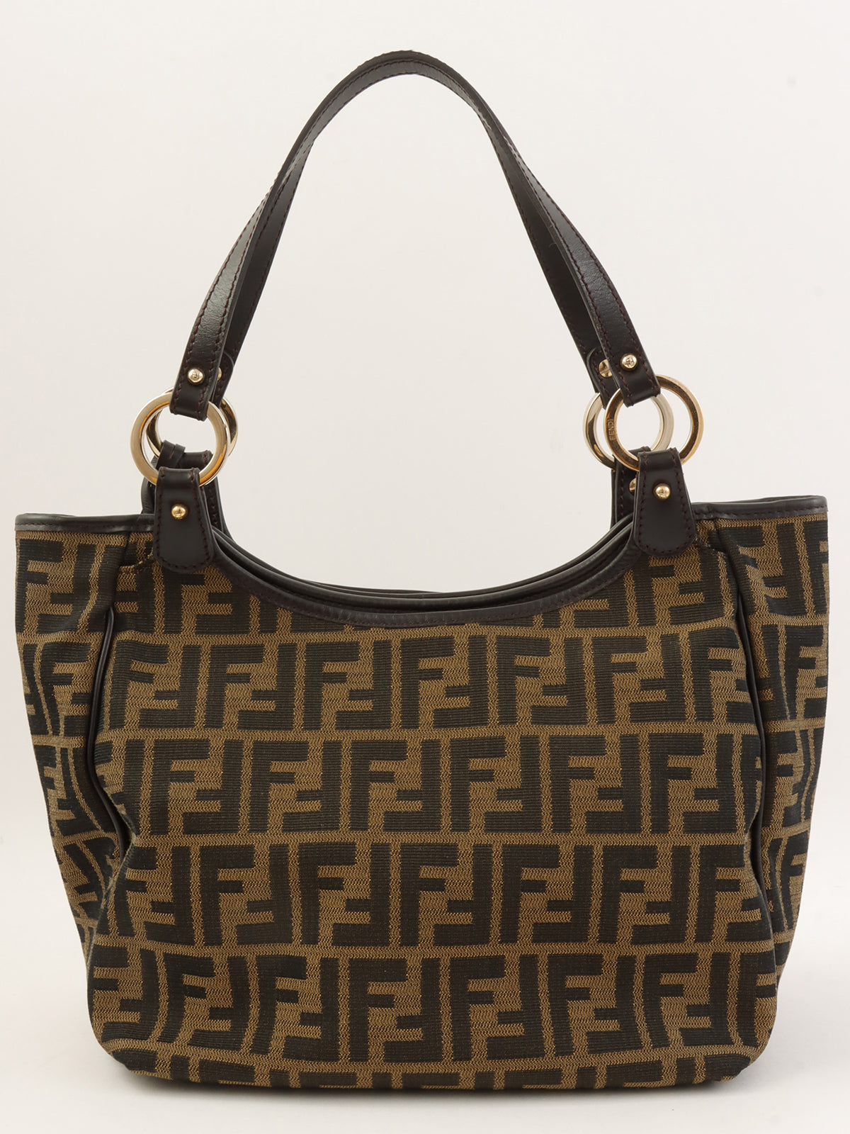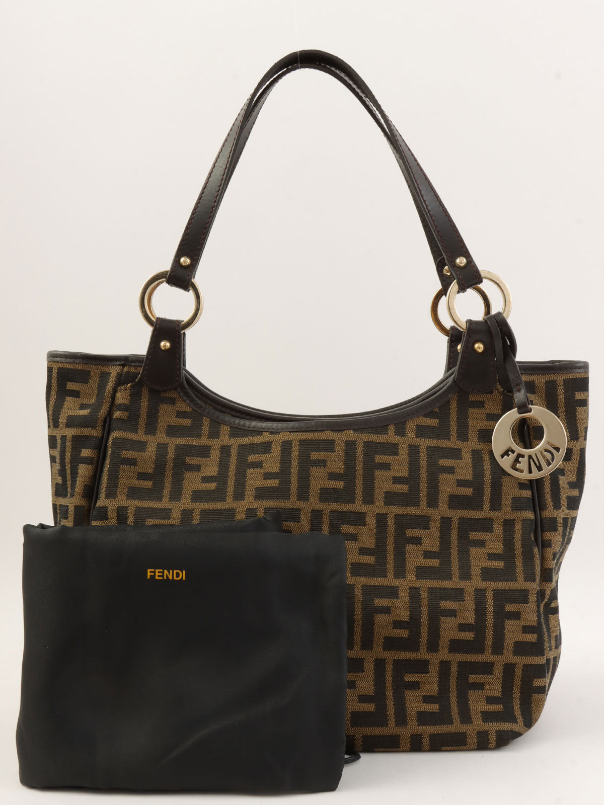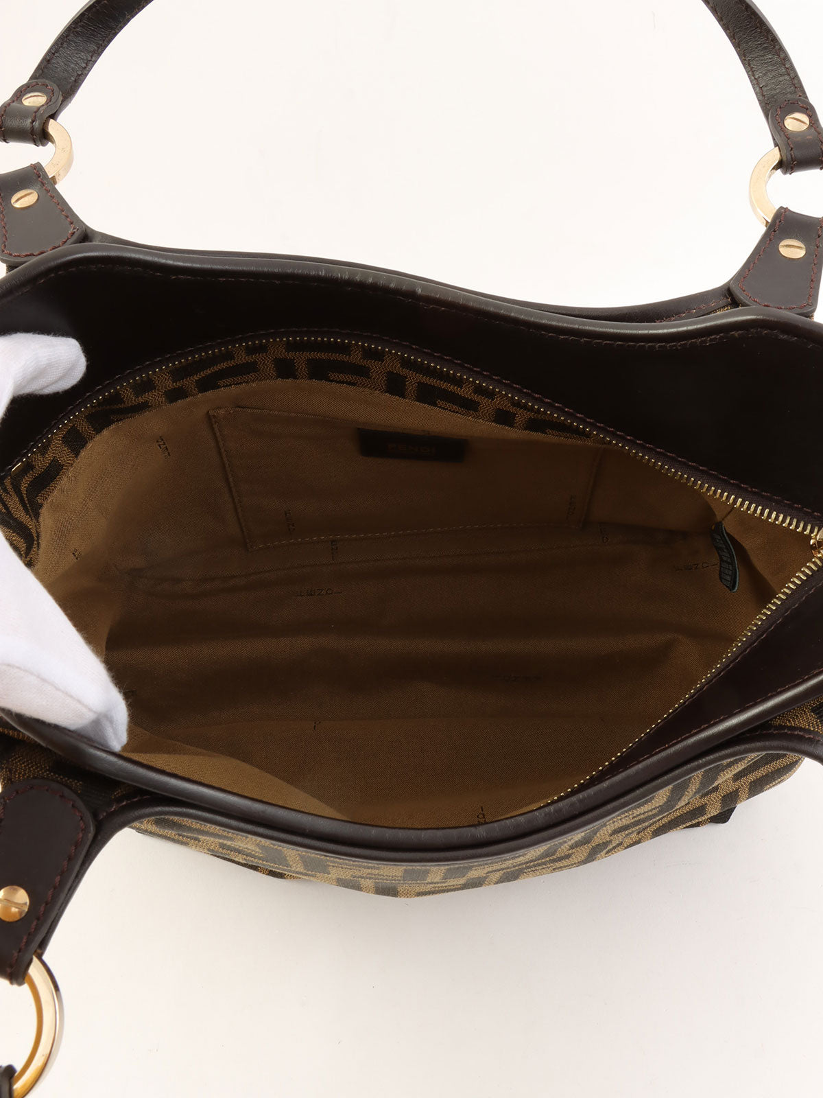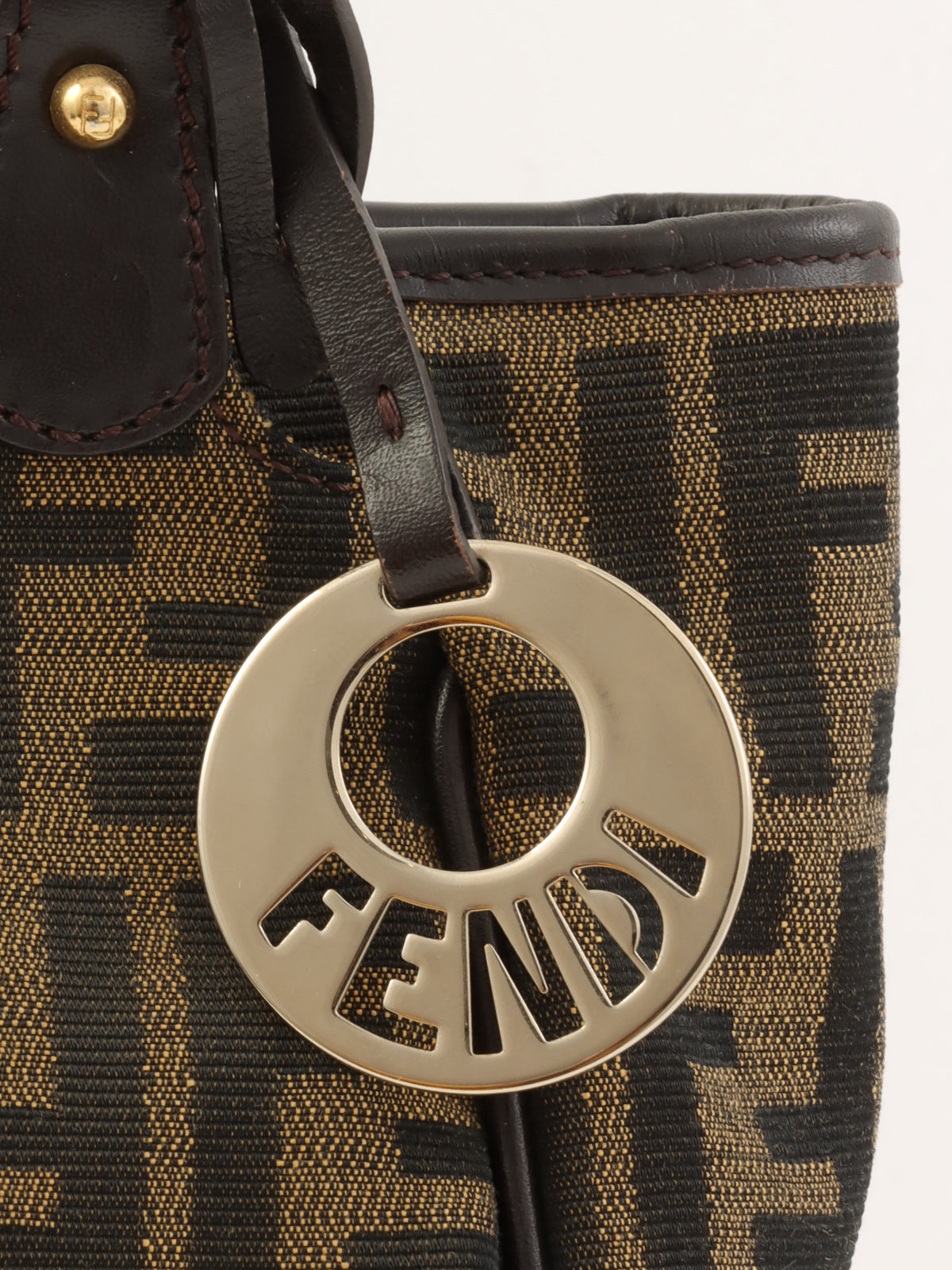 FFズッカパターンロゴチャームトートバッグ ブラウン