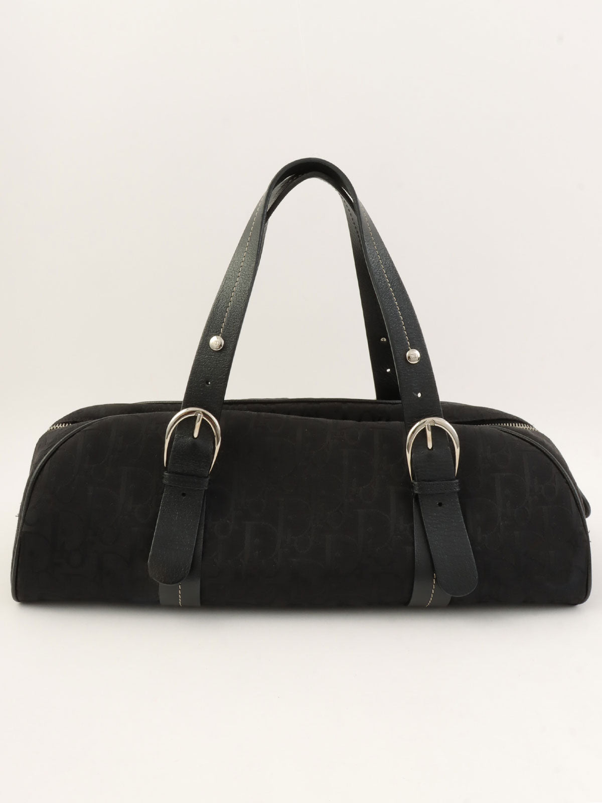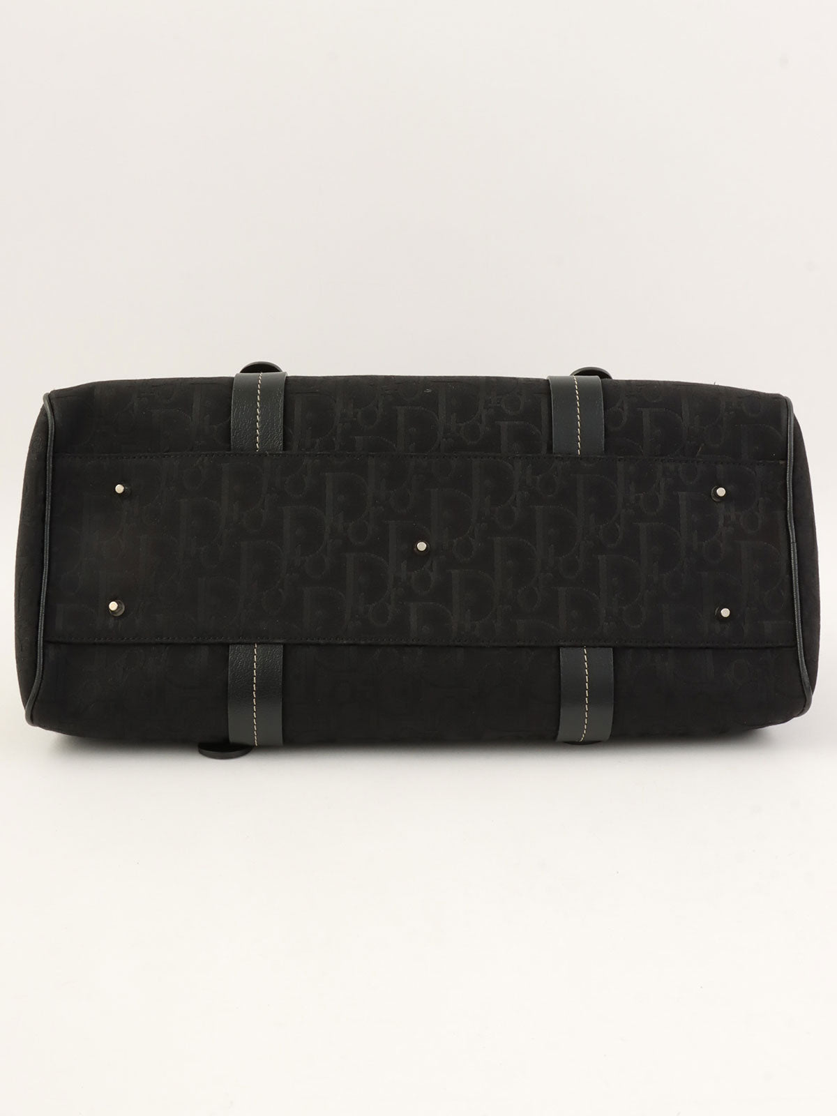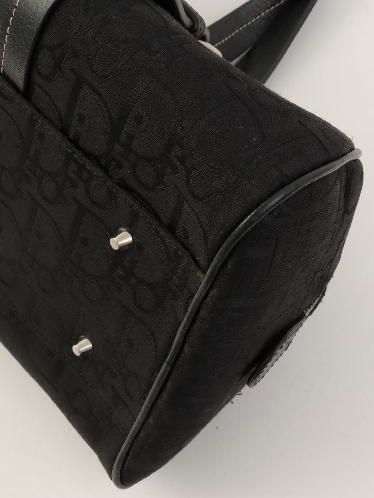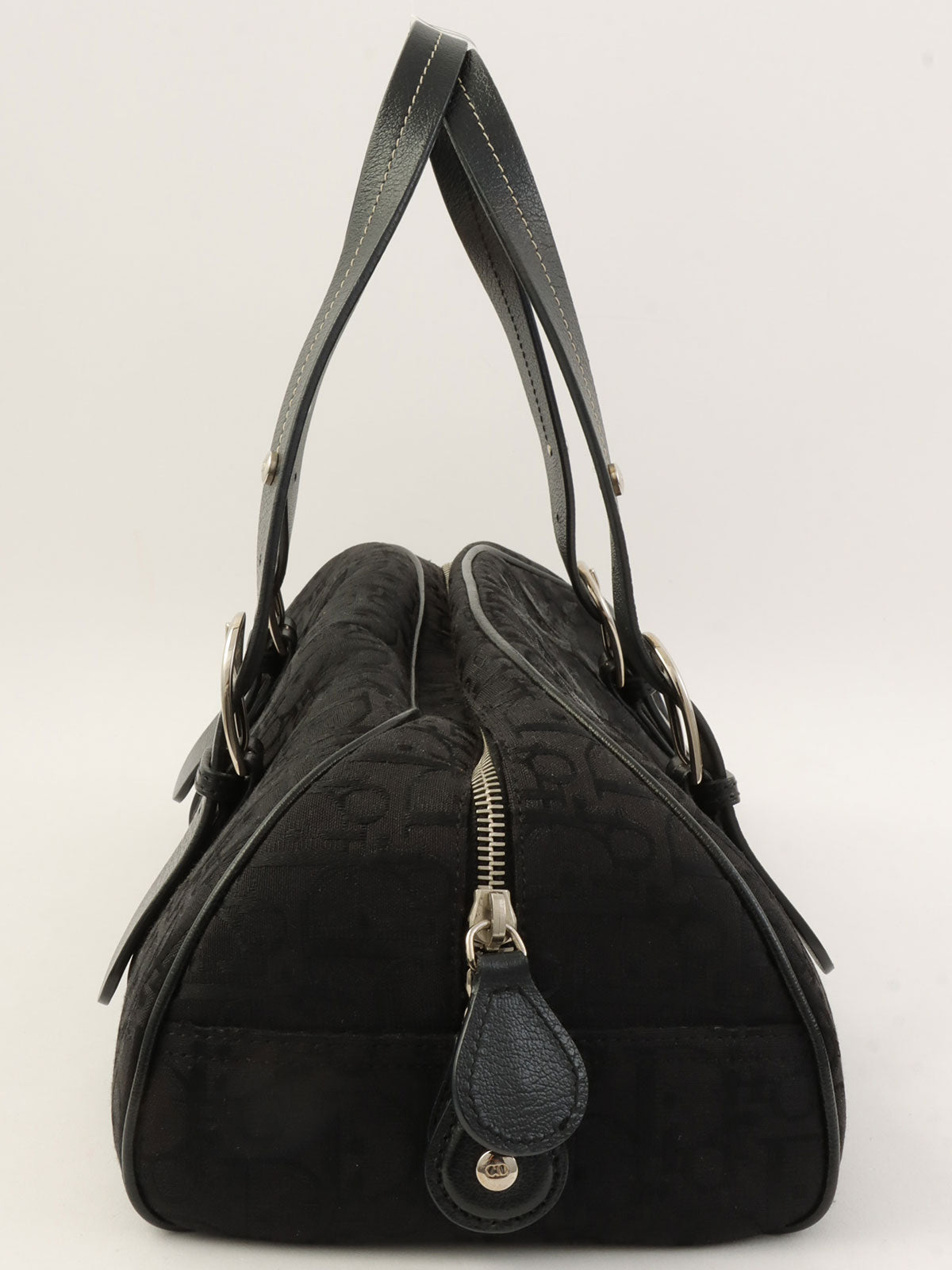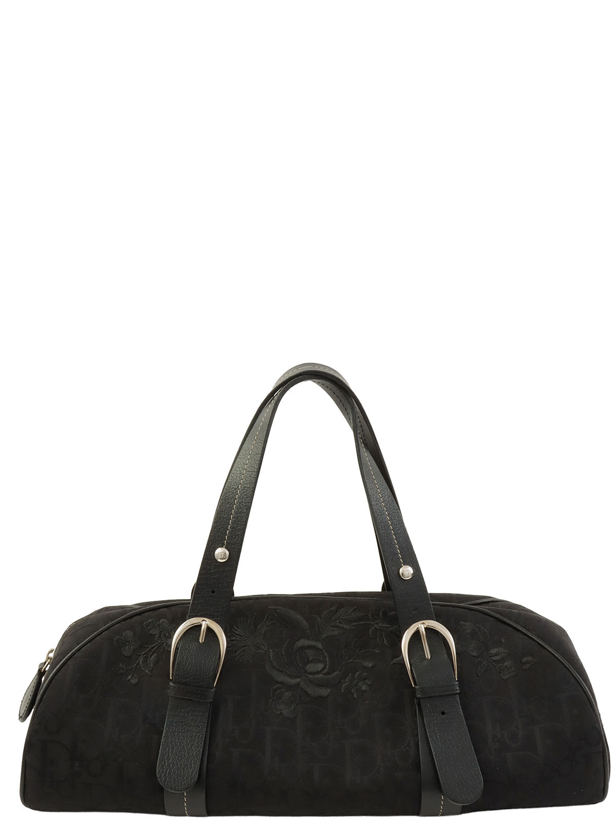 トロッターパターンフラワー刺繍ハンドバッグ ブラック