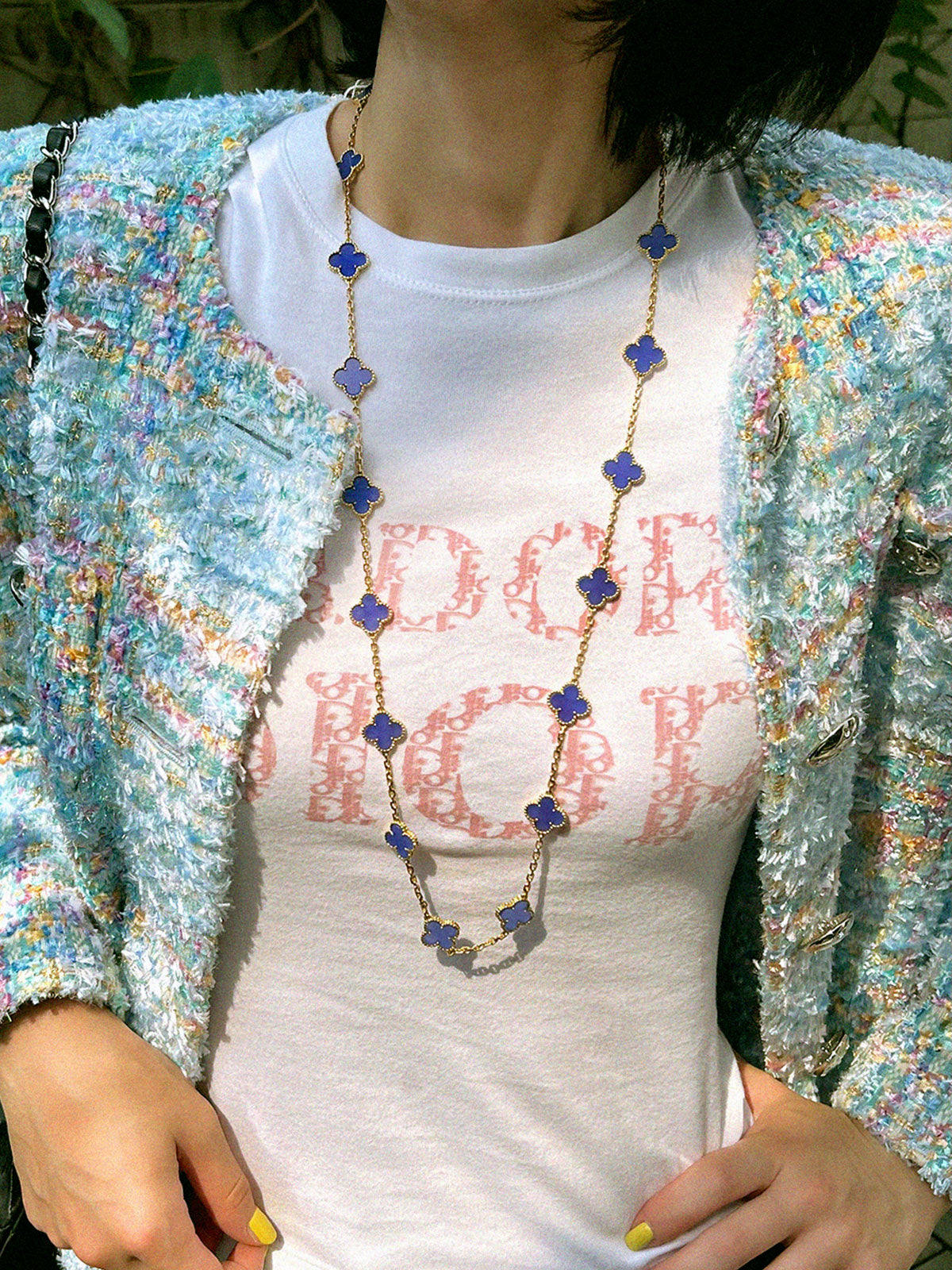 18Kヴィンテージアルハンブラ20モチーフネックレス ブルー/ゴールド