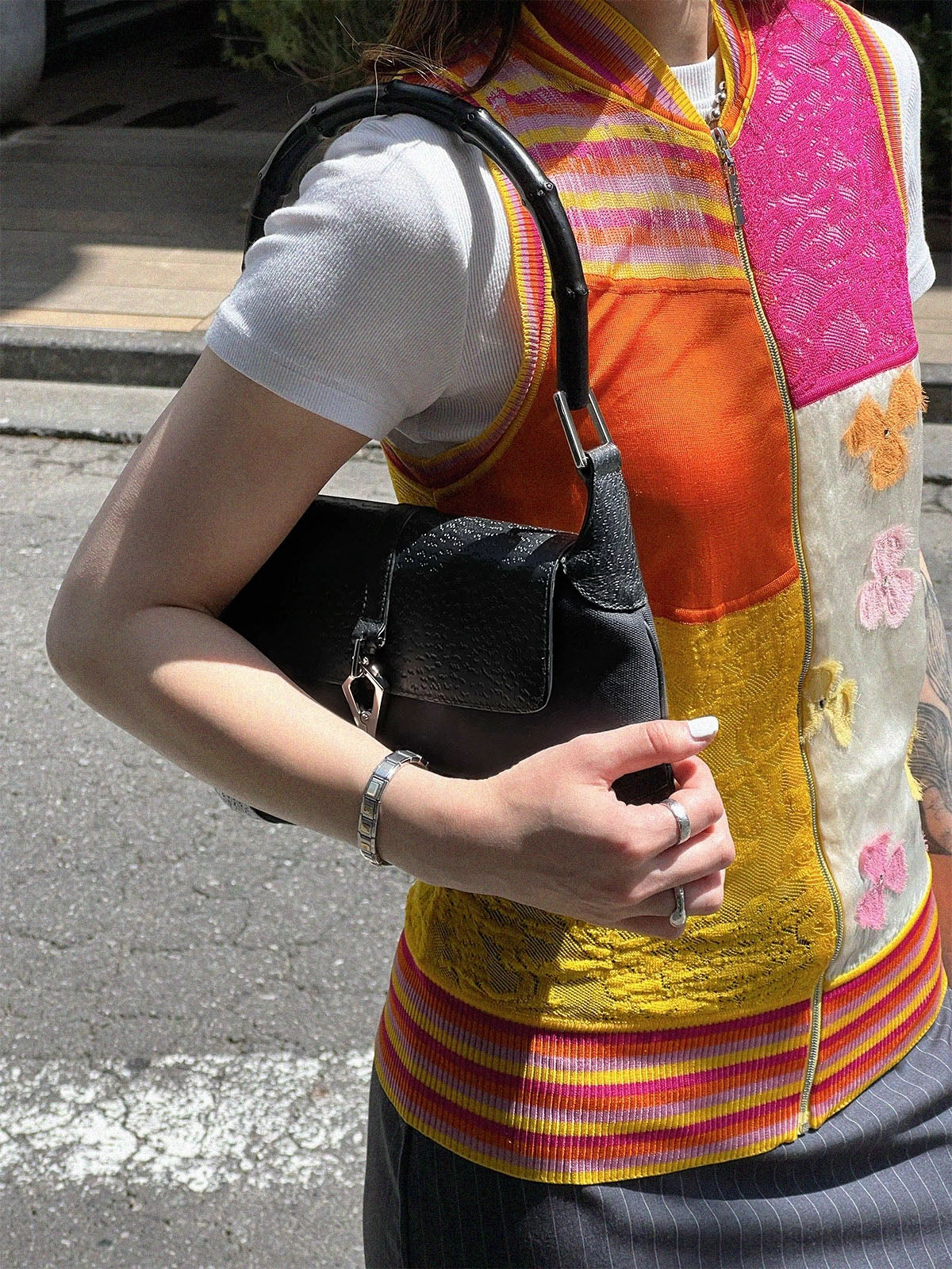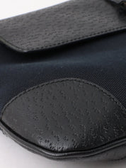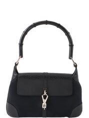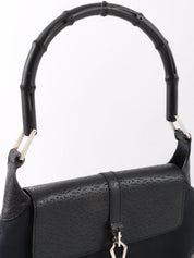 キャンバスレザーコンビバンブーショルダーバッグ ブラック