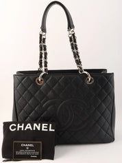2014年頃製 キャビアスキンCCマークステッチチェーントートバッグ ブラック