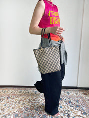 キャンバスGGパターンハンドバッグ ベージュ/ブラック