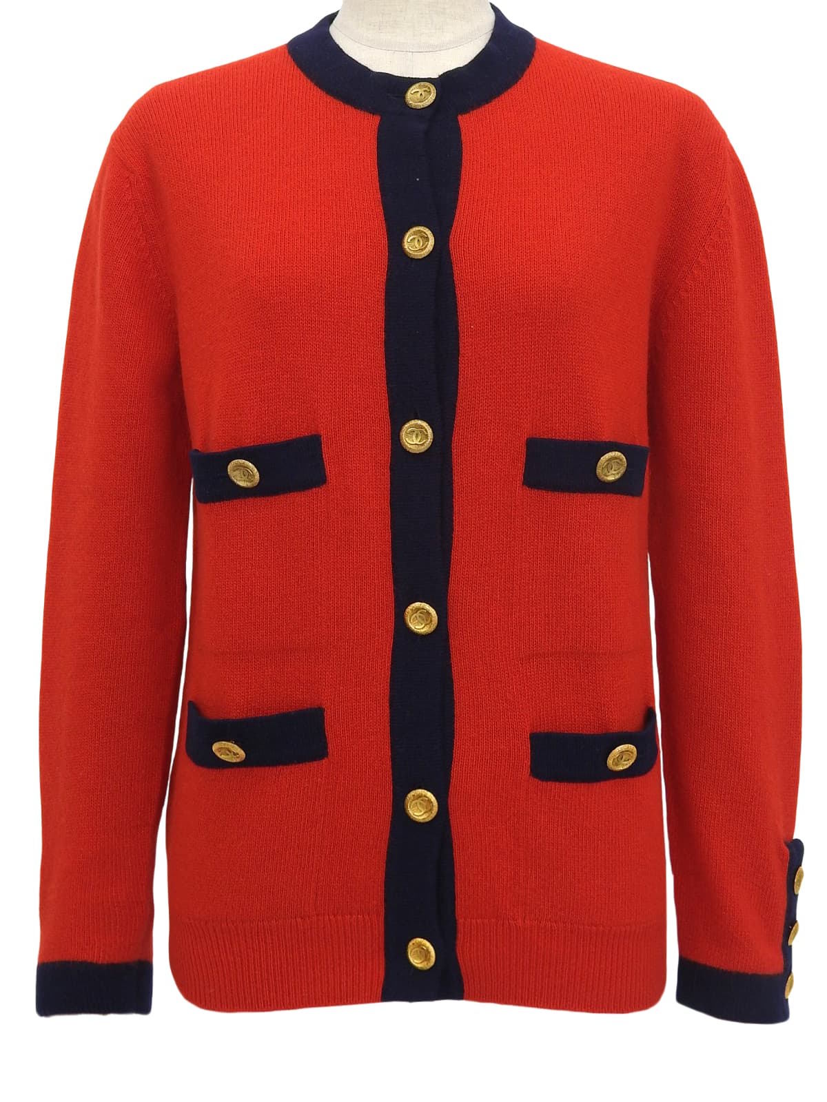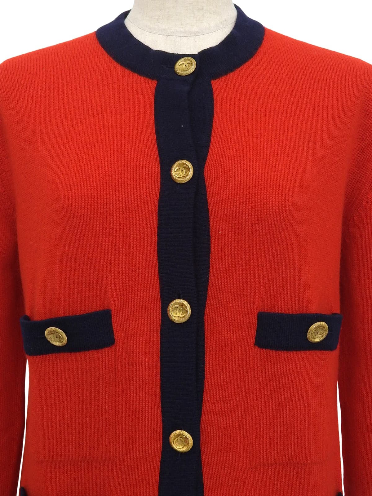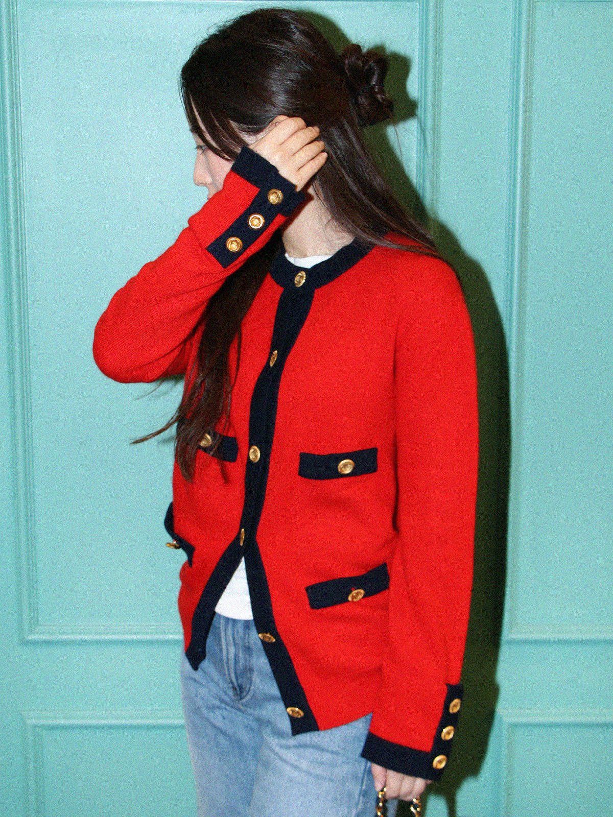 バイカラーCCマークボタンカーディガン ネイビー/レッド