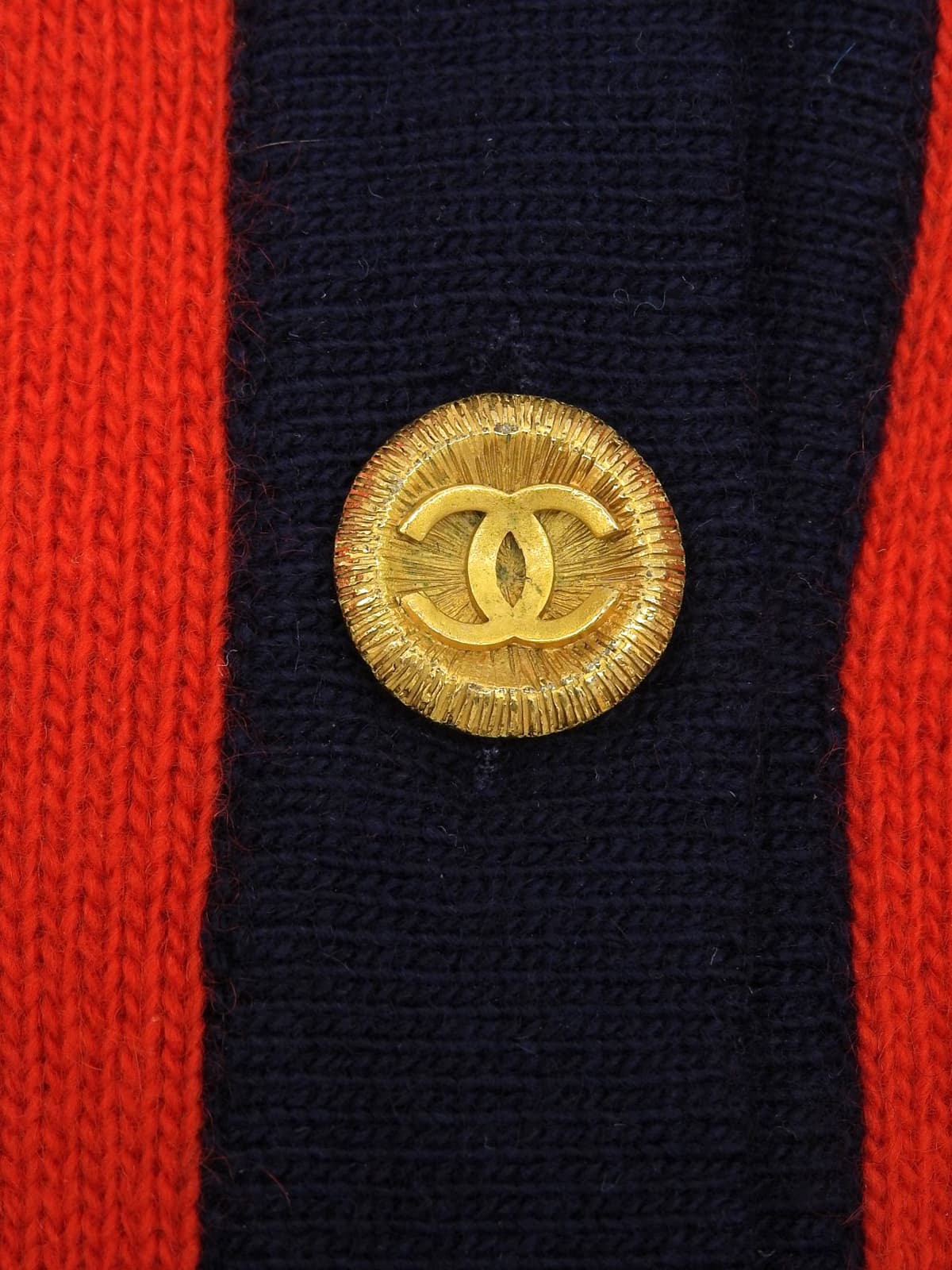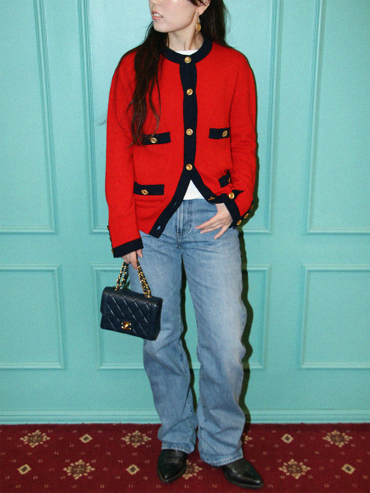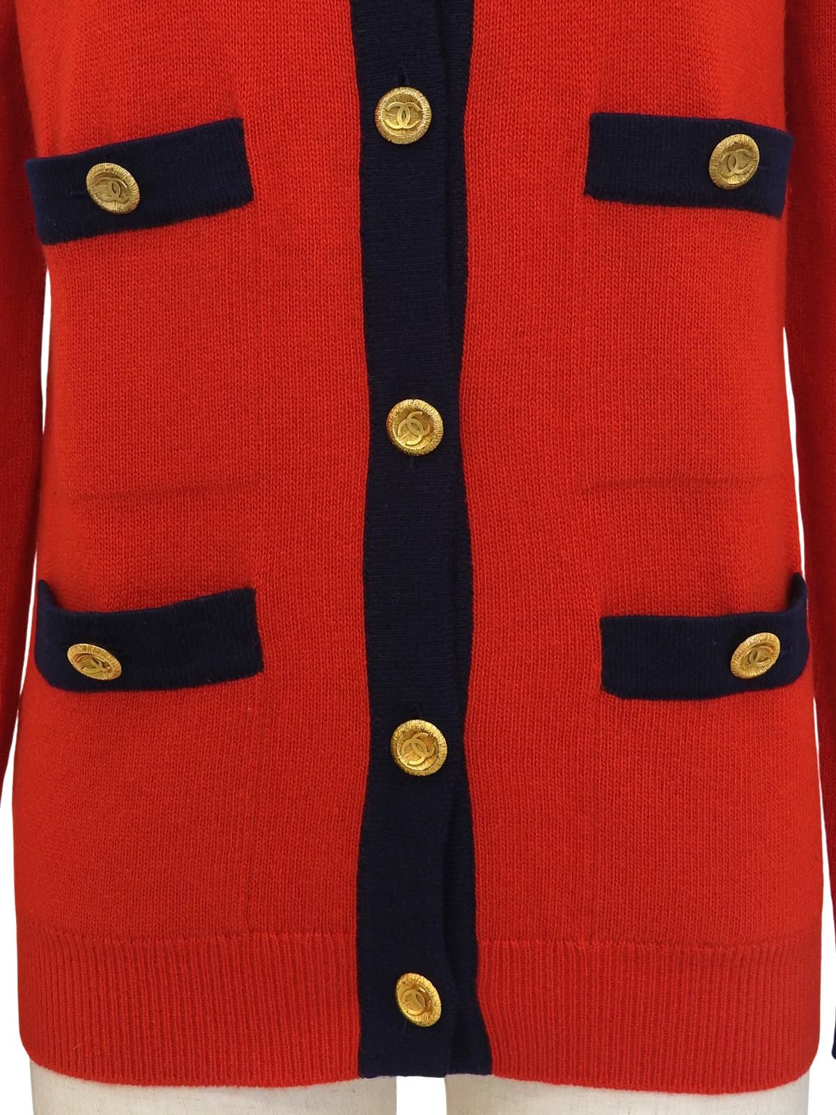 バイカラーCCマークボタンカーディガン ネイビー/レッド