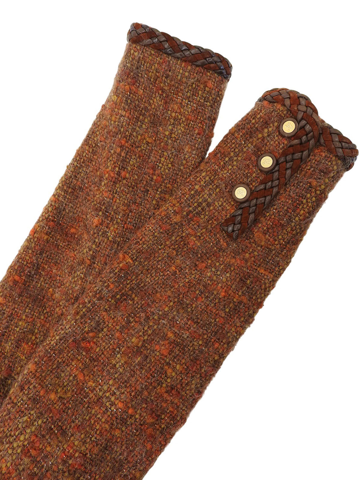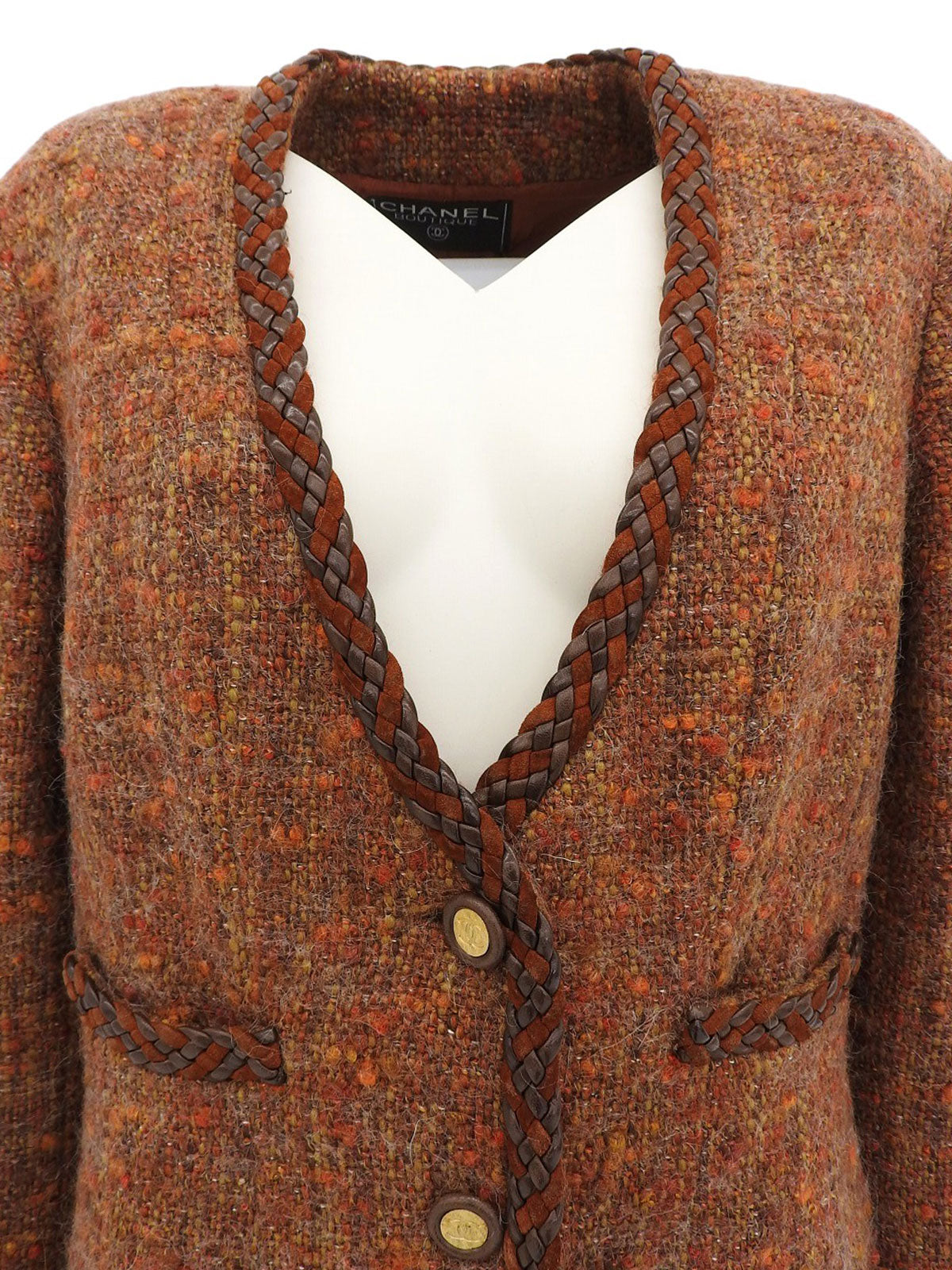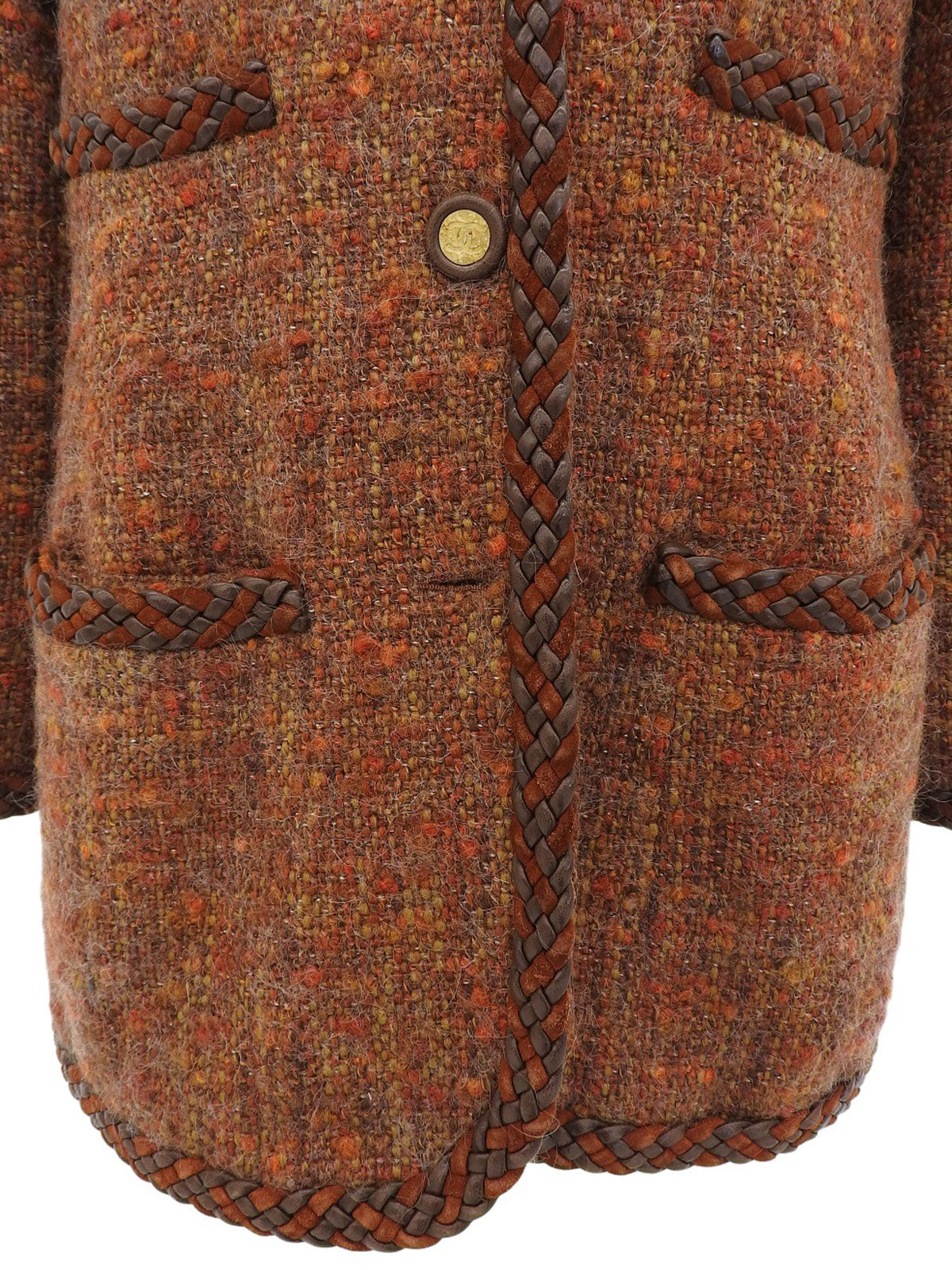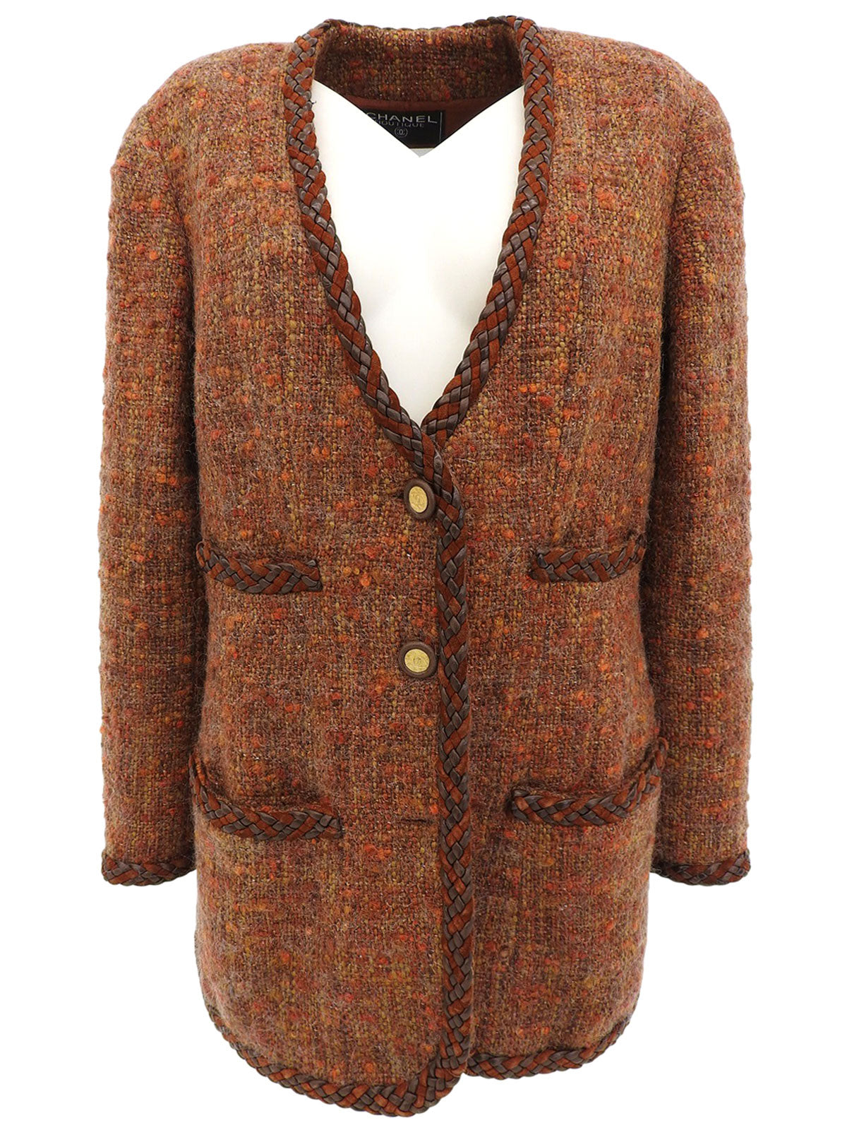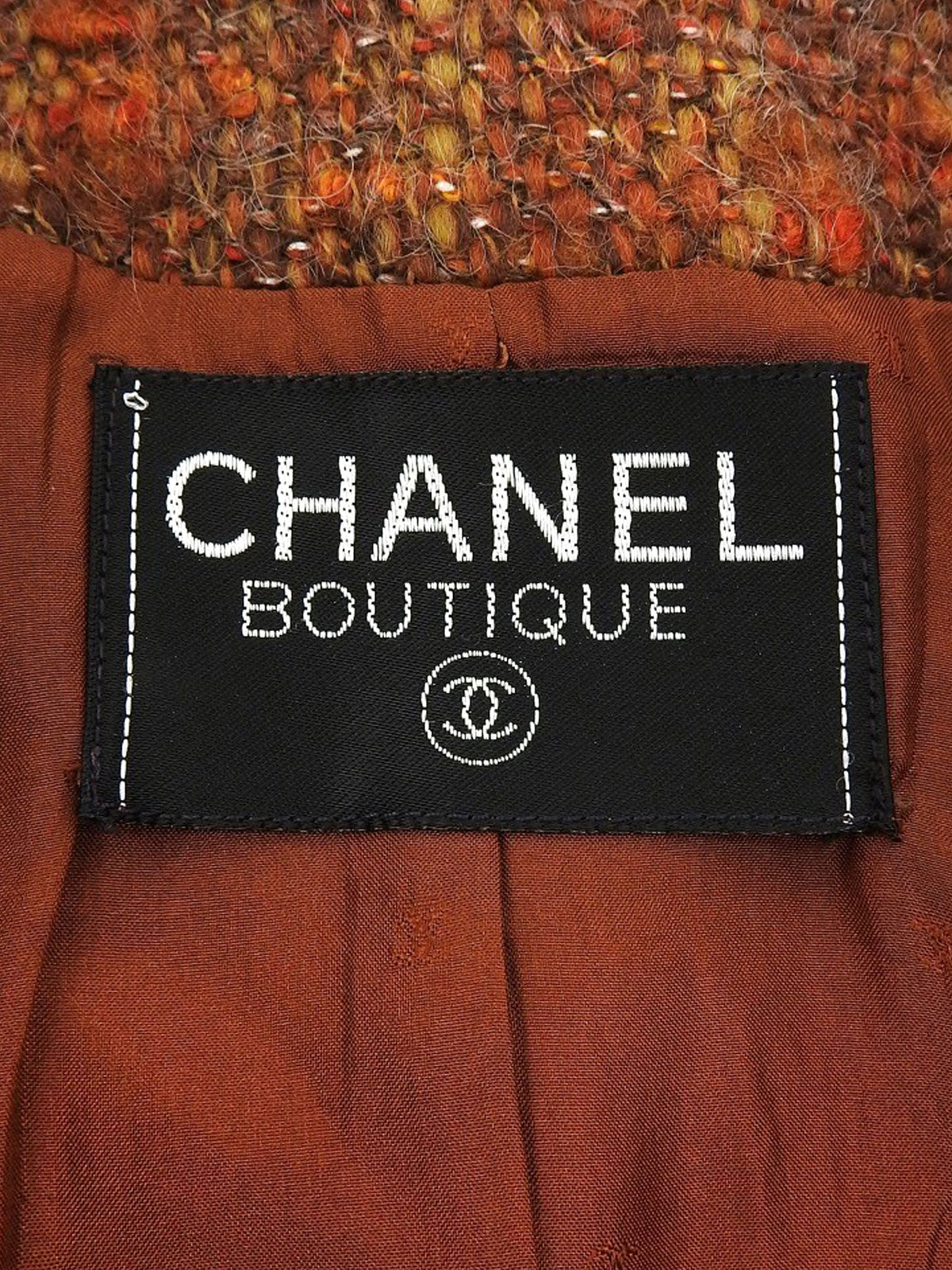 ツイードCCマークボタンノーカラージャケット ブラウン