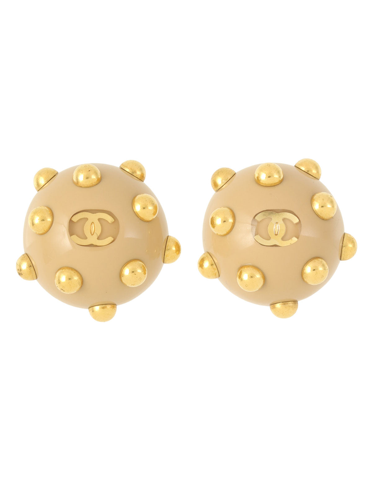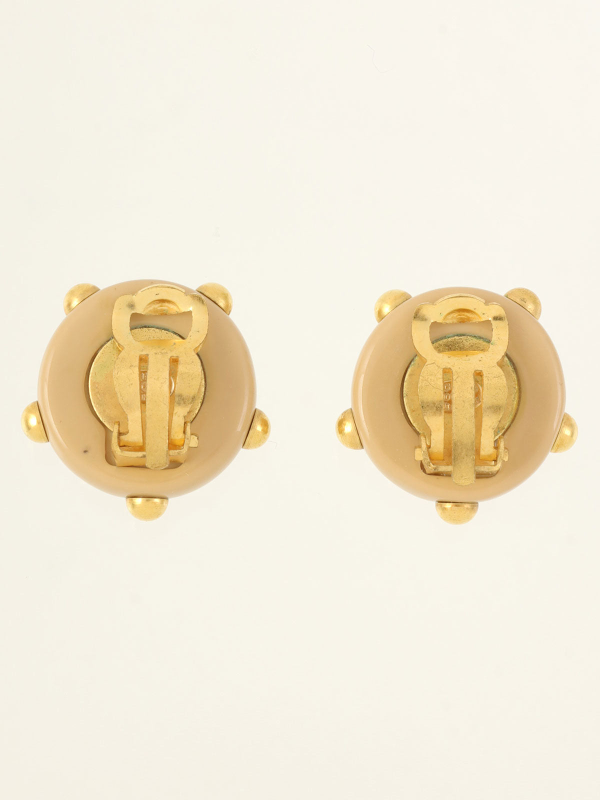 2000年製 ラウンドドットCCマークイヤリング ベージュ/ゴールド