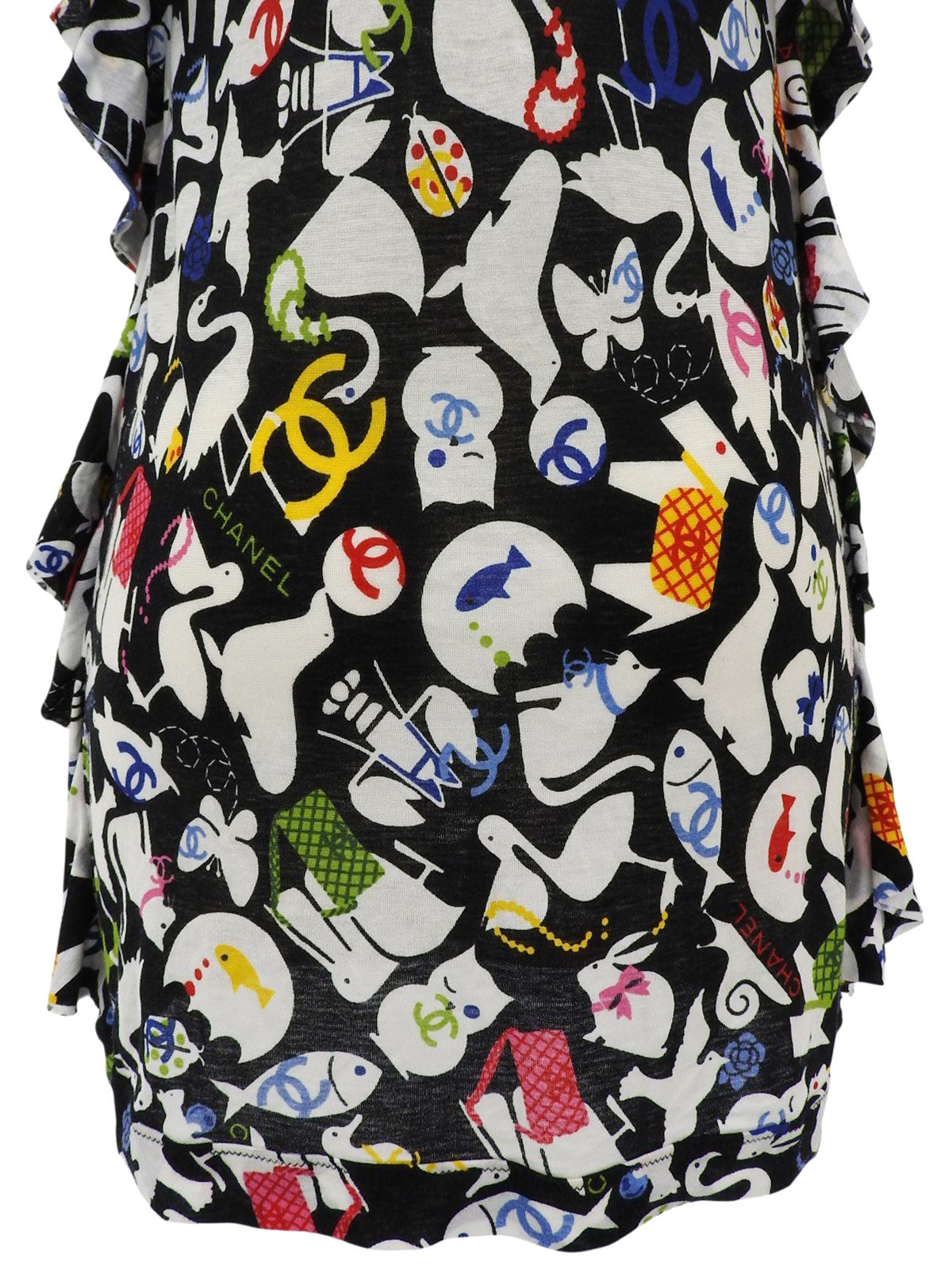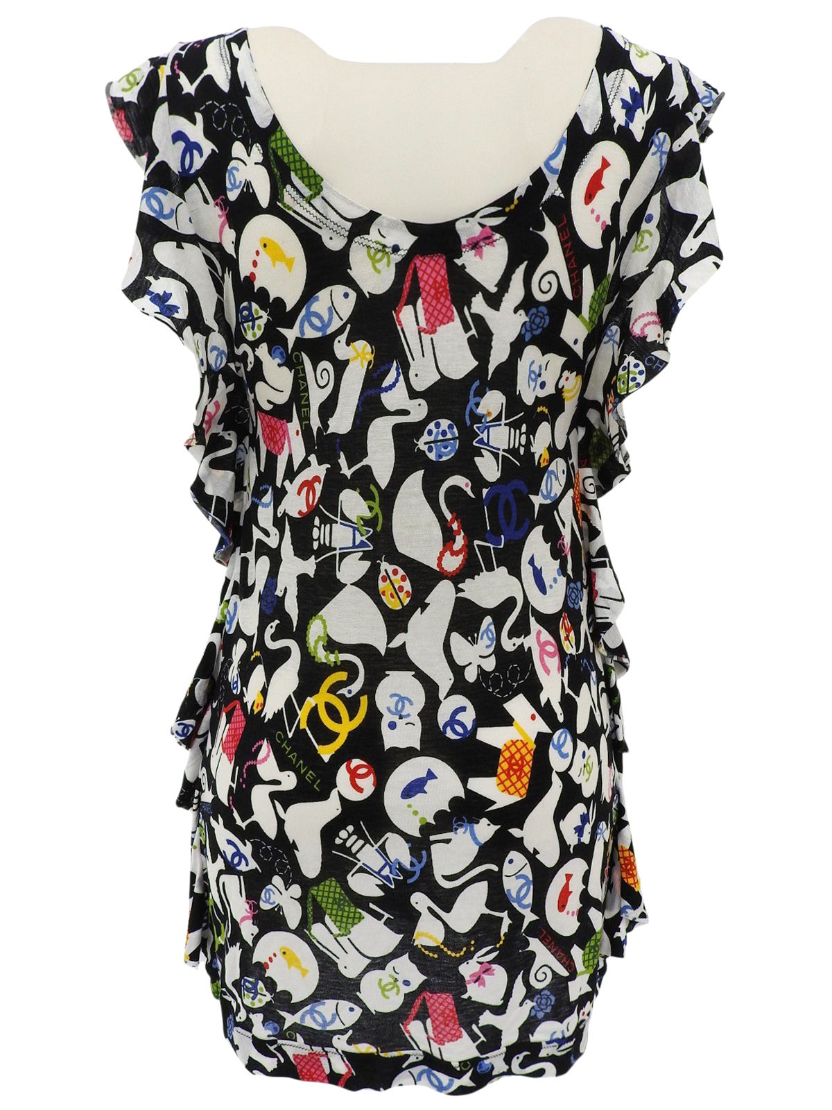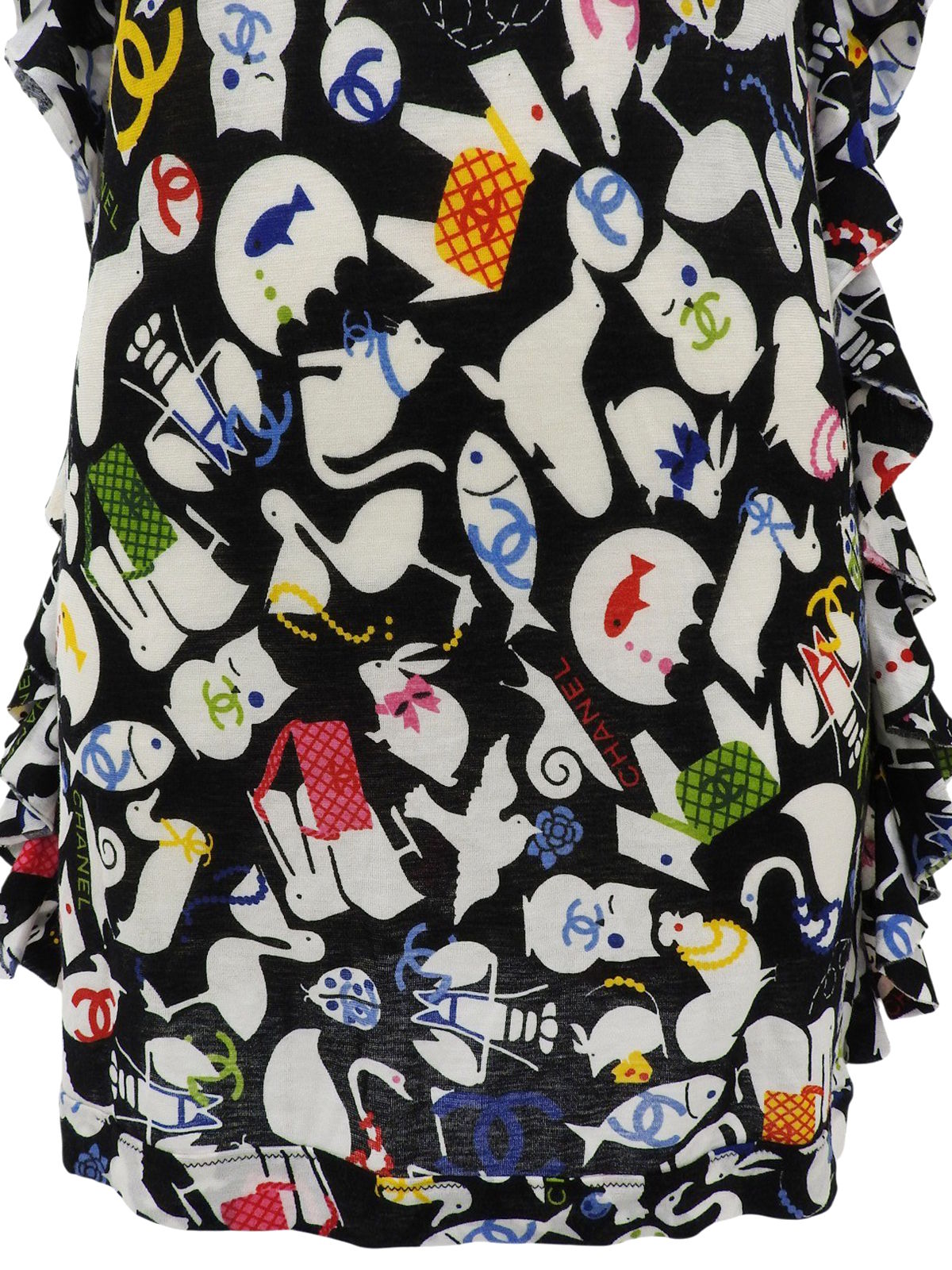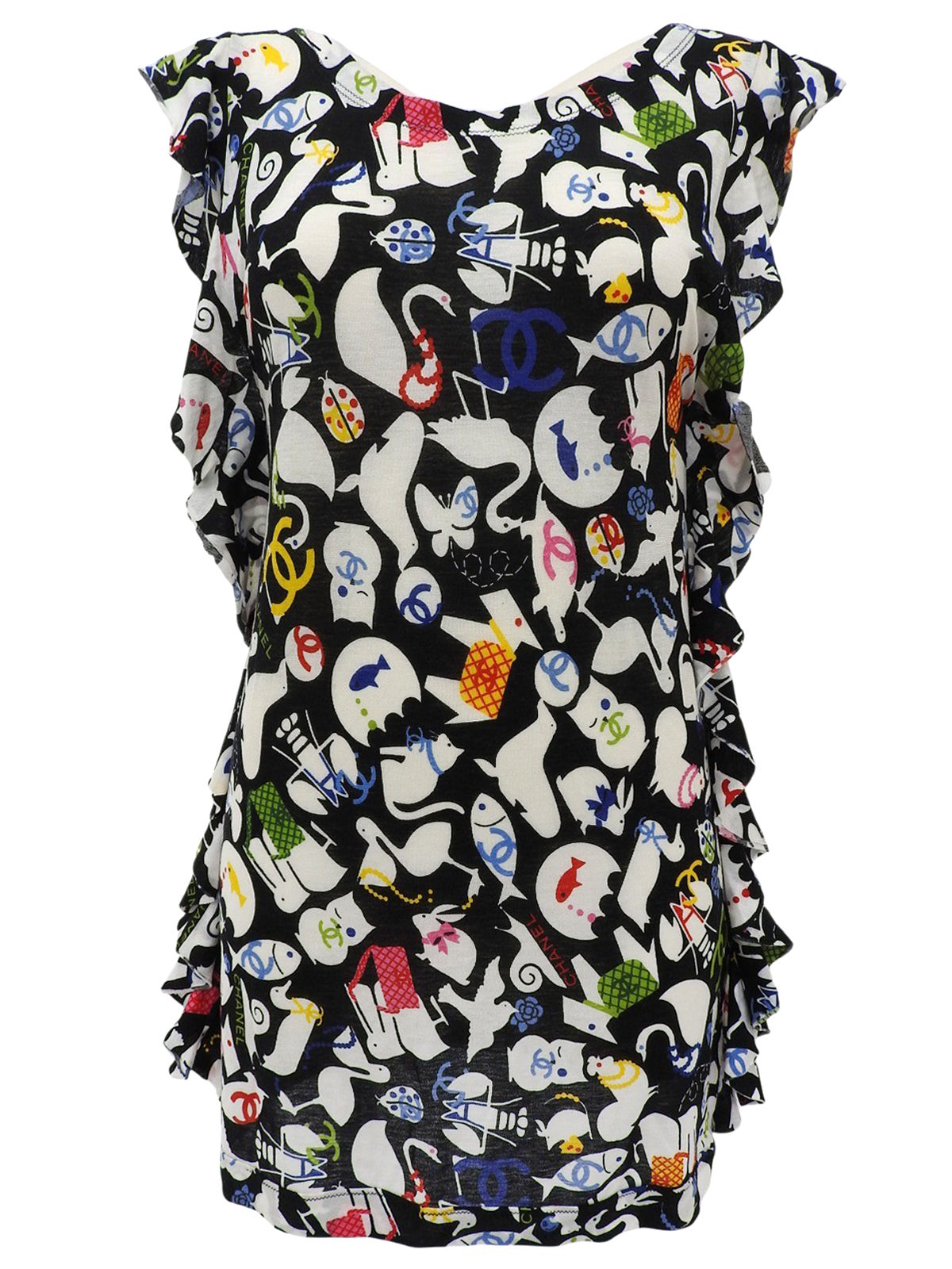 2007年製 アニマルパターンノースリーブトップス ブラック/ホワイト/マルチ