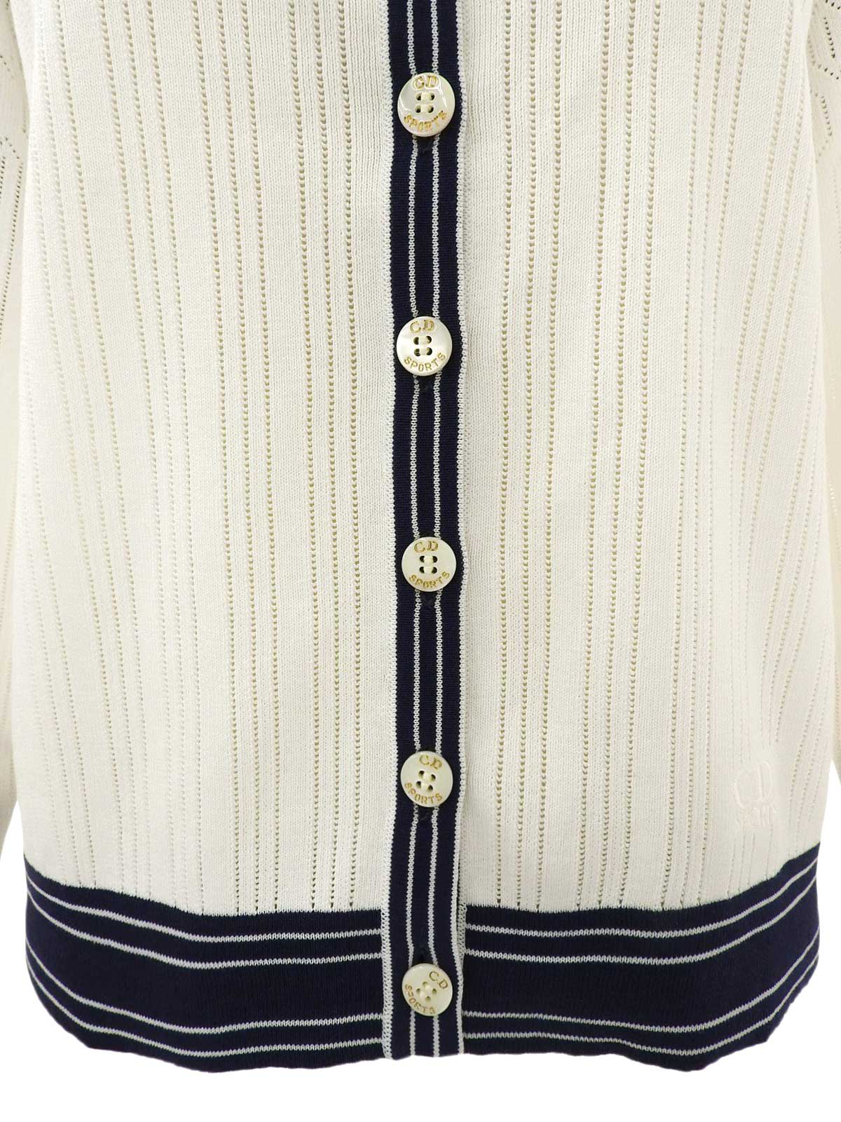 コットンロゴボタンラインカーディガン ホワイト/ネイビー