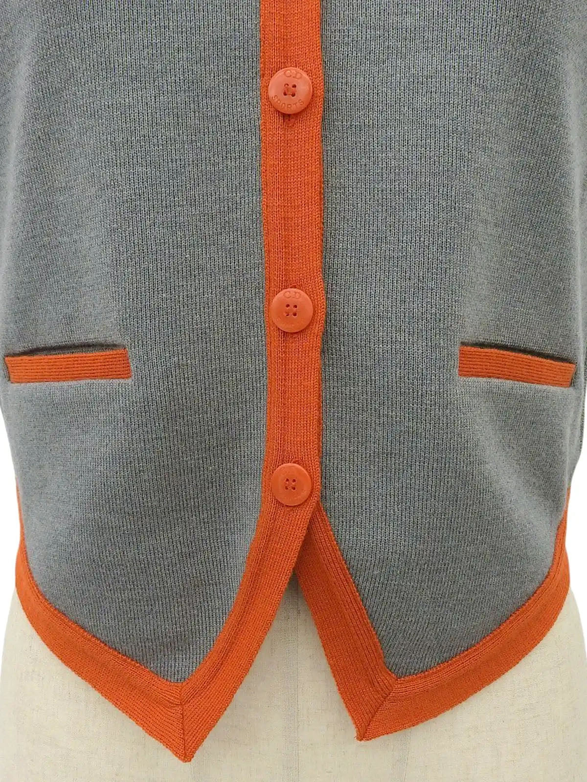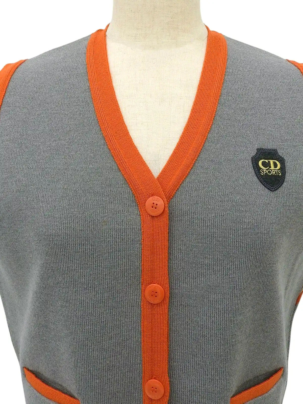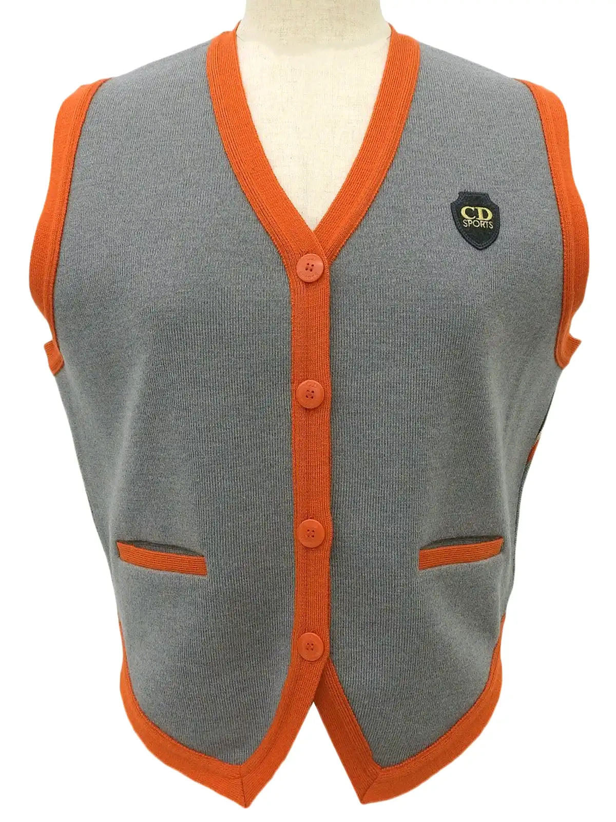 バイカラーロゴワッペンニットベスト グレー/オレンジ