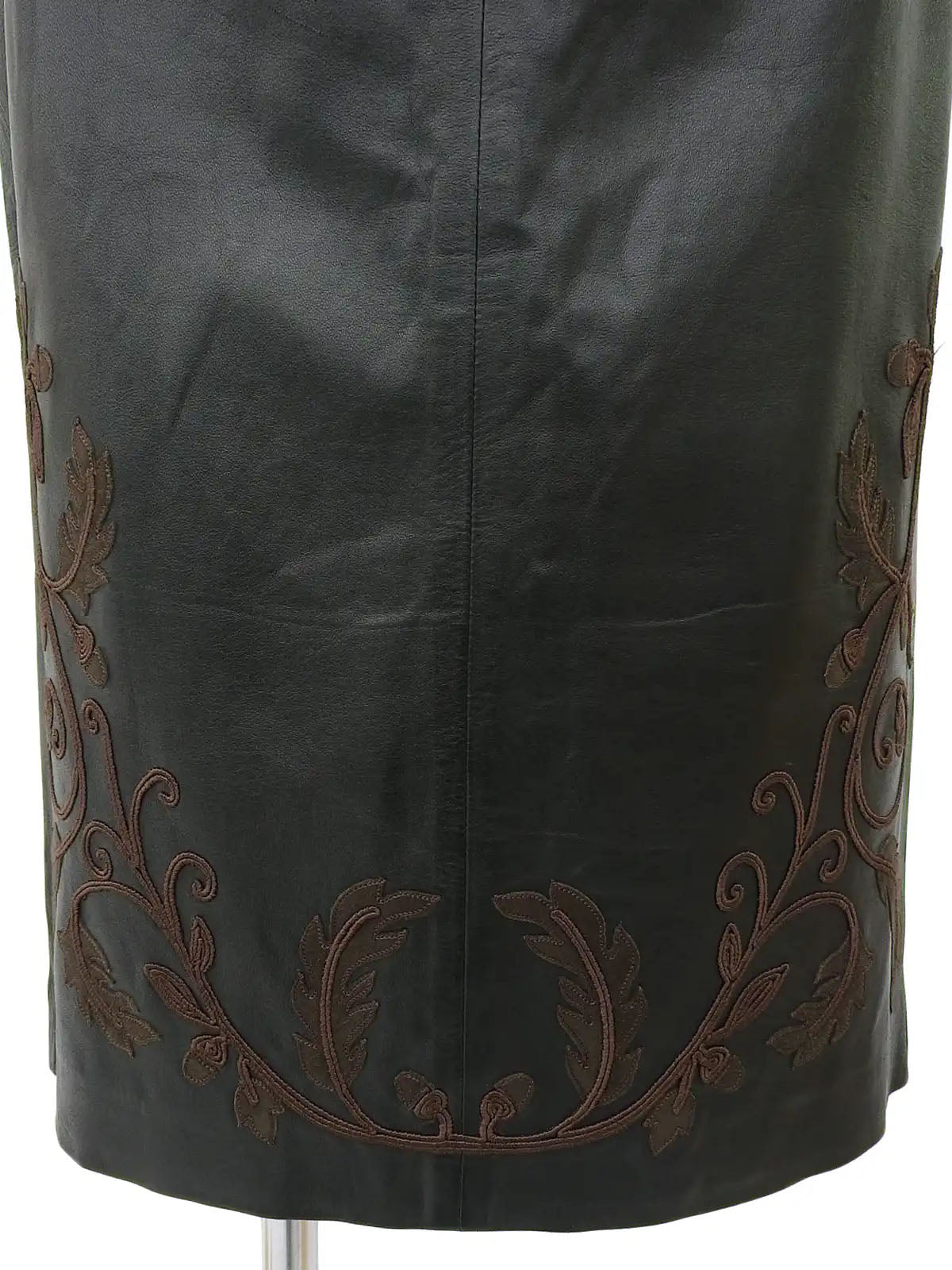 レザーリーフ刺繍タイトスカート ブラック